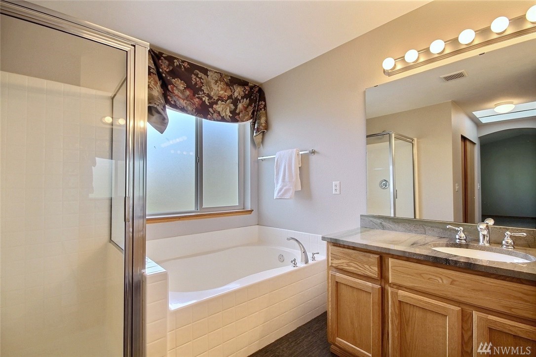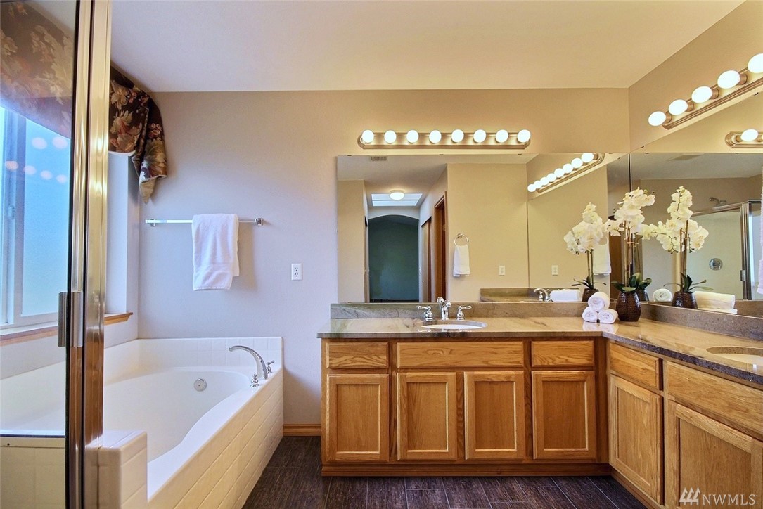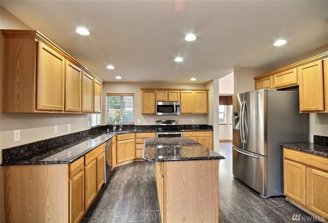 Beautifully updated 5 bedrm home in peaceful Covington neighborhood! Chef’s delight granite & stainless steel kitchen w/large island, open to spacious familyrm w/cozy gas fireplace. Dramatic 2 story livingrm w/craftsman tile floor. Generous master suite w/luxurious 5 piece bath & 2 walk-in closets. Granite in all 3 bathrms. Sizable bonus rm doubles as 5th bedrm. Fully fenced backyard w/extended patio. Oversize 3 car garage. 5 mins to shops/restaurants. Award winning Kent schools. Move-in ready!
