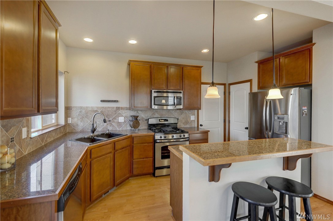 Desirable Sienna Heights- Canyon park. Move in ready. Updated w/ new carpet & interior painting. Open kitchen, dining and living room. w/ gas fireplace. Kitchen: granite countertops, island w/ breakfast bar, gas cooktop & stainless appliances. Large picture windows upstairs & open sitting area. Spacious master bedroom with vaulted ceilings. Walk-in closet. 5 piece bath w/ soaking tub. Large spare bedroom has cathedral ceilings. Laundry room upstairs. 2 car tandem garage. Northshore High School.