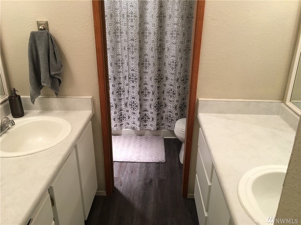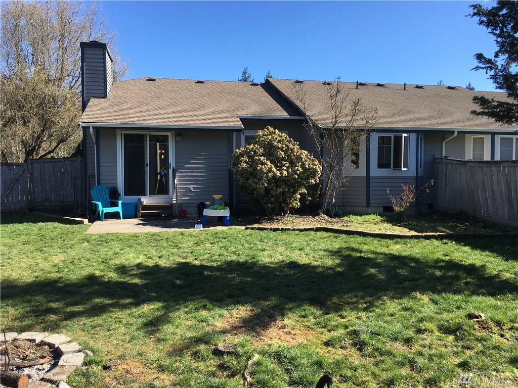 Great 2 bdrm (plus big den could be 3rd), 2 bath condo in nice development just outside the town of Orting. 2 car attached garage, large private fenced back yard, big living room with fireplace, vaulted ceilings, skylight, and newer hardwood laminate floors! Good size master with two closets and double sinks in master bath. Very clean, low maintenance, and fenced RV parking available.