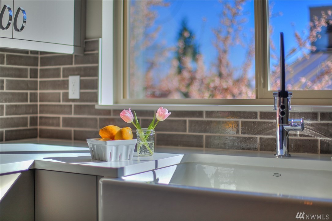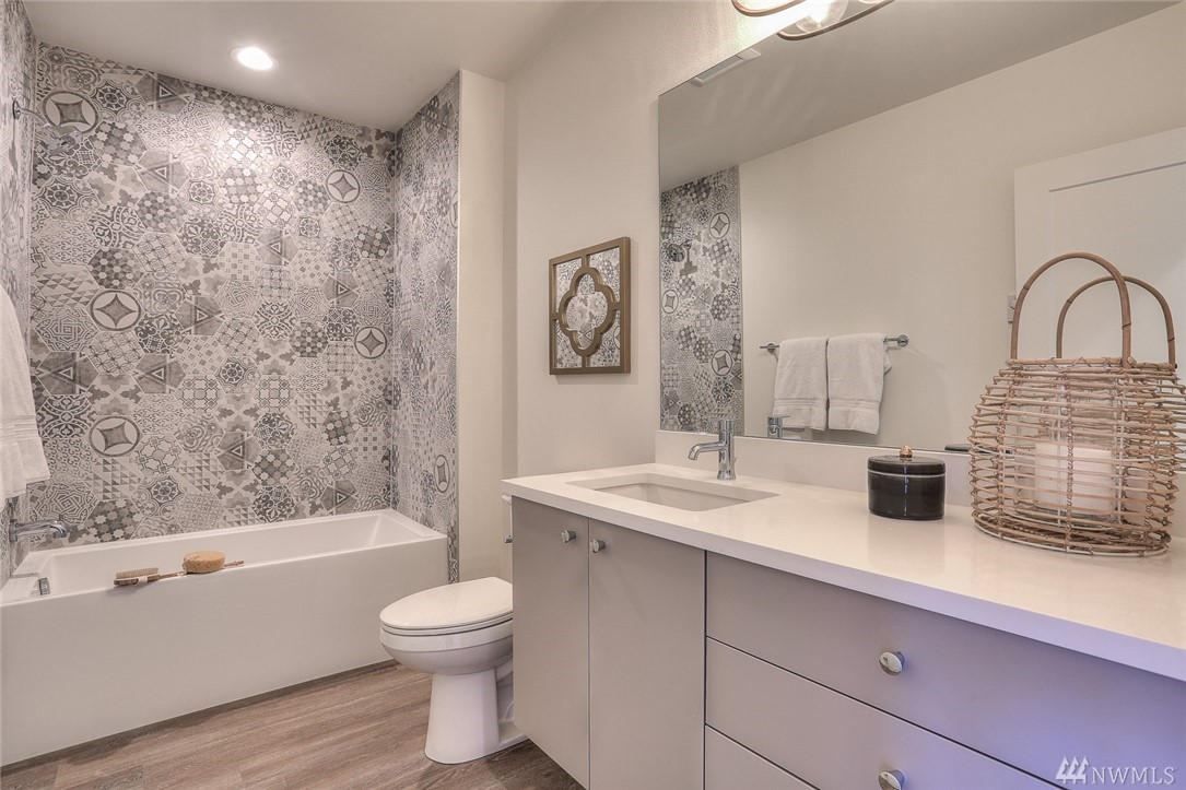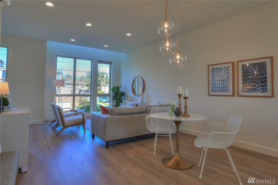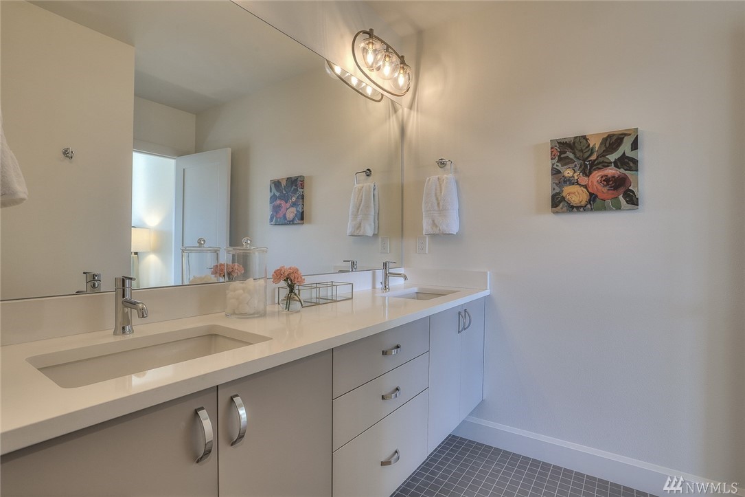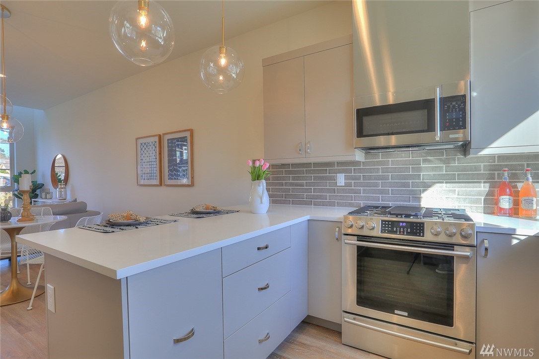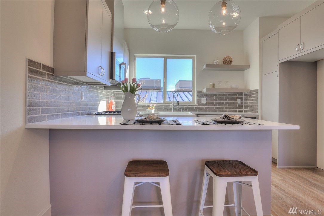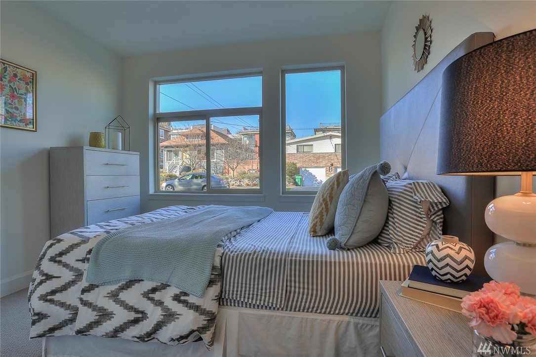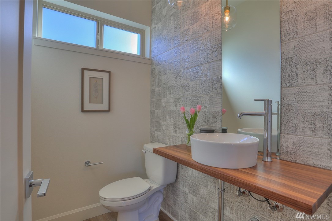 Light & bright new rowhouse by Triple Point (Noland Homes) in a terrific Ballard location. Nice spaces, large windows let all the sunshine in. Custom hand picked tile, fixtures and hardware. Spacious kitchen with Electrolux appliances. Great room living, designer powder room with mahogany counter and high ceilings! Two bedrooms and full bath on the first level. Wonderful master suite upstairs. Roof deck with views! Live healthy and happy with 4 Star Built Green. One car parking. Sharp!