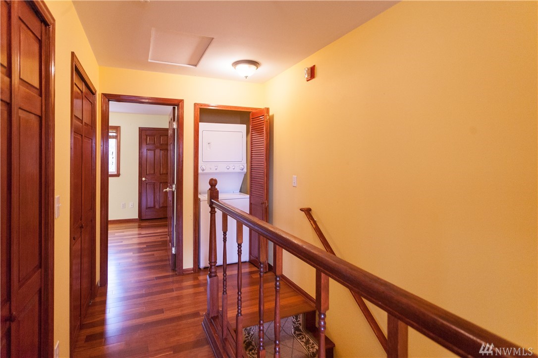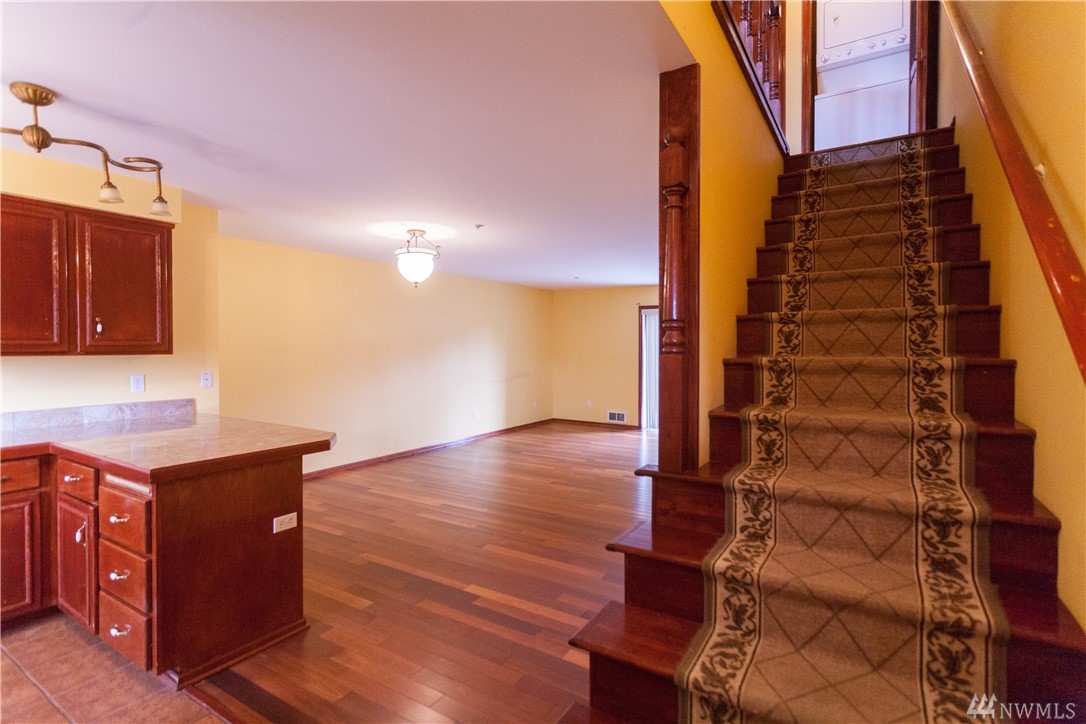 Top-floor, end-unit condominium on two levels offers a great opportunity for space & comfort. Small, well-maintained & private complex with only 6 units and low dues. "Townhouse-style" home. Each sizable bedroom has its own bath. Updates include new floors, doors & countertops. Enjoy coffee on your balcony off of main floor living area. Walter E. Hall Park & golf course is your front yard! Two off-street parking spots. Proximity to many commute options, freeways, Boeing...all bonuses. Come look!