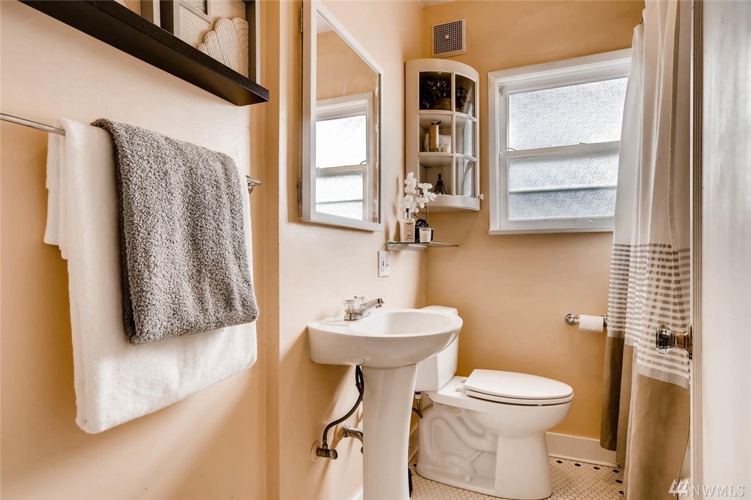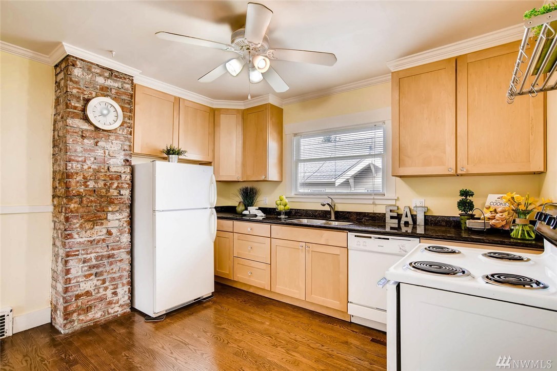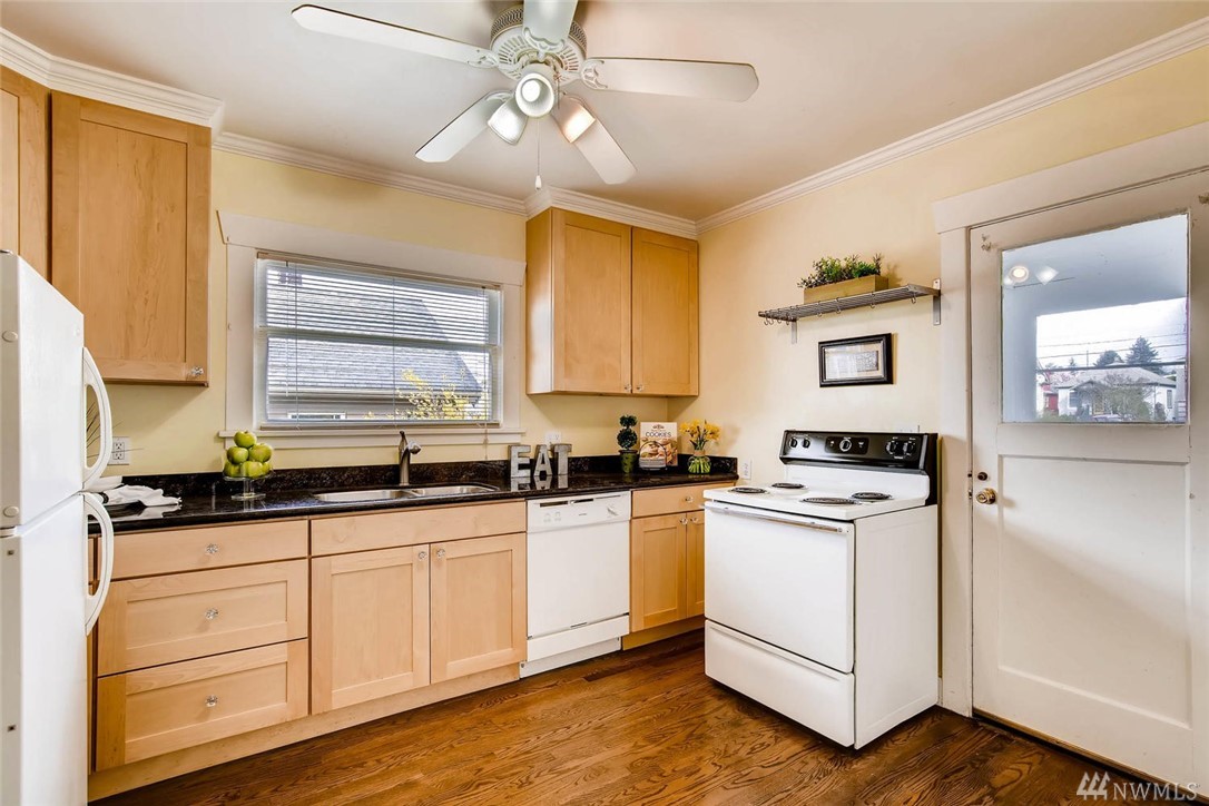 Desirable Ballard gem with 2 bedrooms, 1 bath & finished upstairs bonus room (360sq ft). Hardwoods on main. Two covered porches situated on a quiet street with great Southern exposure. Updates include electrical panel, gas furnace, hot water tank, sewer line & kitchen. Presently zoned SF, city has identified area for future urban development (LR1 Zoning) -Buyer to verify. Designated bike path. Walk to Ballard Market & Gilman Park. Only 3 blks off Market St, walk score 97. Clean move in ready!