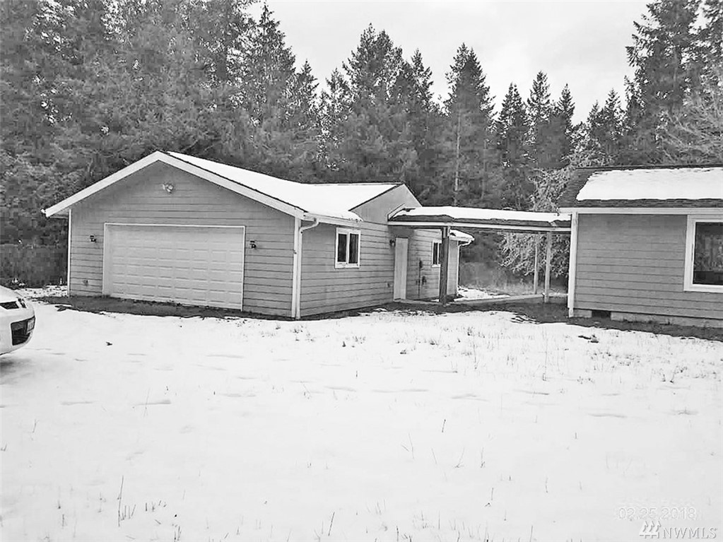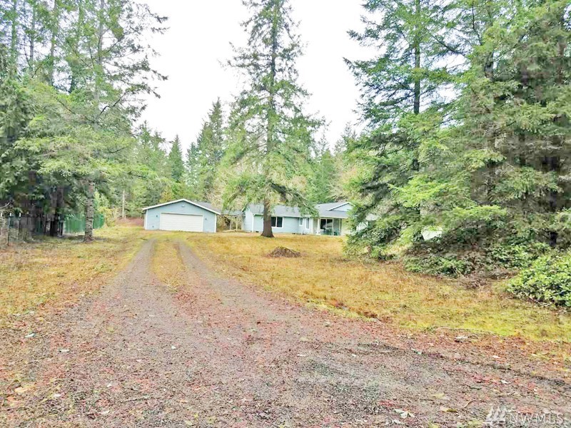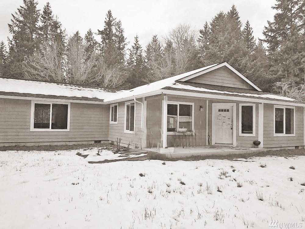One level home built in 2011 nicely sited on level 5 acre lot w/charming covered front sitting porch. Depending on your needs, this is a 3 bdrm or 2 bdrm home (master suite included) w/enormous 20 X 22 ft family room- your choice. Unique Cool breezeway walkway shelters you on the way to oversized 1040 sq ft garage w/great workshop space. Kitchen w/breakfast bar is open to the dining and living room surrounded by windows. The grounds are open to let in light w/perimeter trees providing privacy.