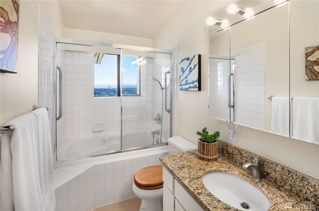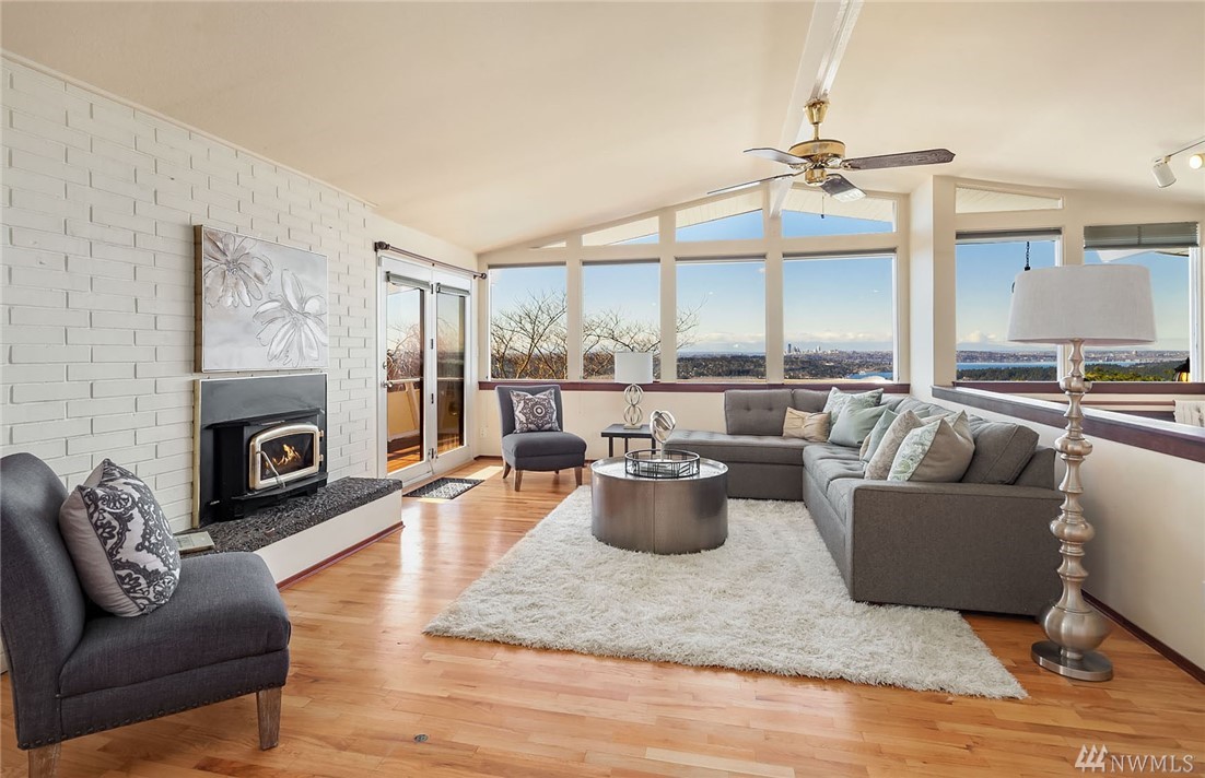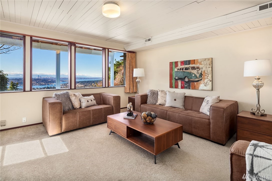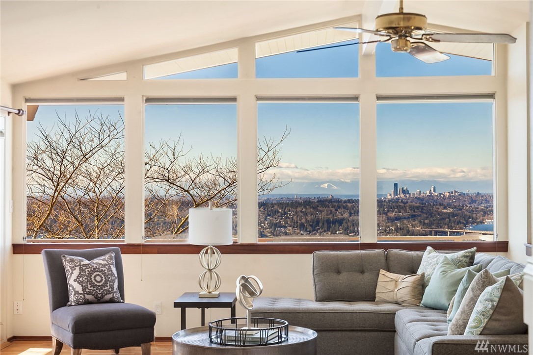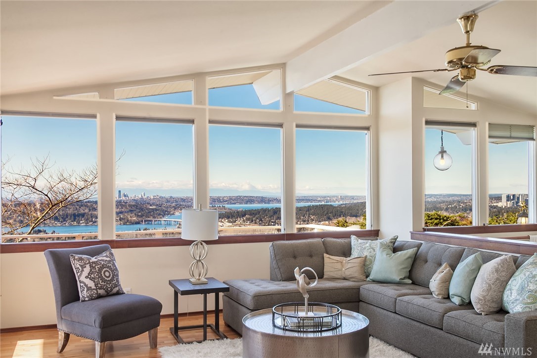 This Somerset home showcases expansive views of Lake Washington, the Olympic Mountains, and the downtown skylines of Seattle and Bellevue. A wall of windows maximizes the views from the living, dining and open kitchen. Large level patio in back perfect for entertaining or play. Master suite w/built-ins & luxurious 5-piece master bath. Lower level family room also highlights the views. Two car garage w/additional storage. Award winning schools: Somerset, Tyee, Newport. This is the place to be!