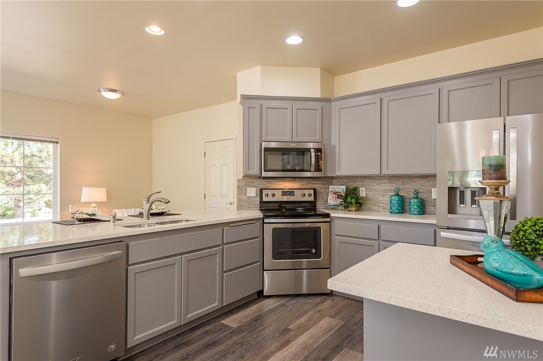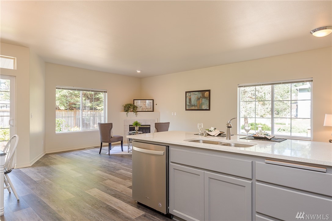 3BR, 2BA single-level condo with light, bright living spaces and open floor plan that is perfect for entertaining. Comfortable living room with cozy gas fireplace. Chef's kitchen with Quartz counters, stainless appliances (included), full-height backsplash and built-in breakfast bar. Dining area with slider to backyard patio. Master suite with private bath, walk-in closet & backyard access. 3rd BR with French Doors makes an ideal home office. Fenced, low-maintenance backyard & 2-car garage.