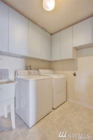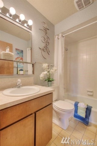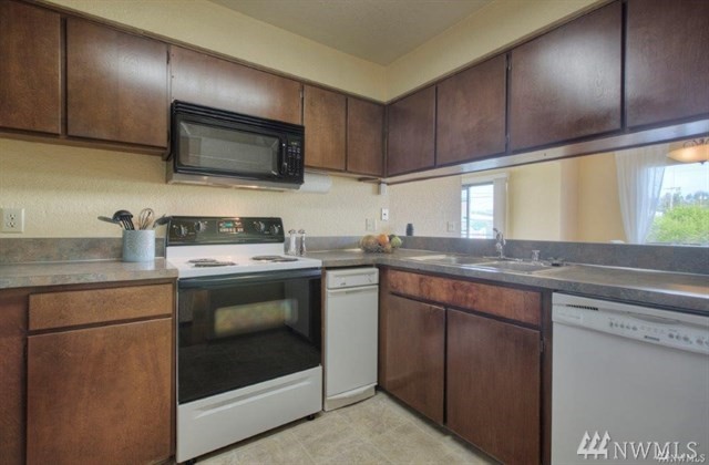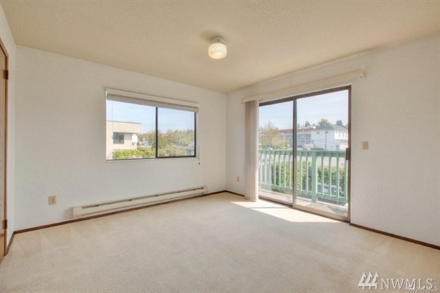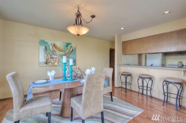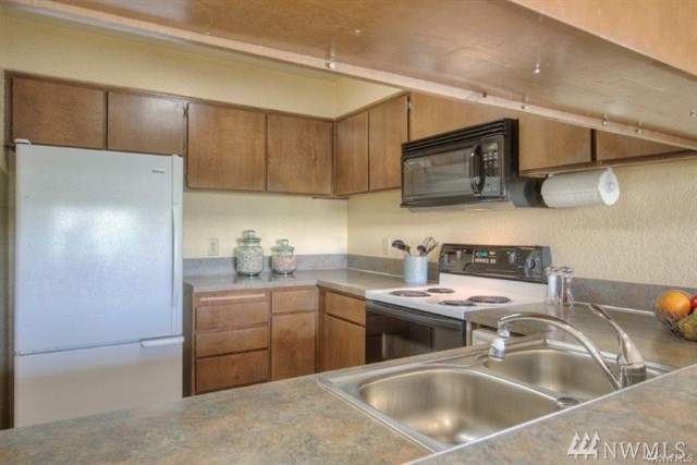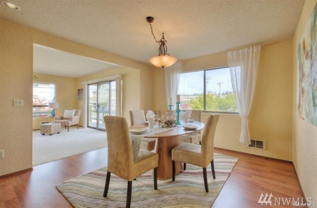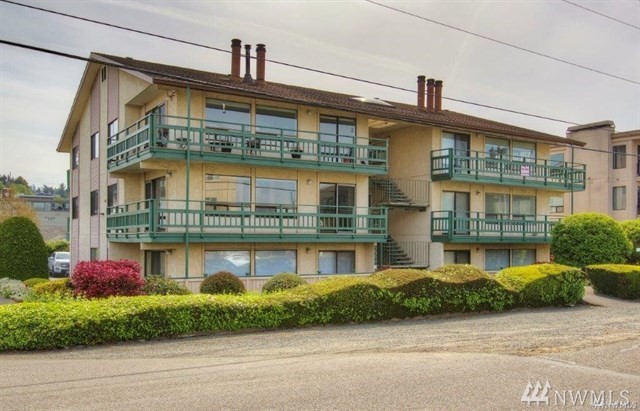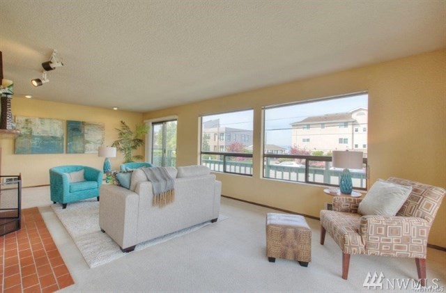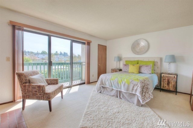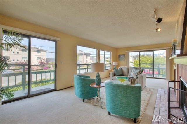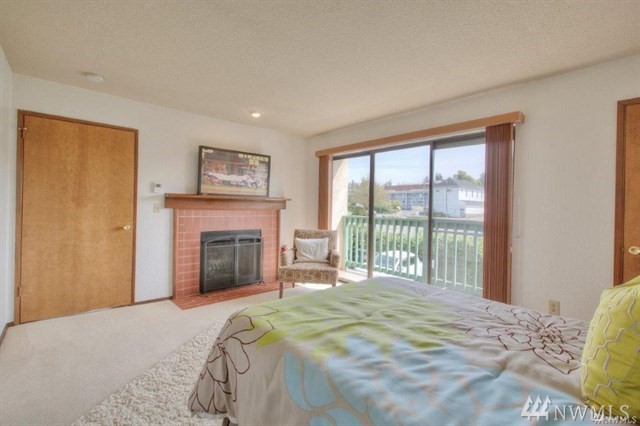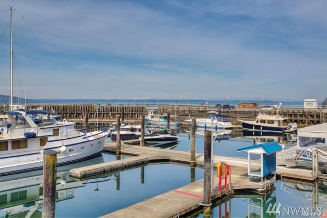 Condo living at it's best! Spacious one level shy 1800 sq ft 3 bdrm, 2 bath condo offers light filled living spaces w/wrap around deck & peek water views, formal dining, quaint kitchen w/eating bar. Large master suite w/private fireplace, walk-in closet, double vanities, soaking tub & attached deck to enjoy the morning sunrise. 2 additional bdrms are good in size. large pantry, utility & storage rooms are a plus...2 gated parking spaces & storage room. Low dues. One block to Des Moines Marina!