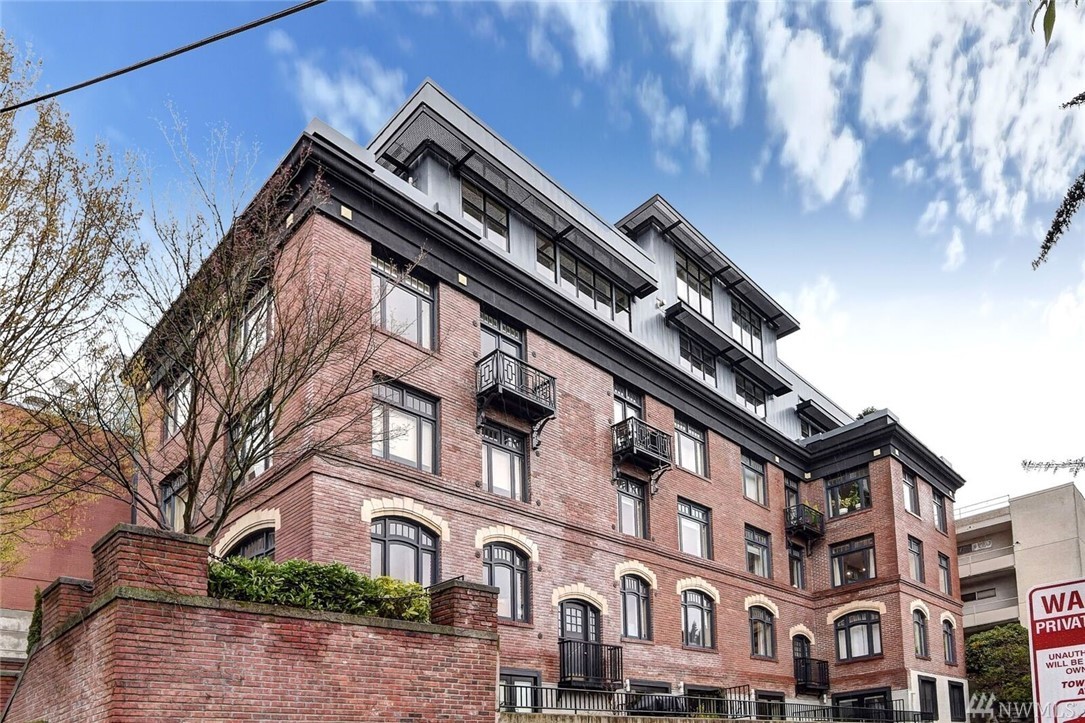 Rare luxury, historical condo with south facing 450sf, private patio, perfect for pets, entertaining. 1 bed + den, large master w walk-in closet, master bath w limestone finishes, high end sub zero Viking appliances, central A/C, parking spot, 1 storage unit. Hardwood floors, quartz counters, large powder room, tons of storage, south slope of Queen Anne.