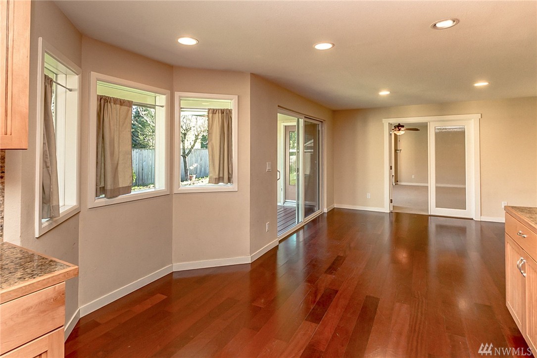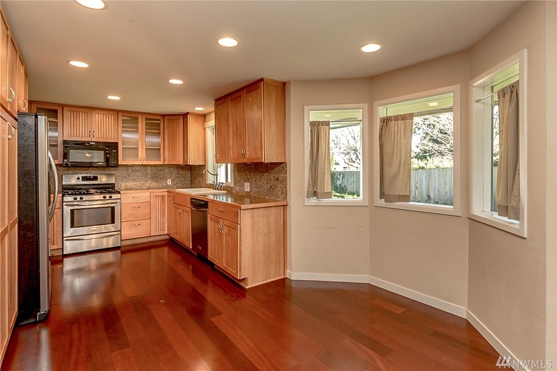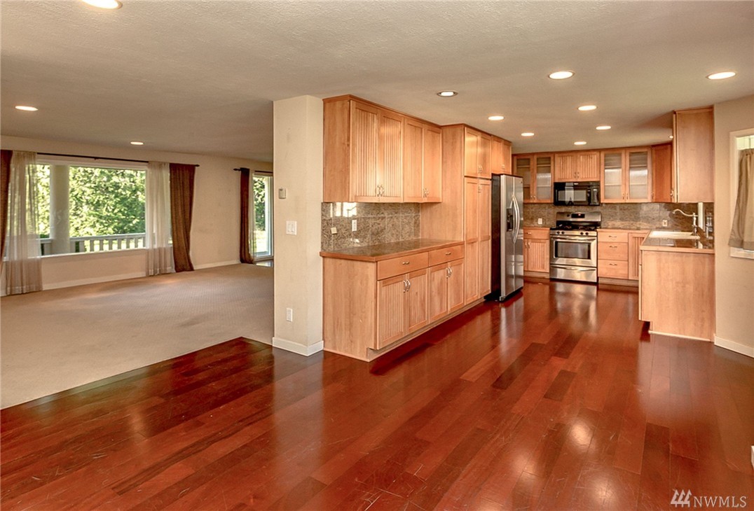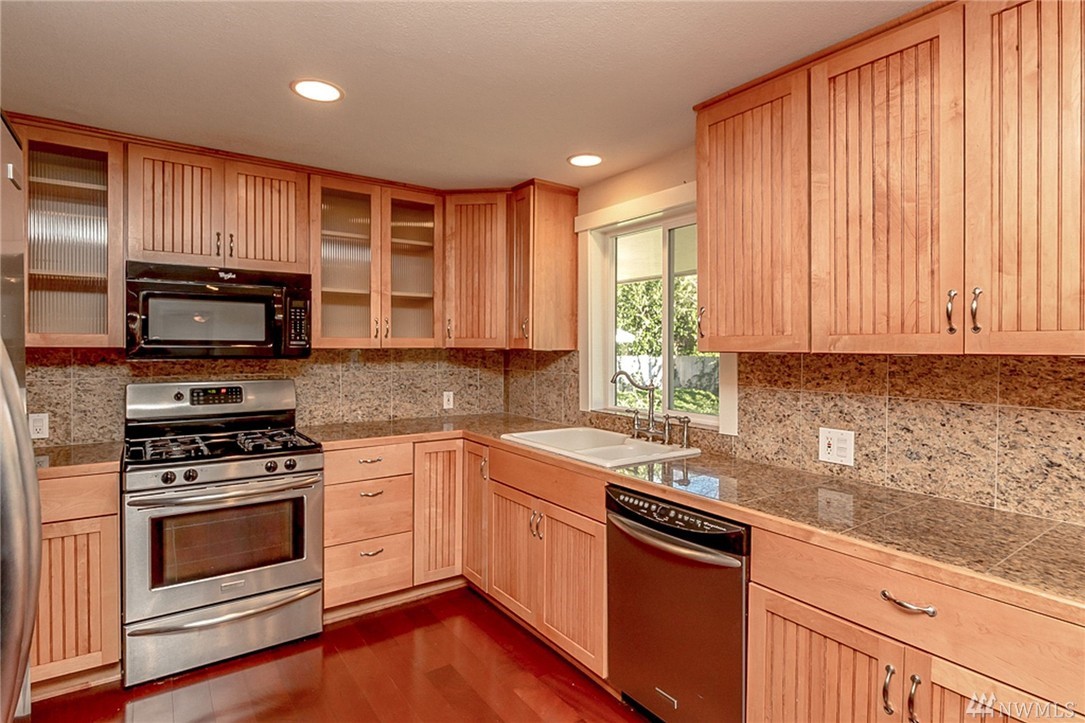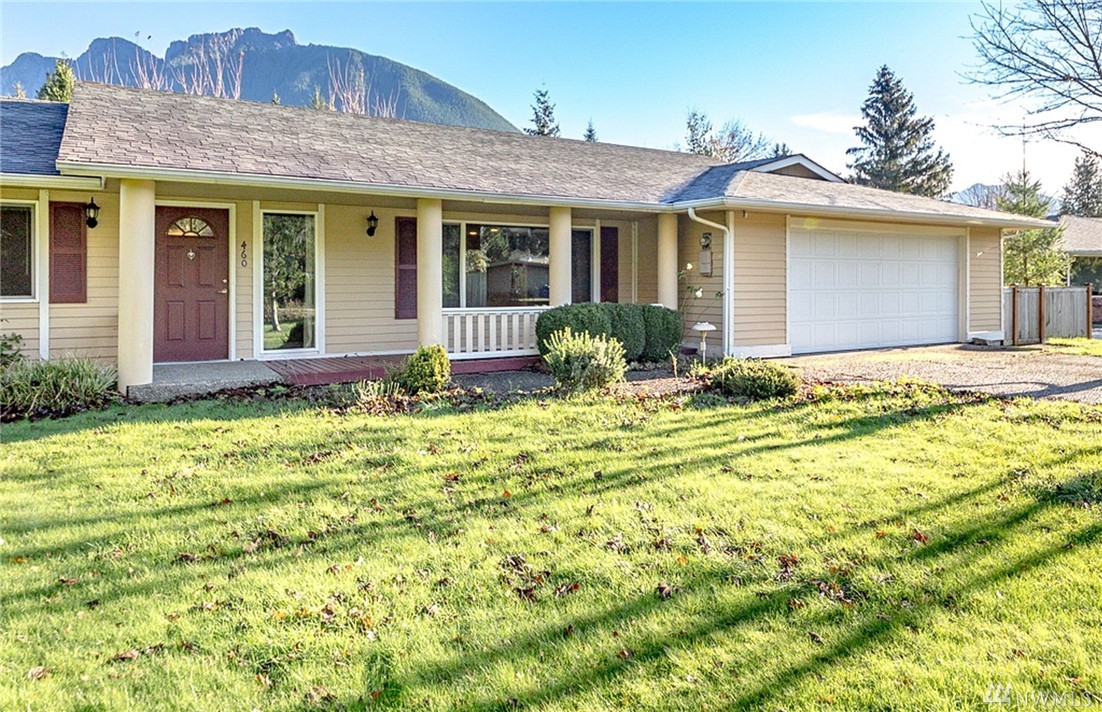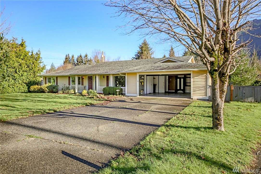 Short sale. Buyer to pay SS fee of $2695 plus King County septic fees. 3 liens. Beautiful remodeled rambler located in the heart of North Bend. Walk to Si View Park, shopping & trails. Kitchen has granite counters, stainless steel appliances, custom maple cabinets and hardwood floors. Updated bathrooms include mahogany cabinets & granite counters. Huge family room with glass French doors & rock wall fireplace. Updated windows/roof, covered front porch. 10,000 sf lot with fenced yard & patio.