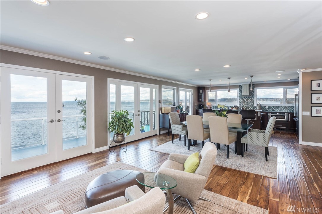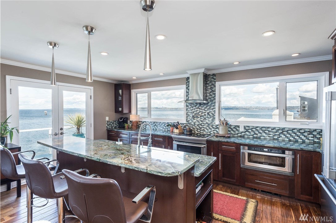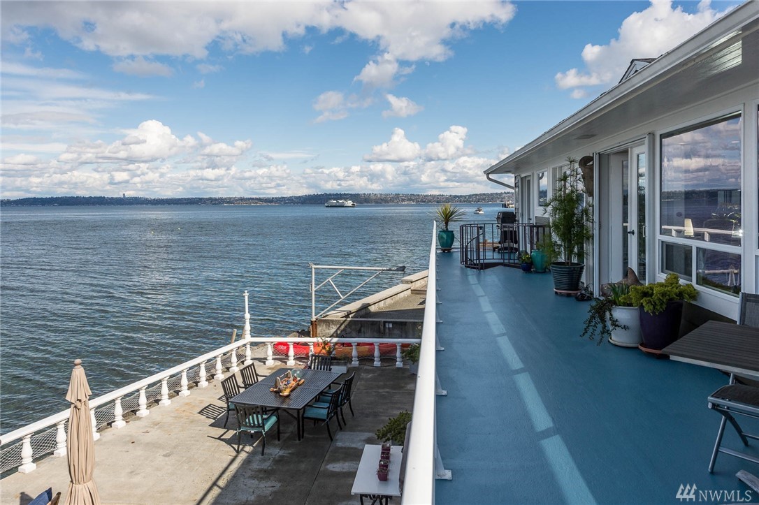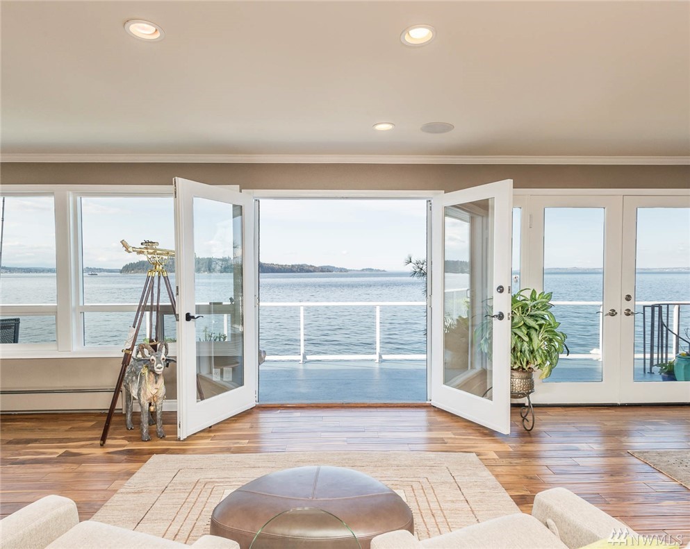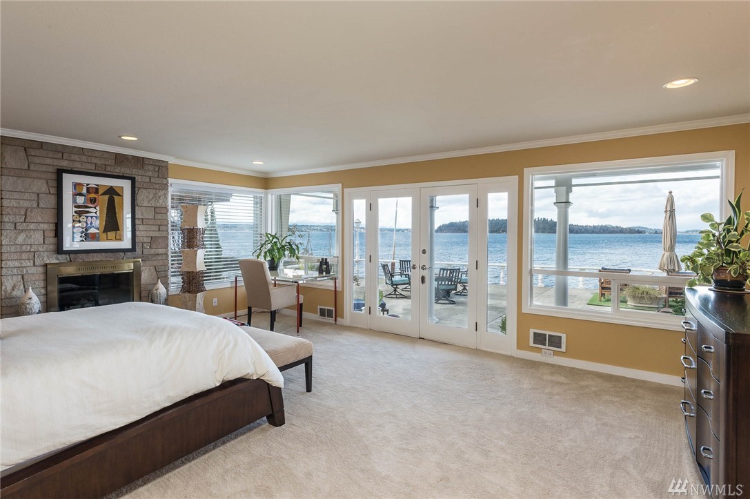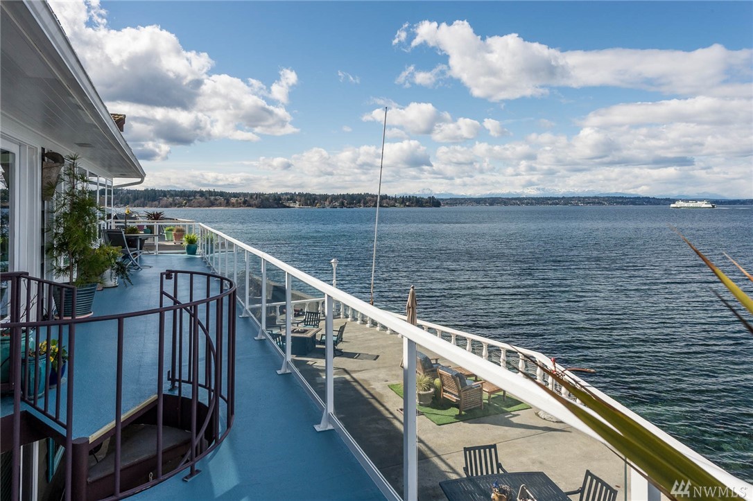 Exceptional beachfront living in this stunning contemporary home w/ 60+’ of low-bank waterfront & sweeping views of Sound, Olympics, Cascades, Mt Baker & city lights. Home offers great room floor plan, walls of view windows, 2 fireplaces, designer kitchen, teak floors, exceptional master suite, elegant finishes & artisan touches. Two large view decks perfect for alfresco dining. Experience the beauty of living on the water & seeing the vibrant sunrises & sunsets. 2 minutes from ferry. Paradise!