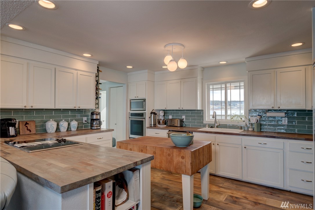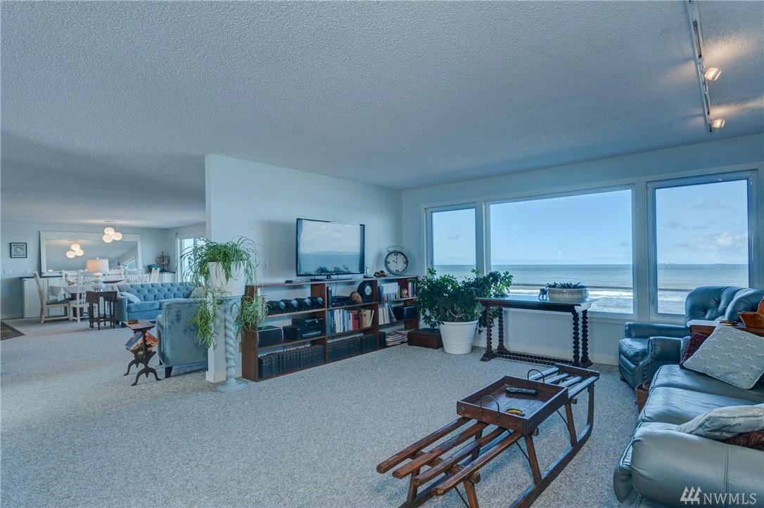 Stunning Sunsets, beach life, incredible sunrises, want more...crabbing, surfing, kayaking, off the deck. 125 ft RARE no bank ocean front living w/tidelands. View of Olympics, San Juans & Mt. Baker from every room. Magnificent 4000+ sq ft beach home features gourmet kitchen, walk-in pantry, office, craft/sewing room, media room & more. Boathouse/shed w/ramp to launch Zodiak from deck. Great potential for AirBnB. Totally updated and ready for you to live the lifestyle you've been dreaming about.