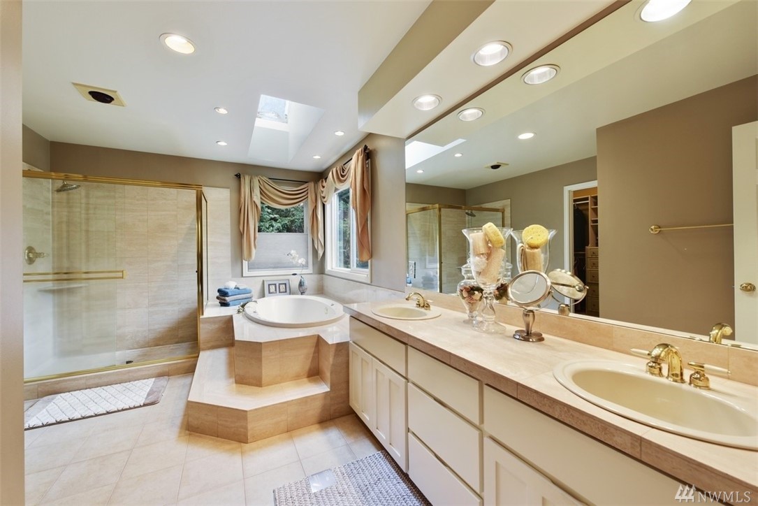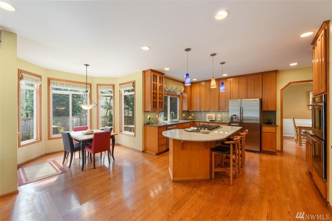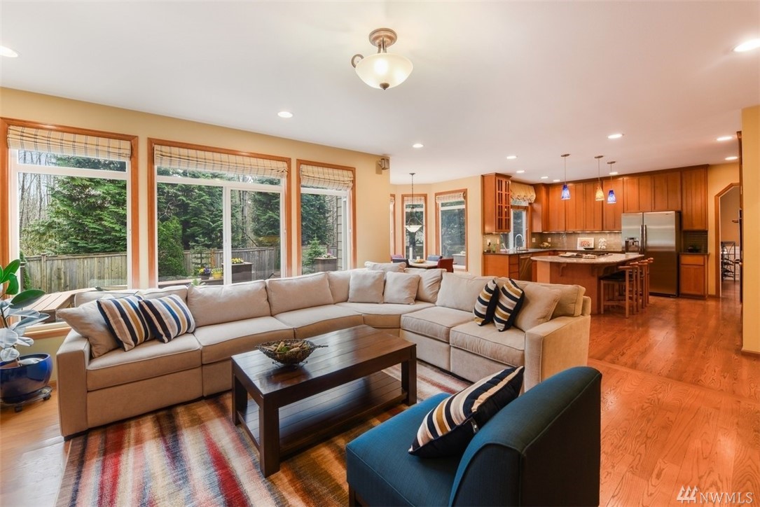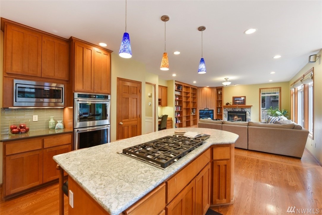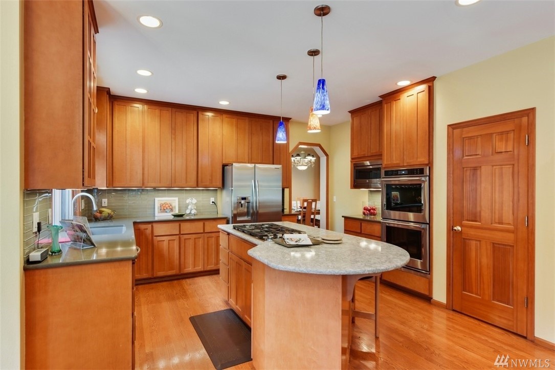 Immaculate, gorgeous Burnstead resale in highly coveted Timberline Ridge neighborhood backs to greenbelt. Walk to Blackwell Elementary in Lake WA school district. 4 BR+ den, with upgrades throughout. Hardwoods on main, built in closets in master, jetted tub, A/C, central vac, heated bathroom floor. New BR carpets. Remodeled kitchen w/ SS appliances, quartz counter-tops. Trex deck, sprinkler system, backyard fountain, landscape lighting for outdoor entertaining. Neighborhood park w/ play area.