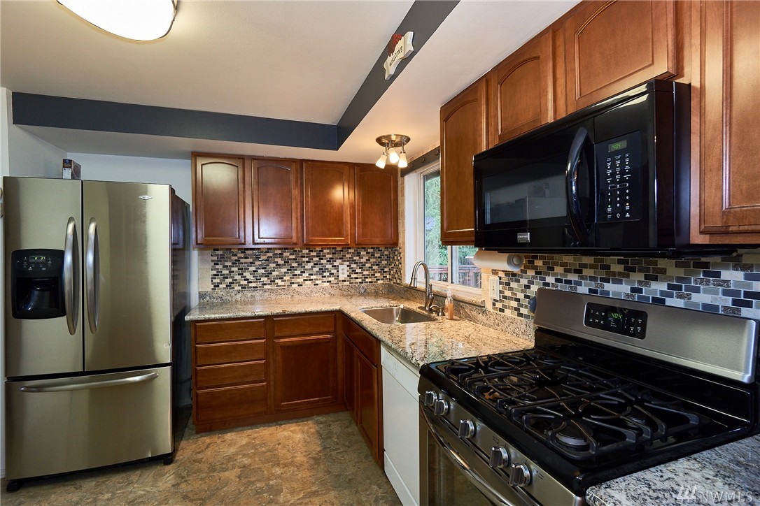 Well maintained and remodeled home. Recently updated kitchen with newer cabinets, granite countertops, custom back splash and newer appliances. New carpeting throughout the living room and hallway but there are hardwoods underneath. Well laid out home with separate living and rec. room. Large backyard with tons of charm, huge deck partially covered and RV parking.