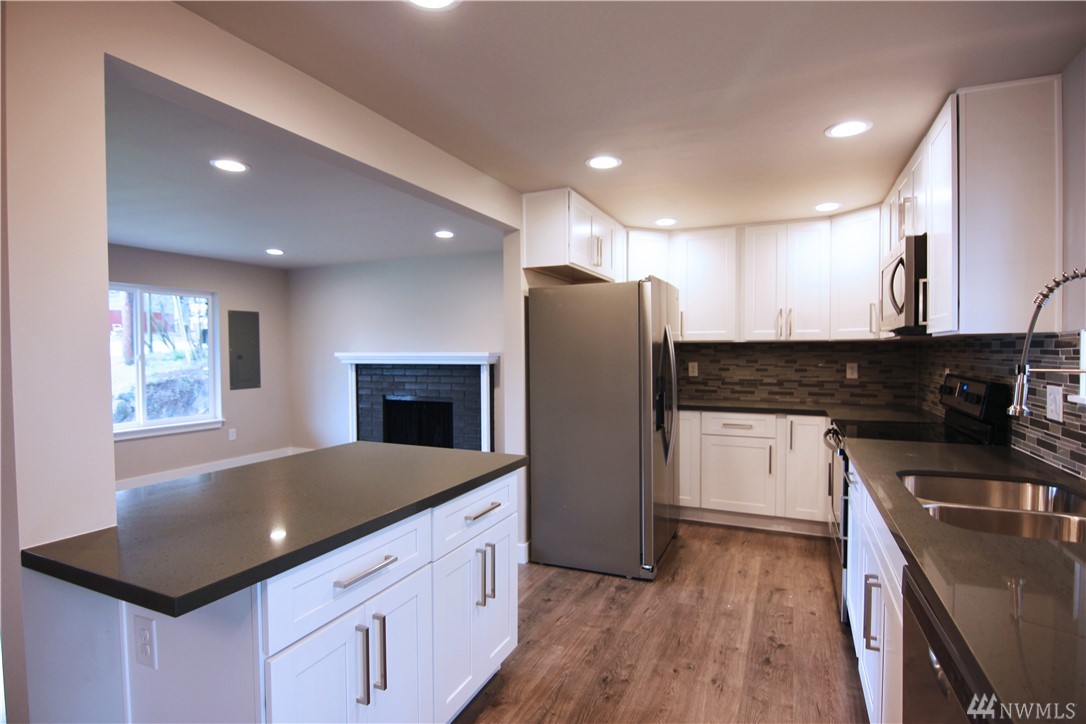 Completely remodeled rambler with basement. Kitchen is furnished with new cabinets, slab granite countertops, and tiled backsplash. New stainless appliance package. Freshly painted interior and exterior. New flooring throughout home. New windows, doors, trims, and bathrooms. Attached garage. Basement w/entertainment sized family room. Fireplaces in both living and family room. Backyard with deck and patio. Great access to freeway, schools, shopping and airport.