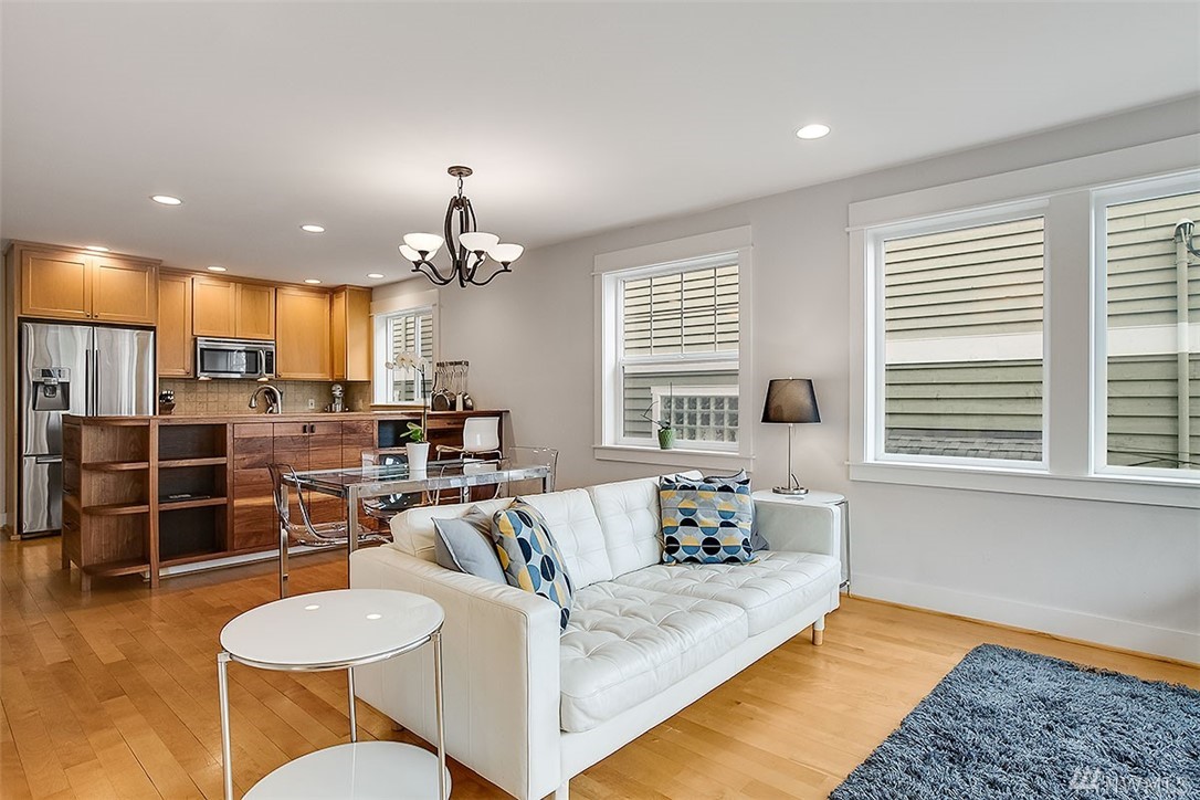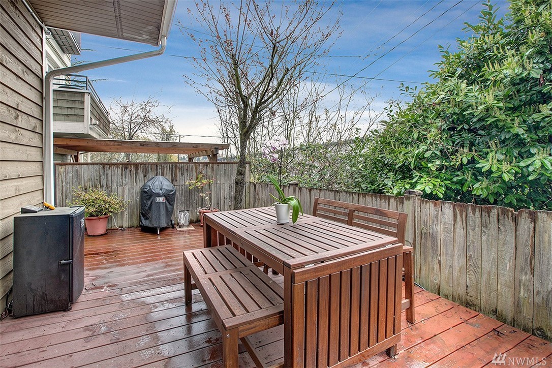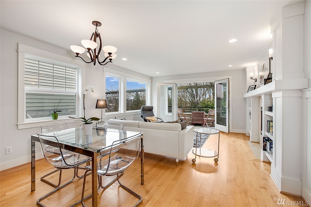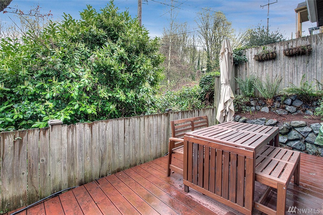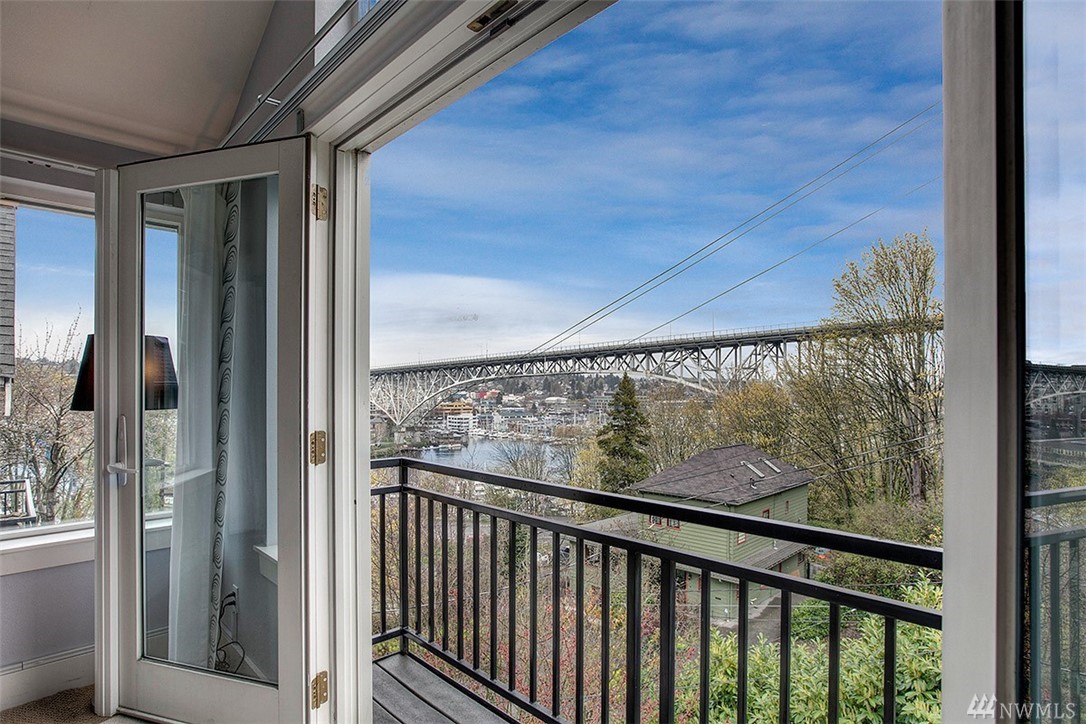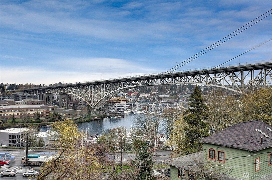 Privacy and views of Lake Union and Fremont Bridge from this large freestanding home on north Queen Anne. Walk into the main floor to an open floorplan with great space and light. Three bedrooms and two baths upstairs (you will love the master suite), and downstairs a guest suite (4th bedroom) with 2nd daylight living space. One car garage, two additional off street parking, and tons of extra storage in the basement. View deck from the main floor and private patio off the downstairs living room.