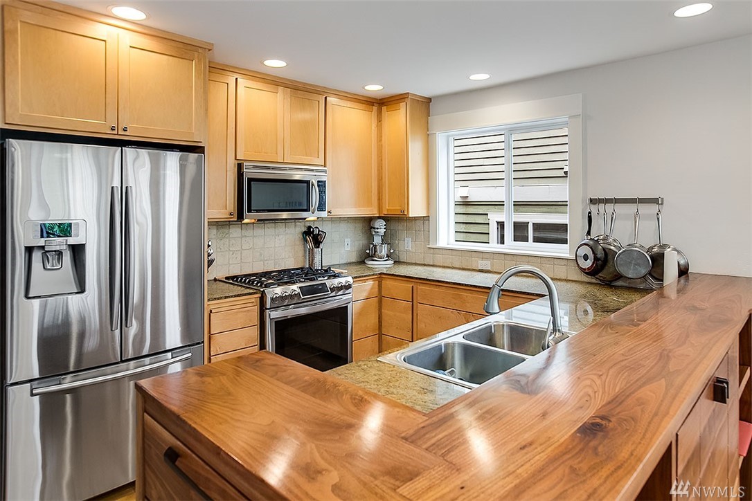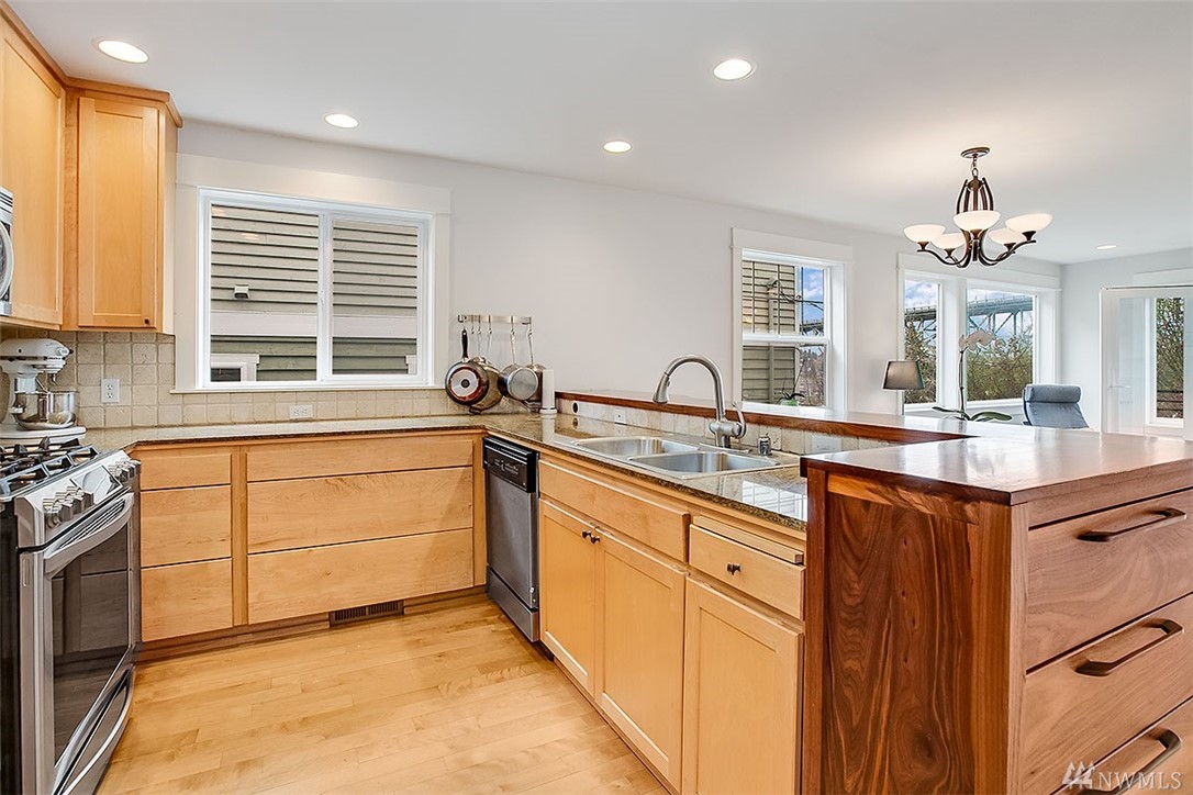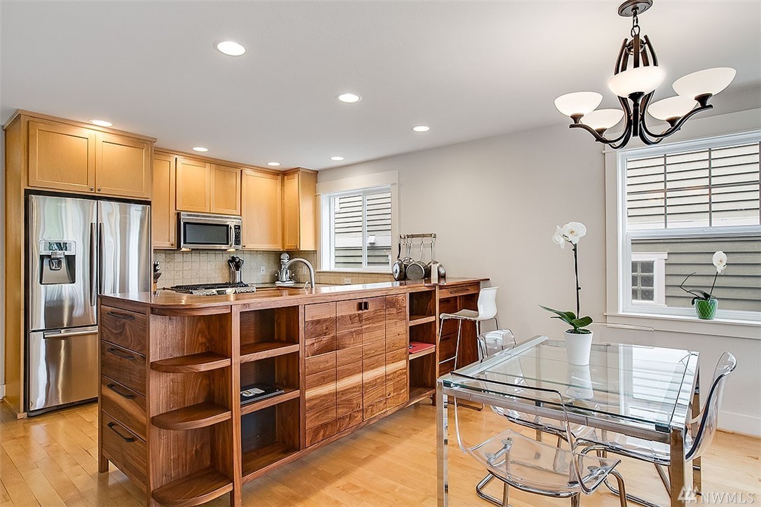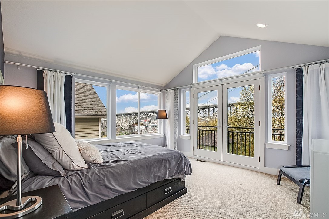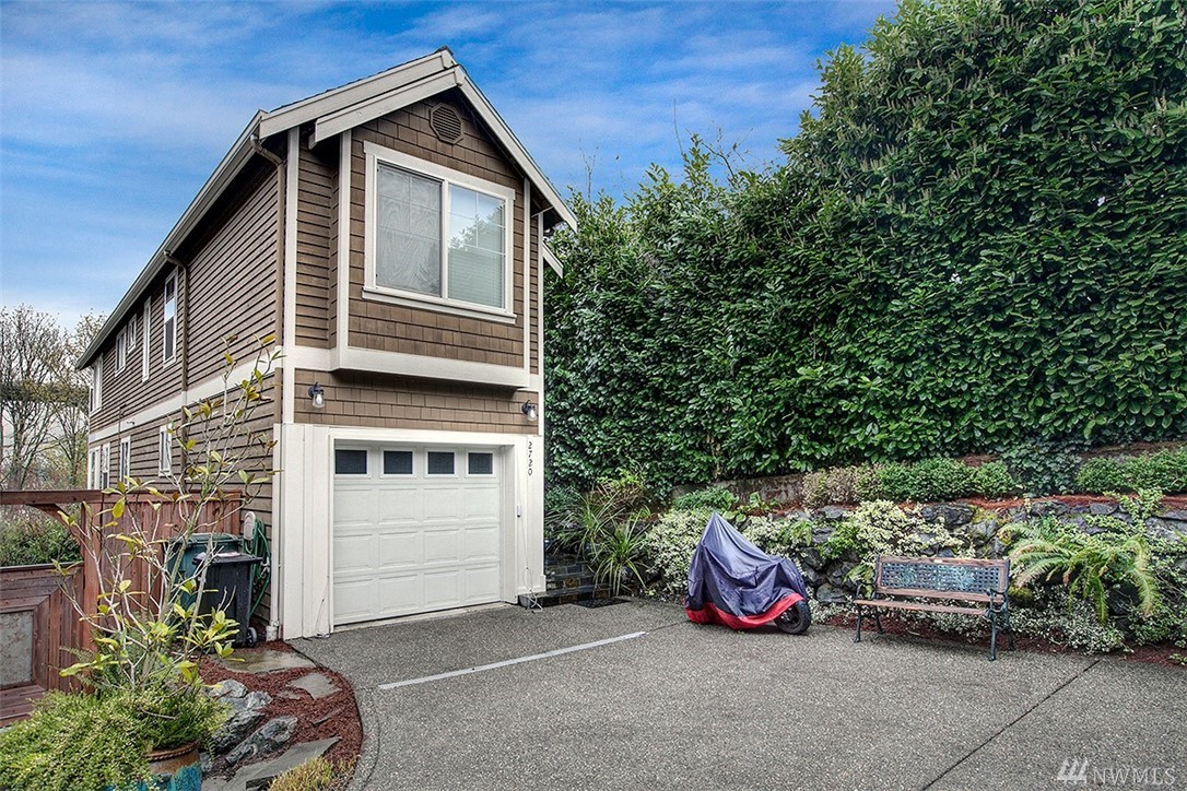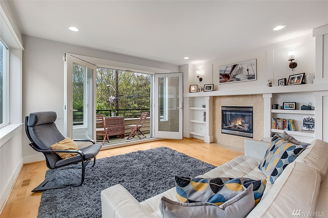 Privacy and views of Lake Union and Fremont Bridge from this large freestanding home on north Queen Anne. Walk into the main floor to an open floorplan with great space and light. Three bedrooms and two baths upstairs (you will love the master suite), and downstairs a guest suite (4th bedroom) with 2nd daylight living space. One car garage, two additional off street parking, and tons of extra storage in the basement. View deck from the main floor and private patio off the downstairs living room.