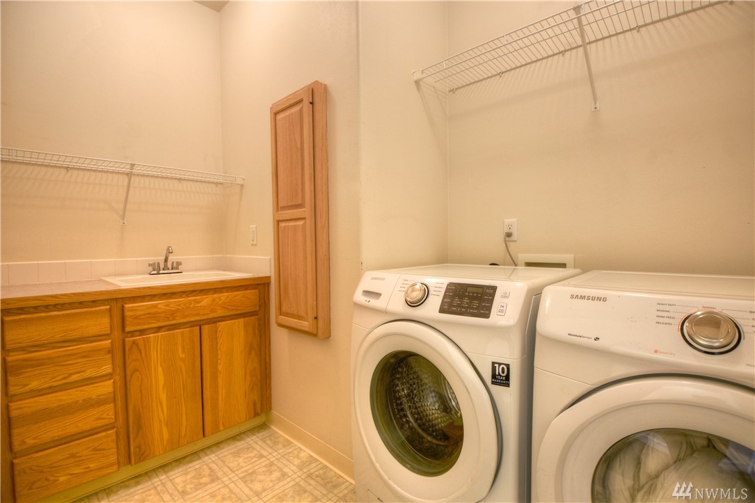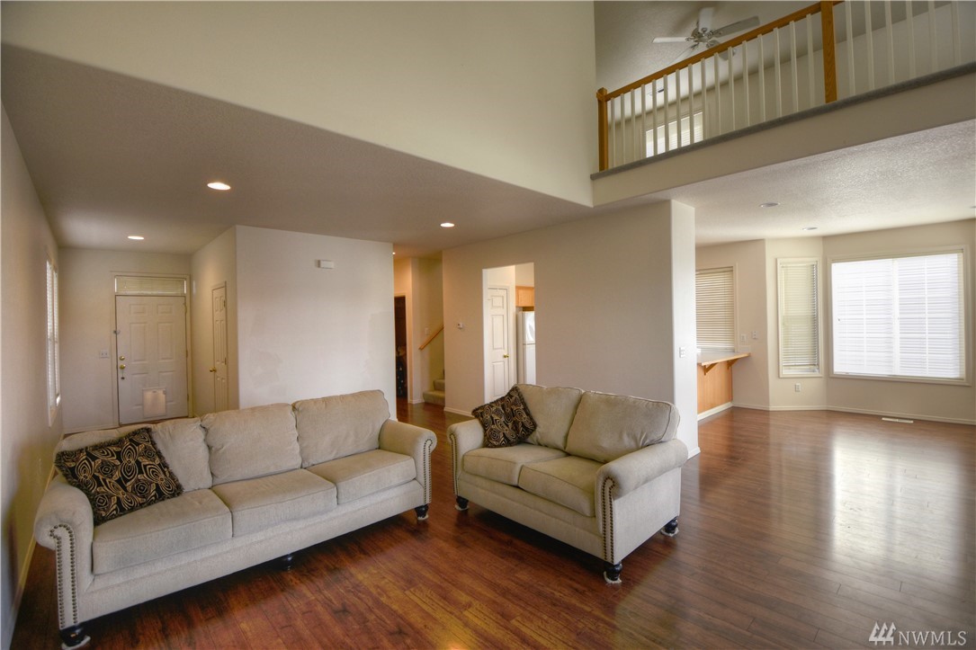 Come see this immaculate and spacious two story beauty located in popular Union Mills area! Over 2,000 sq.ft. and built in 2001. Lofty & airy with new wood floors throughout main floor. Located with quick access to freeway, JBLM, shopping, entertainment & food venues. Gas range, built in ironing, laundry sink, added recessed lighting, large family room upstairs, ceiling fans, master skylight, Trane central A/C, 2"blinds, concrete patio, newer gas hot water, recently painted inside and trim out.