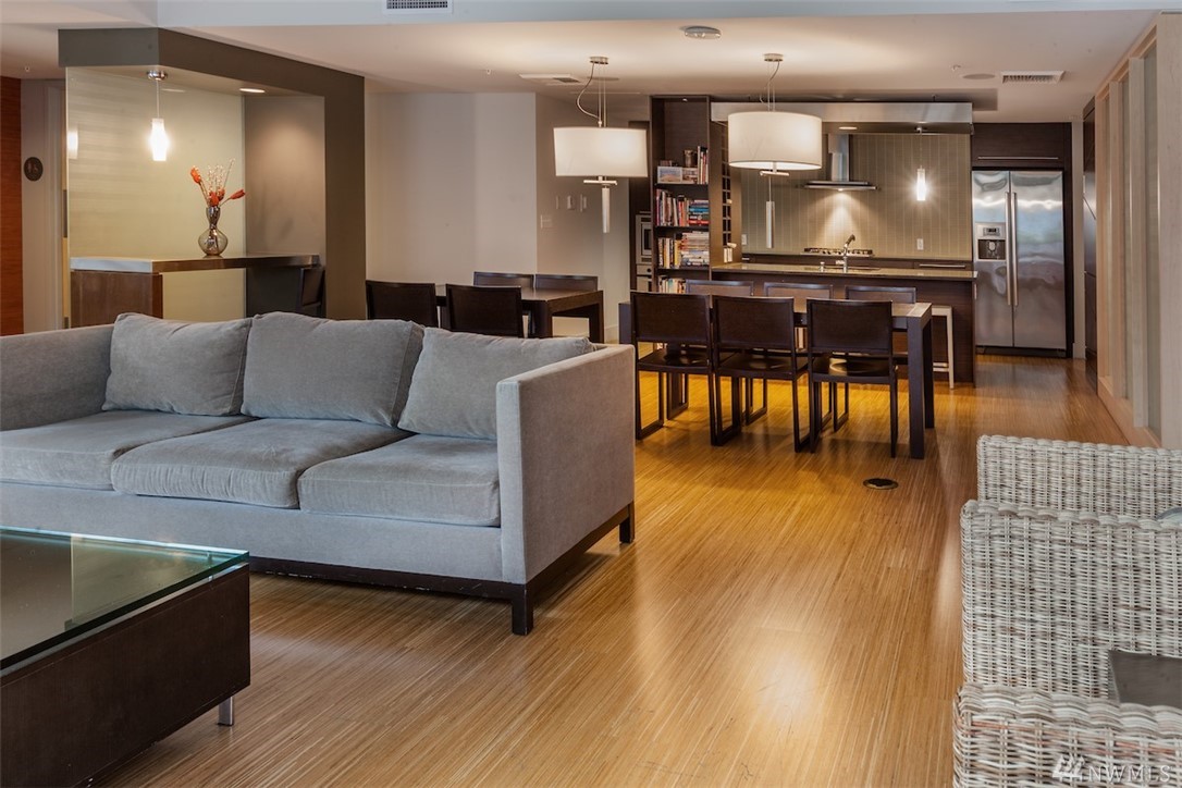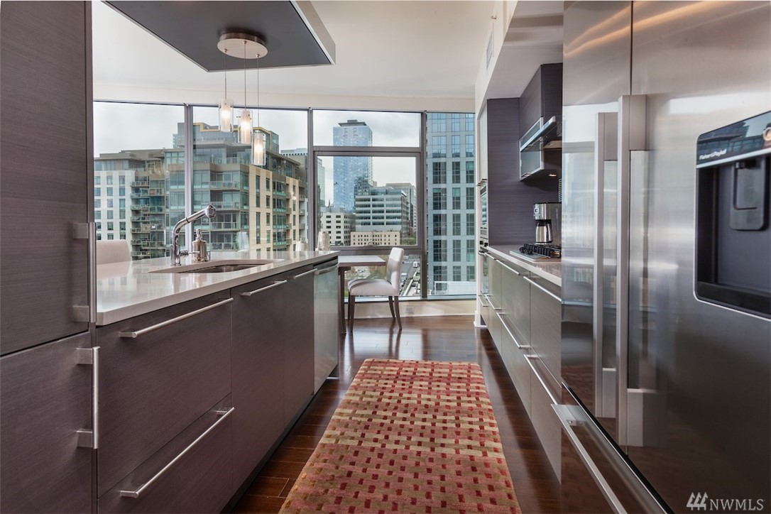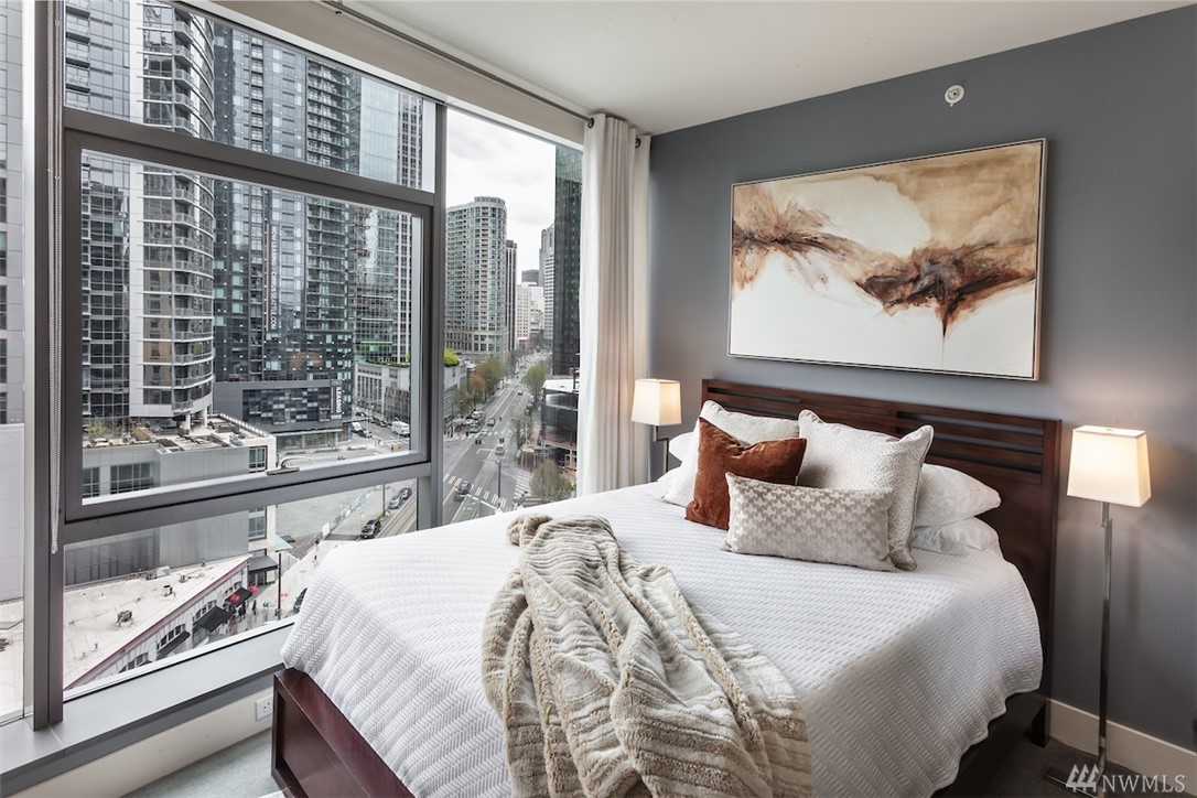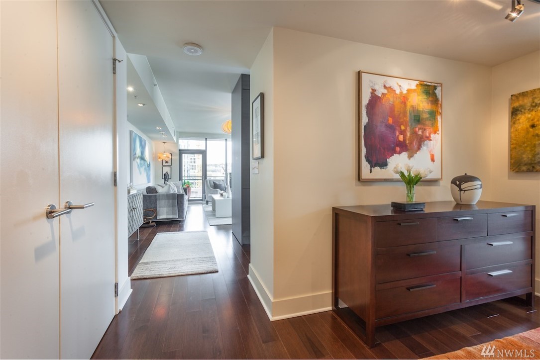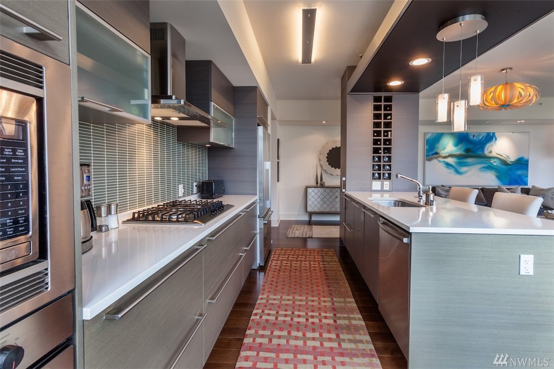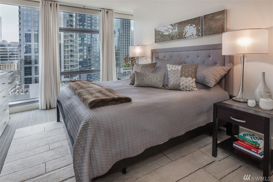 City life elevated to new heights in 2 bed, 1.75 bath home in the Enso Building. Floor to ceiling windows frame backdrop of gorgeous vistas & open concept offers seamless flow. Living room views meet custom lighting, fireplace & hardwood floors. Step onto the private balcony for immersive city experience. Chef's kitchen w/SS appliances, gas range & eat-in bar. Master suite w/walk-in closet, spa-like bath. Secure building, 2 parking spaces, addt'l storage, luxuries amenities & walkability.