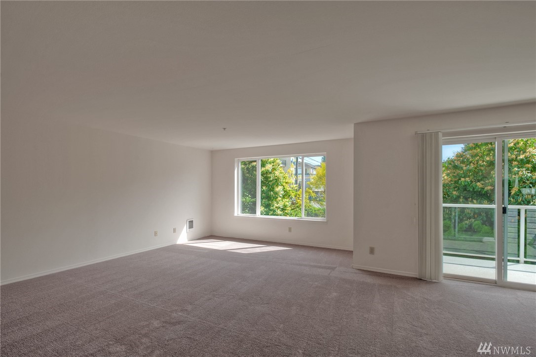 Rare opportunity on North Beacon Hill; a 2 bedroom and 2 bath condo located near Downtown, International District and First Hill. This unit features a large living room with a fireplace (decorative) and access to the private deck, dining room and 2 spacious bedrooms. Secure 2nd floor unit; located at the rear of the complex for privacy. Recently painted and carpeted too. The building amenities include an elevator, front gate and gated common garage with 1 parking space. Quick bus access.