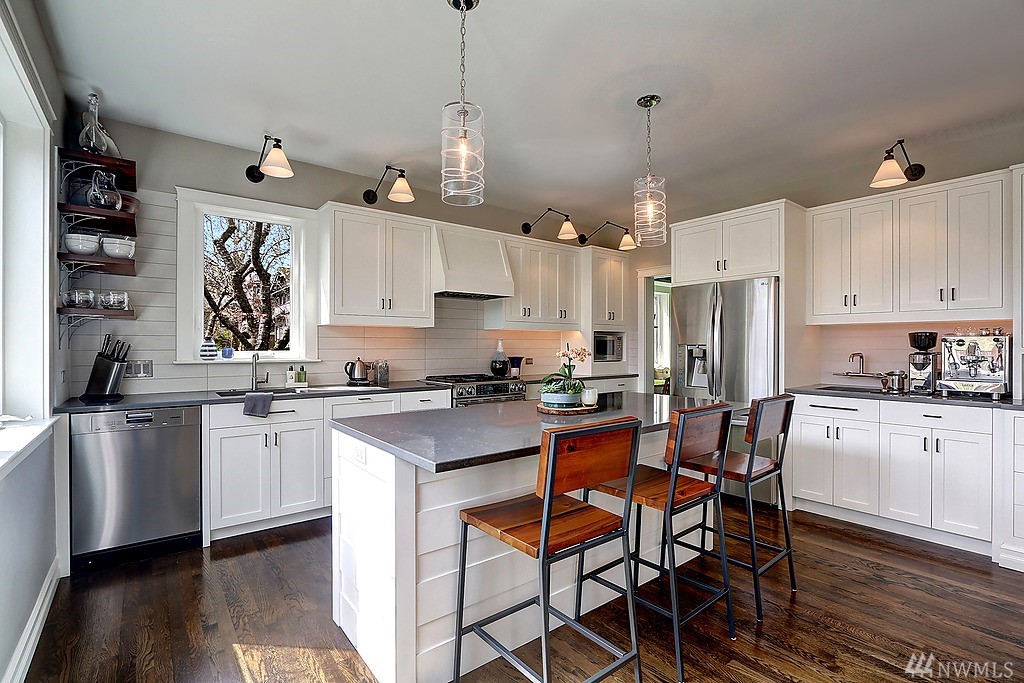 The best open-concept kitchen to hit NW Seattle in years with walk-in pantry, custom cabinetry, coffee bar, island seating, built-in compost and recycling system, designer lighting and more. Backyard with landscape lighting is perfect for entertaining. Living spaces separated by custom-built barn slider offering flexibility to open up/close off. Master bedroom features territorial views, walk-in closet and 5 piece en-suite bath. Alexa-enabled smart home features and 2 car garage with EV charging