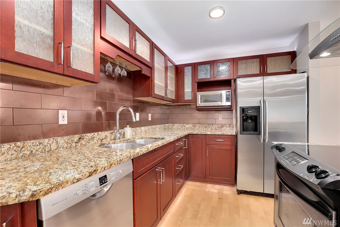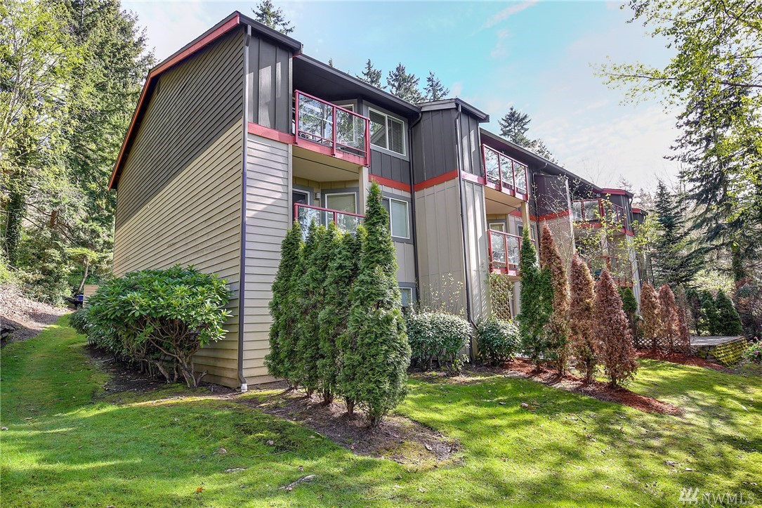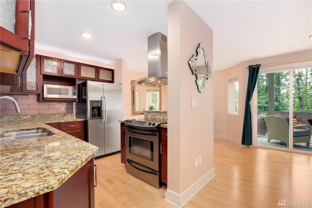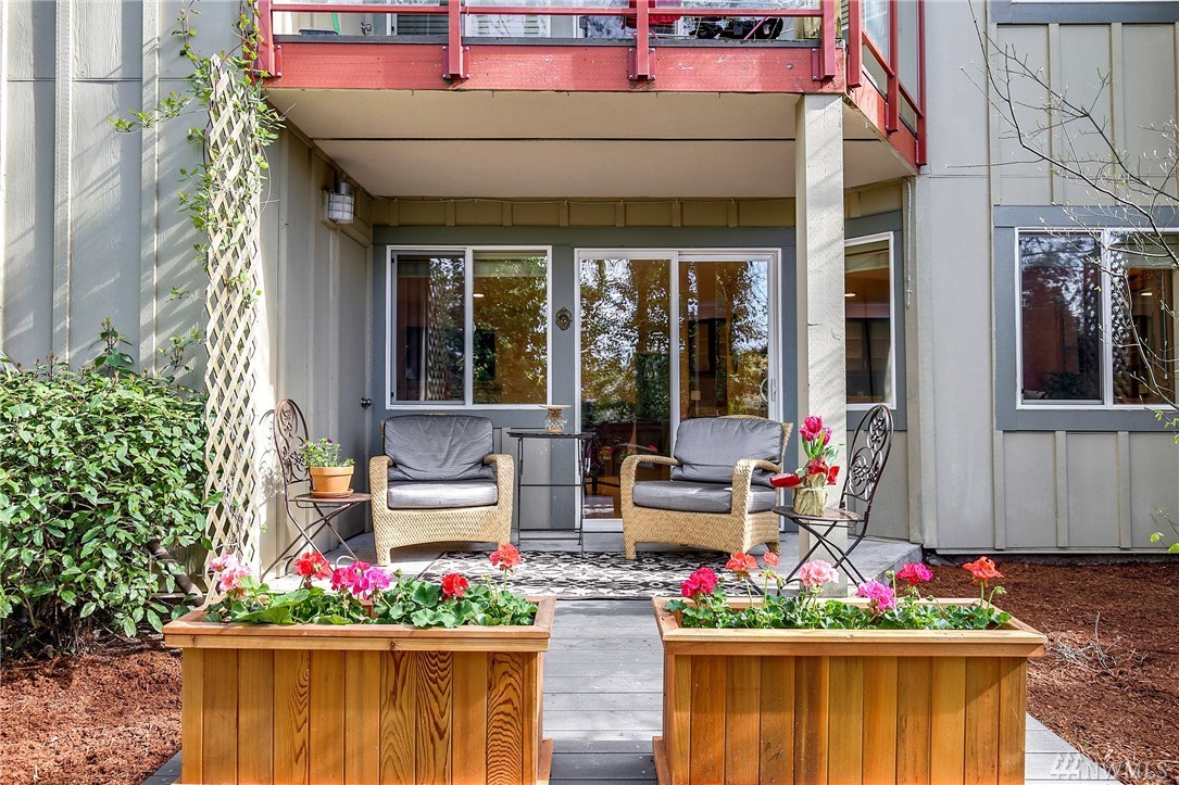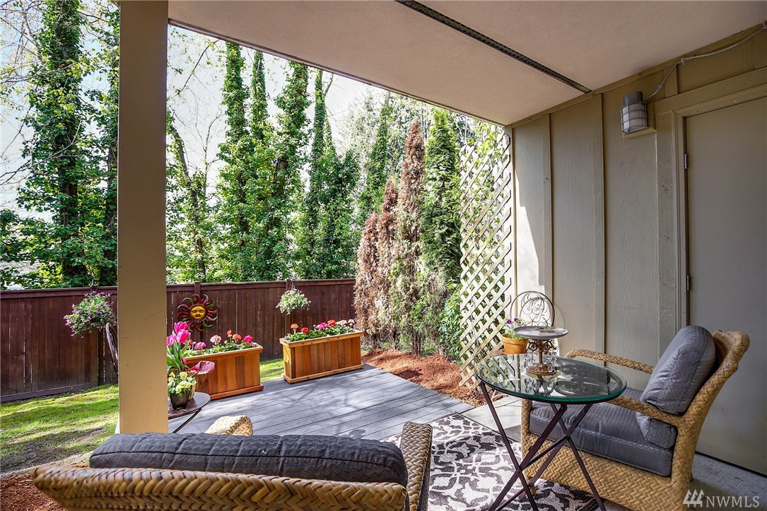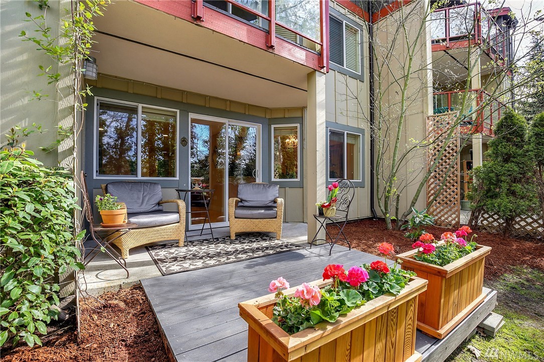 2 BD/1 BA ground flr, private unit in great location! Easy access to 520, 405, Downtown Bellevue & Kirkland waterfront. 10 mins from Google/Microsoft campuses, GIX & 15 mins from Downtown Seattle. Close proximity to trails/Park & Ride. Unit features maple hrdwd floors, SS appliances, granite slab countertop w/bar, rich cherry cabinets w/glass doors. Living room with upgraded electric fireplace opens to private extra large patio w/storage & grassy area for a dogs. 2 designated parking spaces.