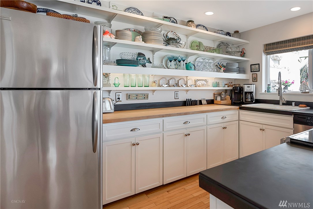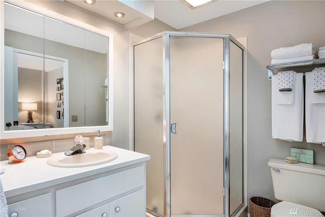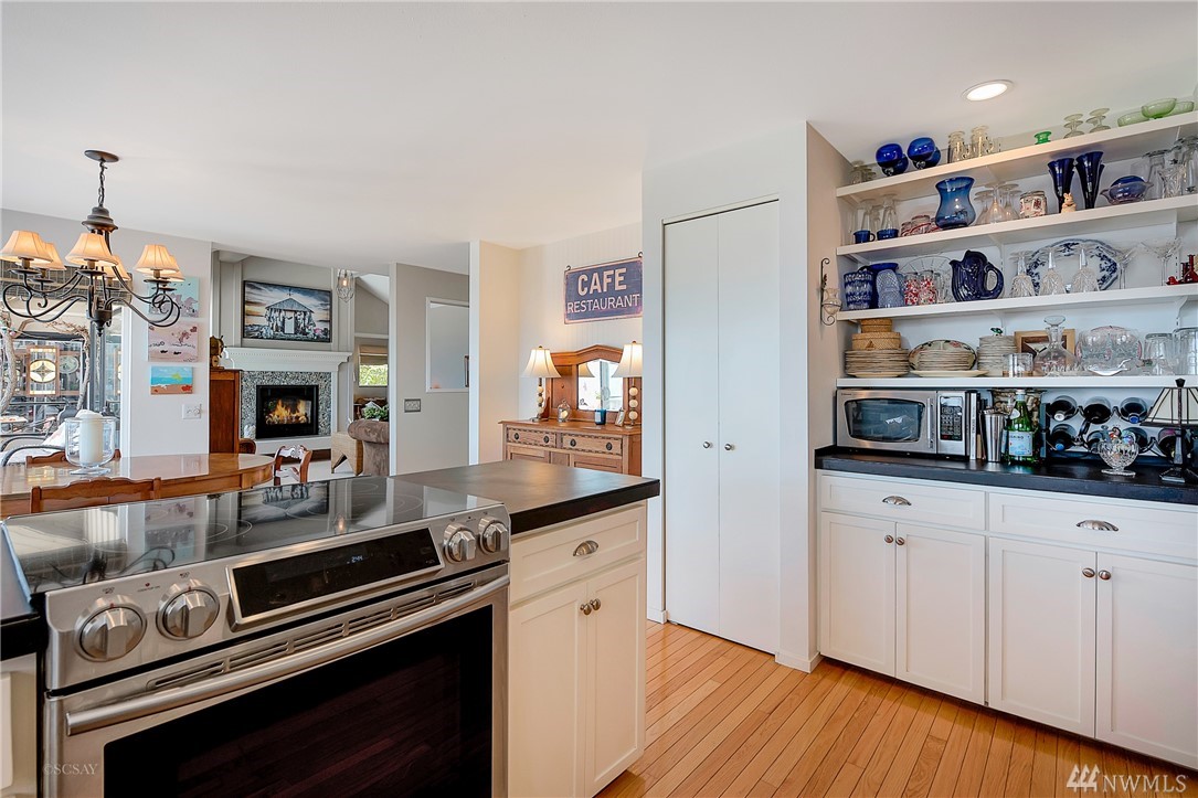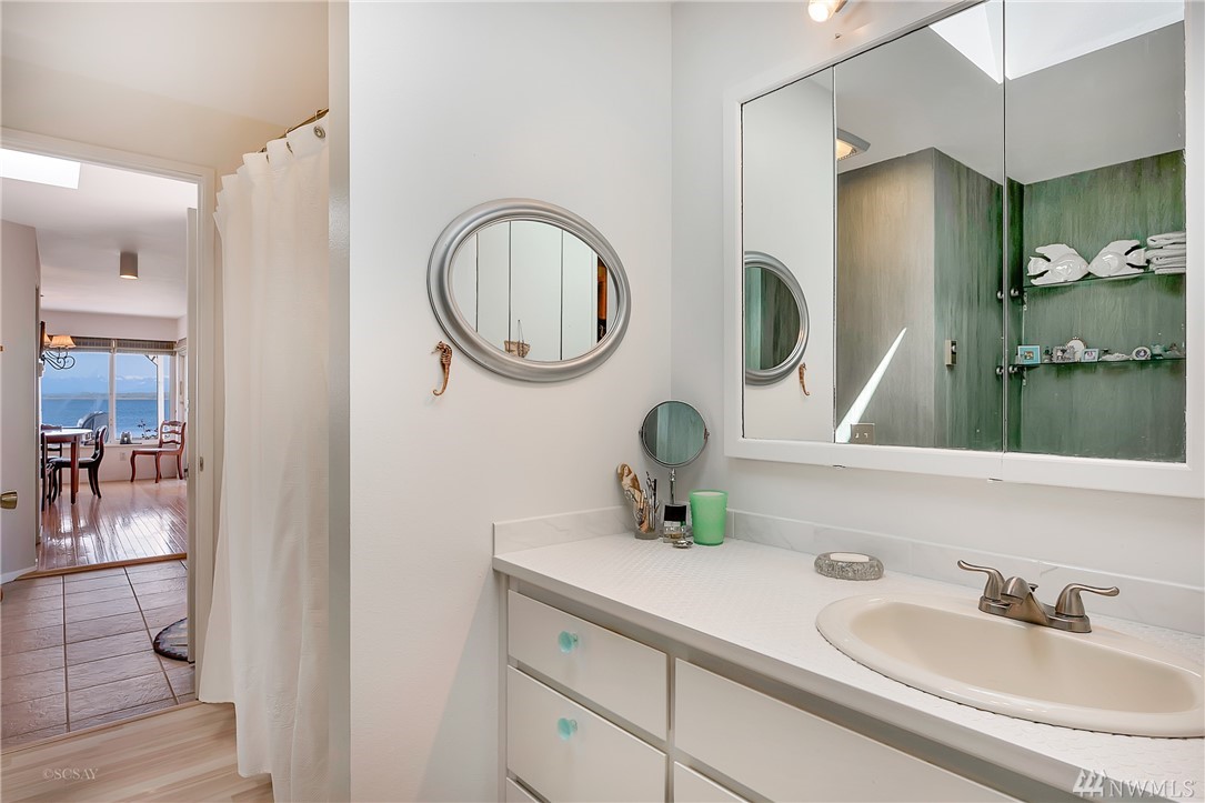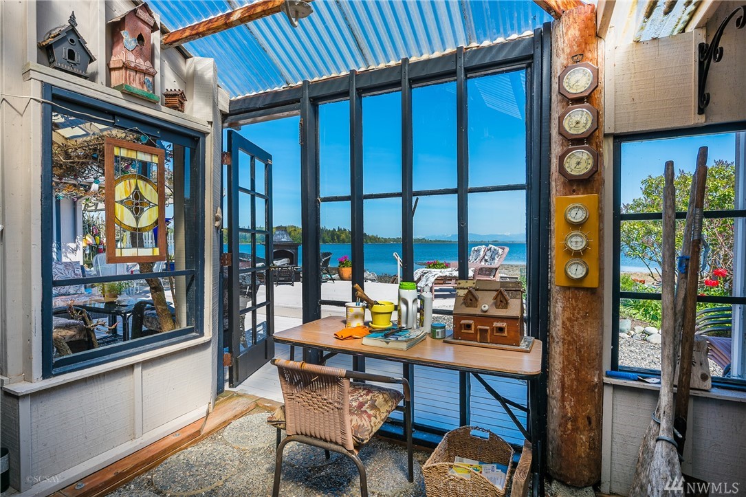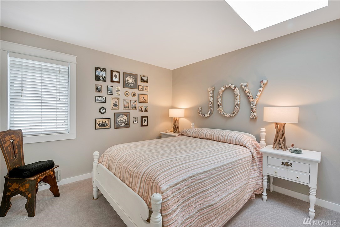Start your day with an amazing view of Mount Baker & the Sisters over the Bay. Waterfront rambler with living spaces overlooking the water. Sweet kitchen with style, includes slate chalkboard countertop from Roosevelt High in Seattle. Gas fireplace in living room, 3rd bedroom is being used as family room. Newer roof, skylights, appliances, FP, carpet. Several private courtyard patios to enjoy your time at the beach. Special feel in this home! Sandy Point: Marina, Golf, Pool, Tennis, Play Areas