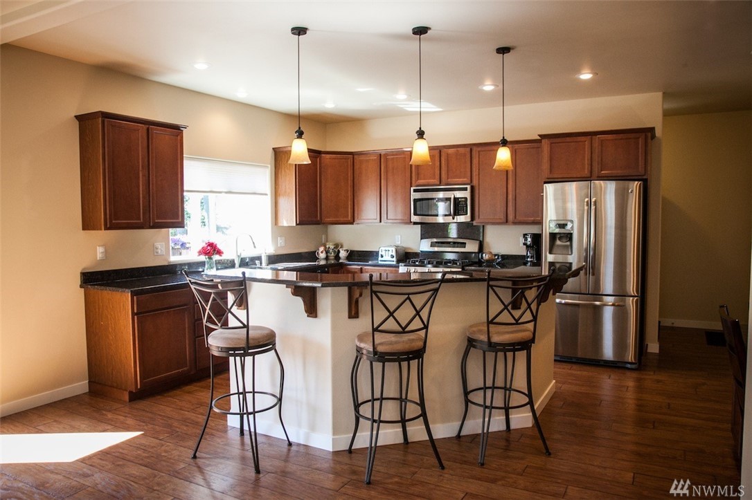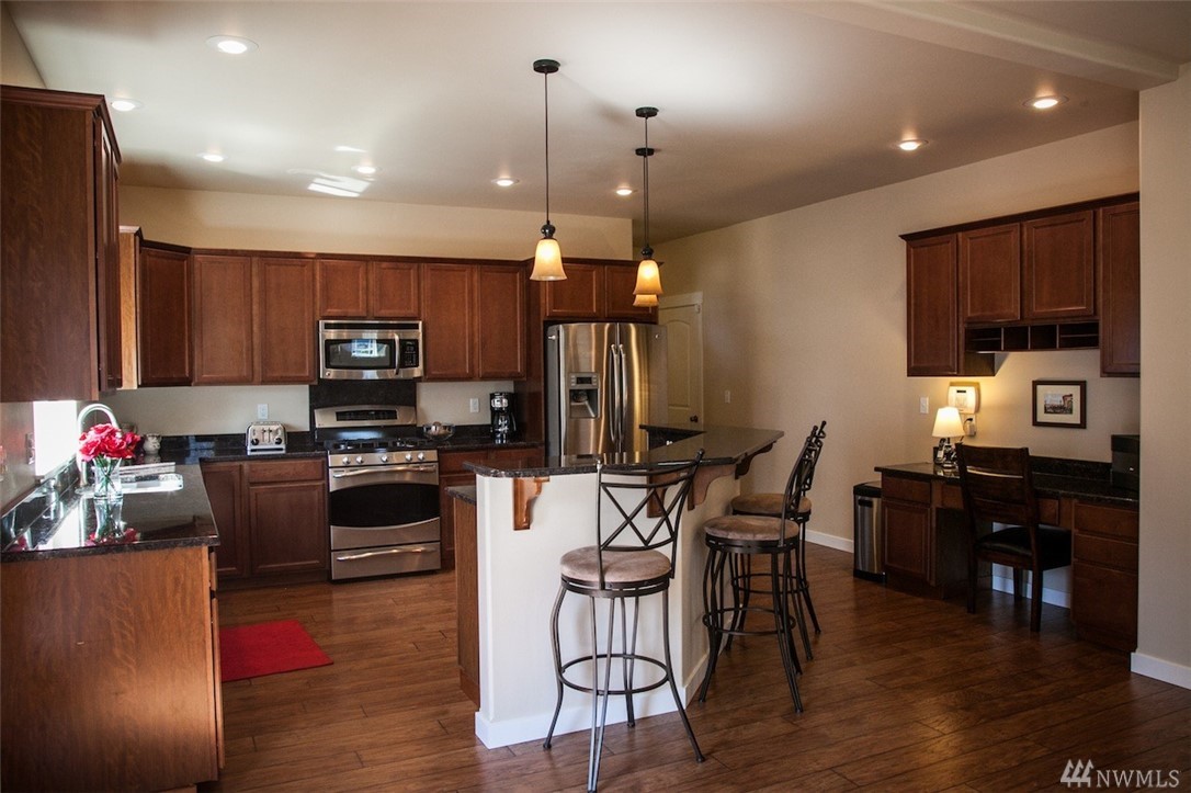 Rare Gem-Fully finished walk-out basement! In popular Meridian Campus, this large home features 3 car garage, covered front porch, fully fenced yard, deck off the kitchen, extended patio off the basement, gorgeous laminate flooring, office/4th bedroom on main floor, gas fireplace, & fabulous kitchen w/granite counters, gas stove, stainless appliances, & lots of storage. Basement features great guest space w/full bath, huge family room, & wet bar. See additional broker remarks for more features.