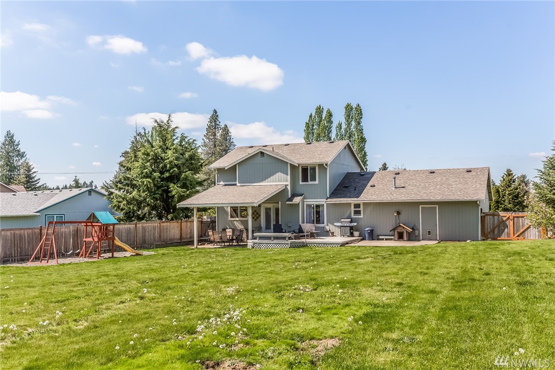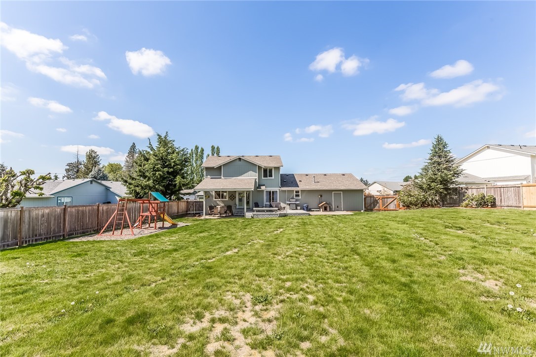 Immaculate home with brand new siding & exterior paint! Desirable gated community of Foothills Estates. Located on fully fenced shy half acre lot with large covered backyard deck. Playset and riding lawn mower stays. Pride of ownership shows in this 3 bedroom, 2.5 bath home. Beautiful hardwood floors throughout main floor in the living room, kitchen & dining room. 3 car garage has a separate room which could be storage, hobby room or workshop in the 3rd bay. Close to Foothills Elementary.