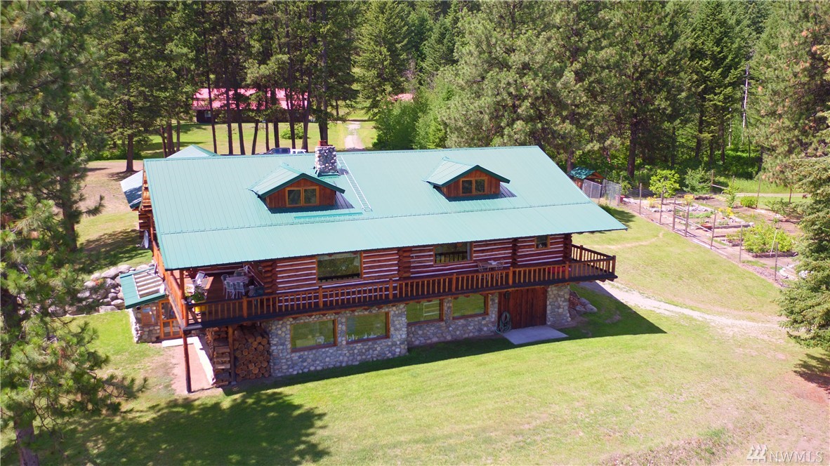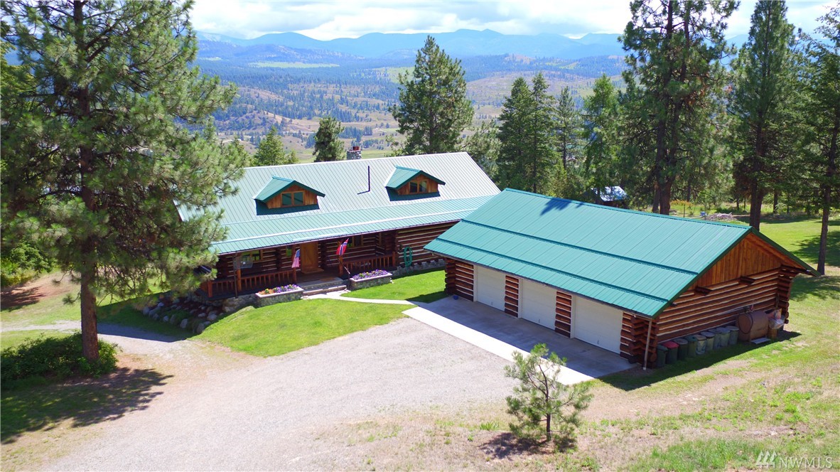 This stunning log home rests on 42 private & heavily wooded ac. that overlook the Curlew Lake Valley & the Kettle Crest Mts. A large stone fireplace is the focal point in the main house. Spacious but still cozy this home offers bedrooms & baths on all 3 levels & incredible storage. The log garage is 30x40 w/cement floor & the shop w/1/2ba ba, has an 1 bdrm apartment. 3-bay open storage w/RV parking. 2 large fenced gardens and small greenhouse. Please see the attached addition information.