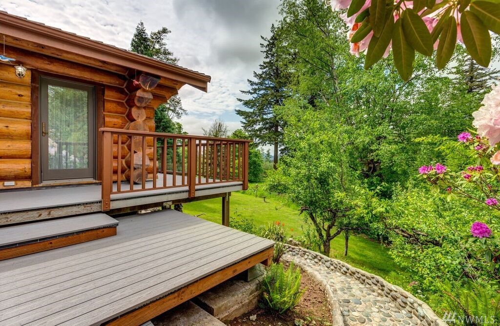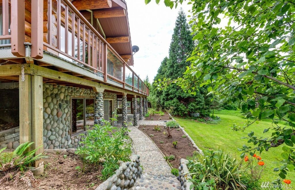 One of a kind retreat on 5 acres. 1st time on market, lovingly maintained True Log home, privately located end of a recently paved long driveway, boasts 3 bedrooms, 2.75 baths, daylight basement, great rm w/lovely view, radiant heat. Natural river rock showcased on fireplace, kitchen island, outside along garden walls, stairs to backyard & columns supporting deck. Mature fruit trees, garden space, lrg garage w/built-ins, outbuilding, newer trex deck. Adjacent 5 acre parcel may also be available.