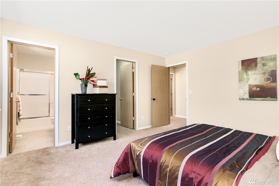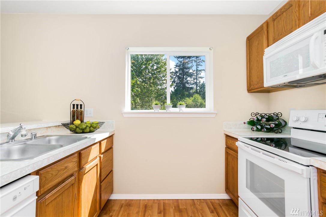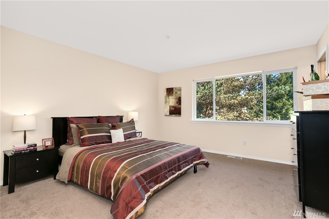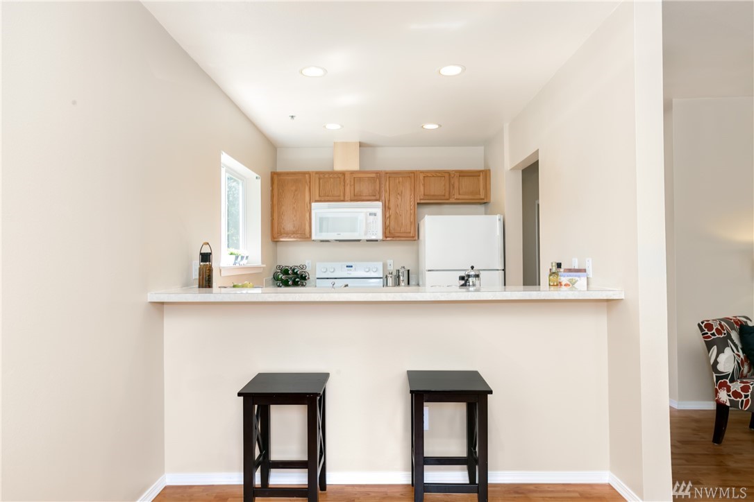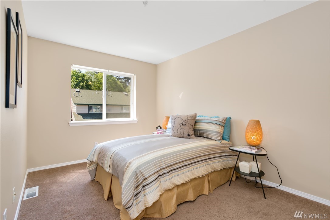 Situated at the end of this quiet, well maintained community you'll find this lovely 3-bedroom end unit w/ no neighbors to the east & tons of guest parking nearby. Three bedrooms, 2 baths & laundry room upstairs with warm & welcoming dayrooms downstairs. Master bedroom has attached bath & large walk in closet. Open, cheerful kitchen has extra eating space plus dining room. 1-car attached garage. No rental cap, no pet restrictions. Close to public transportation & easy access to I5. Welcome home!