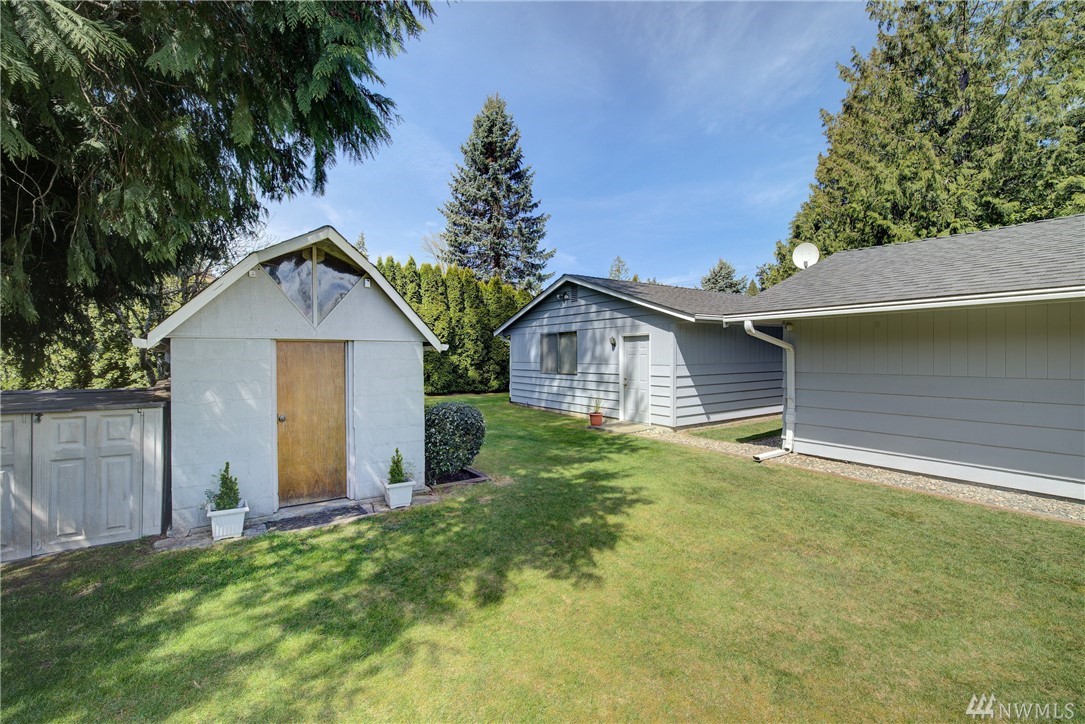 It gets no more perfect than this! The Owners have taken pride in the maintenance of their home inside & out! The almost 1/2 acre property is a "park" ~ so very beautiful & beautifully private. Spacious master bedroom with adjoining 3/4 bath. Additional bedrooms, and bath have separate wing. Entertaining patio capturing views of gardens. The hobbyist will go totally "nuts" over the huge garage/workshop. Additional shed for lawn & garden equipment. This home is special indeed. Enjoy your visit!