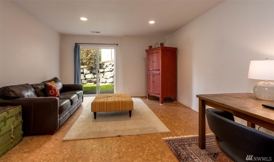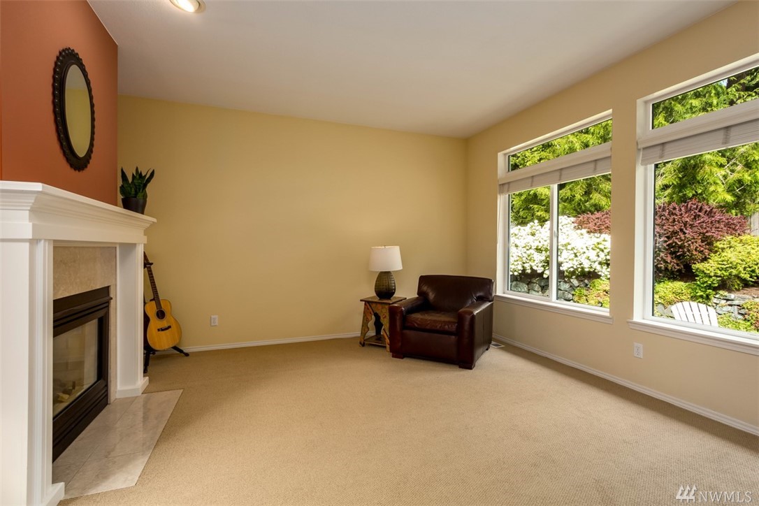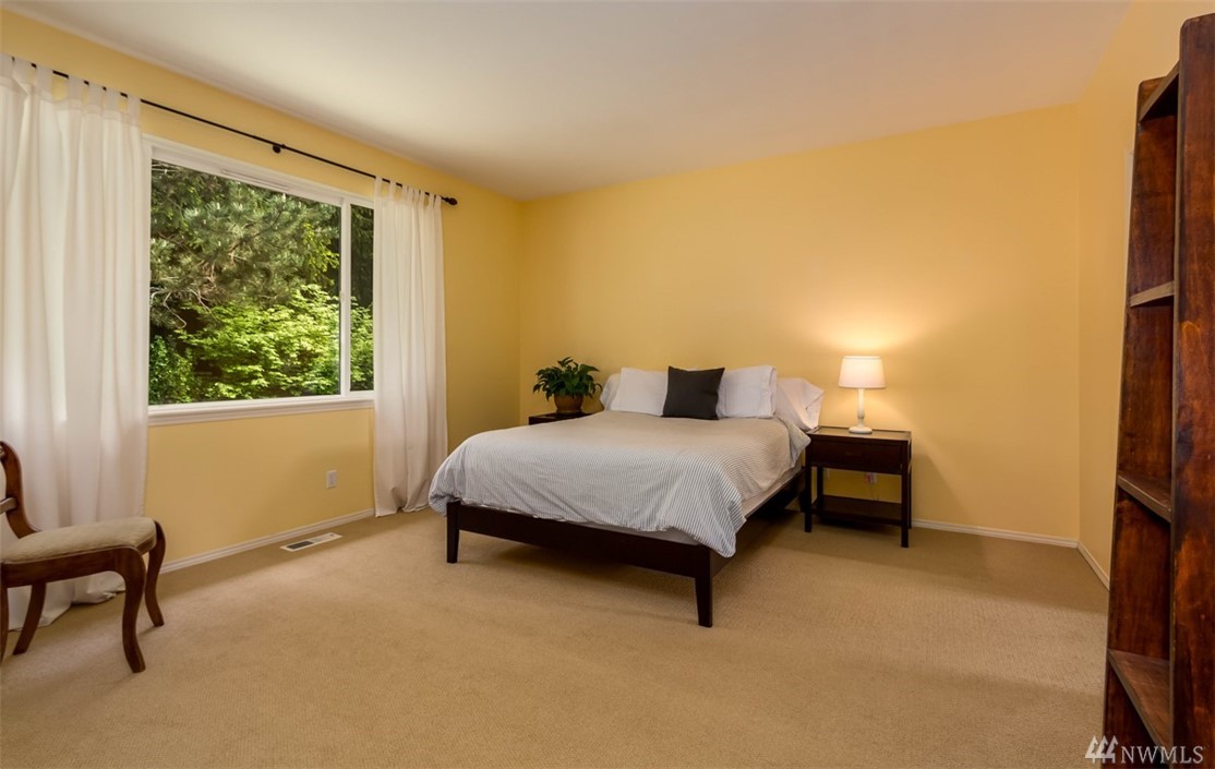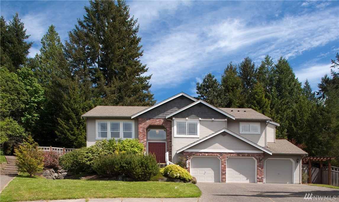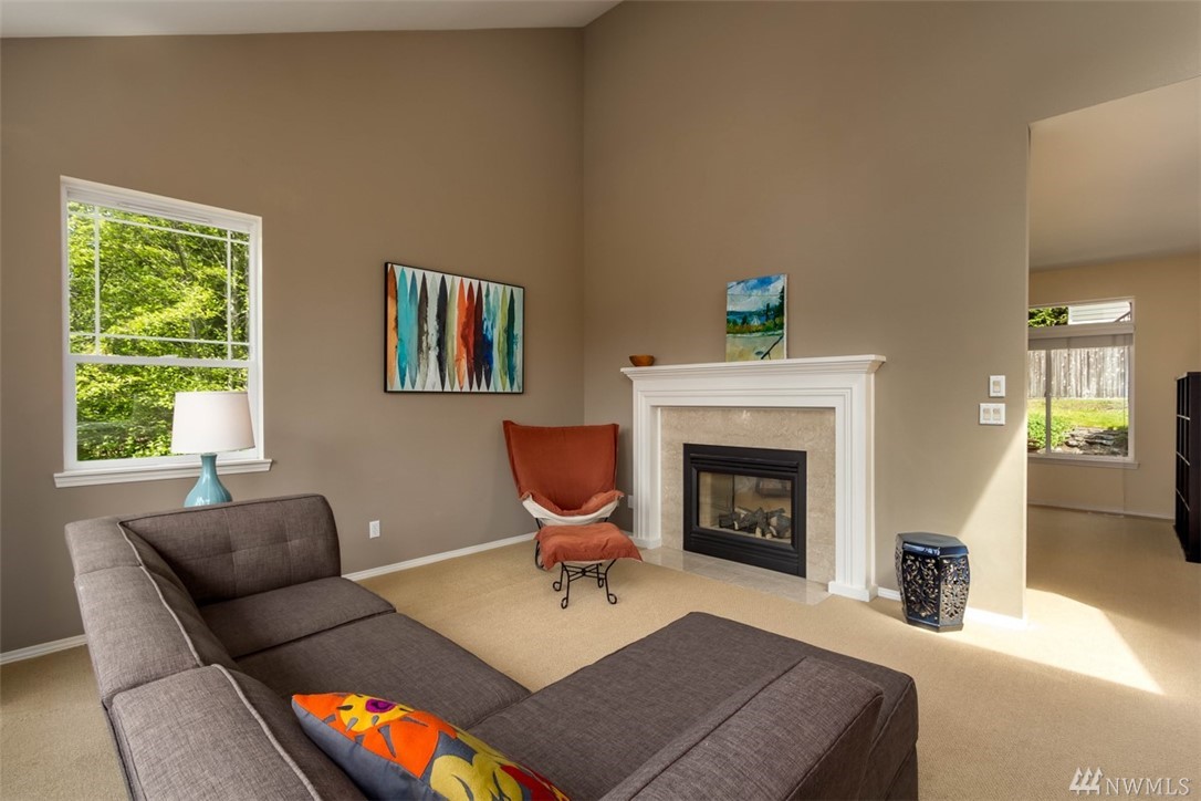 Fantastic home in wonderful Commodore West neighborhood is everything you're looking for. Remarkable amount of space & sunlight, easy flow 3 bed+ den floor plan, 3 car garage & treetop western orientation. Family room off kitchen with double-sided gas fireplace, 16-foot vaulted ceiling and master suite on main. Downstairs has office, two bedrooms, laundry center & full bathroom. Close proximity to ferry, schools and parks. Fully fenced yard completes it all with patio, raspberries & fruit trees.