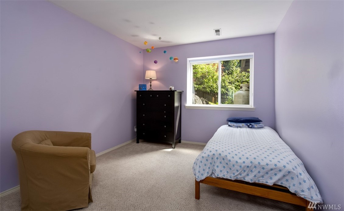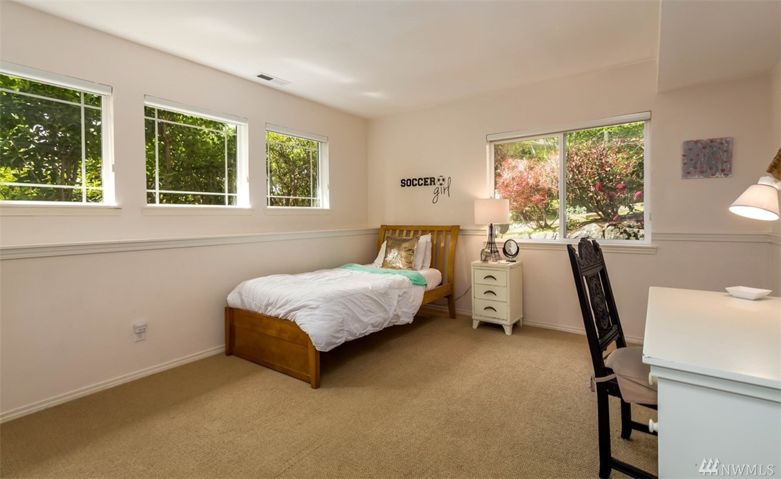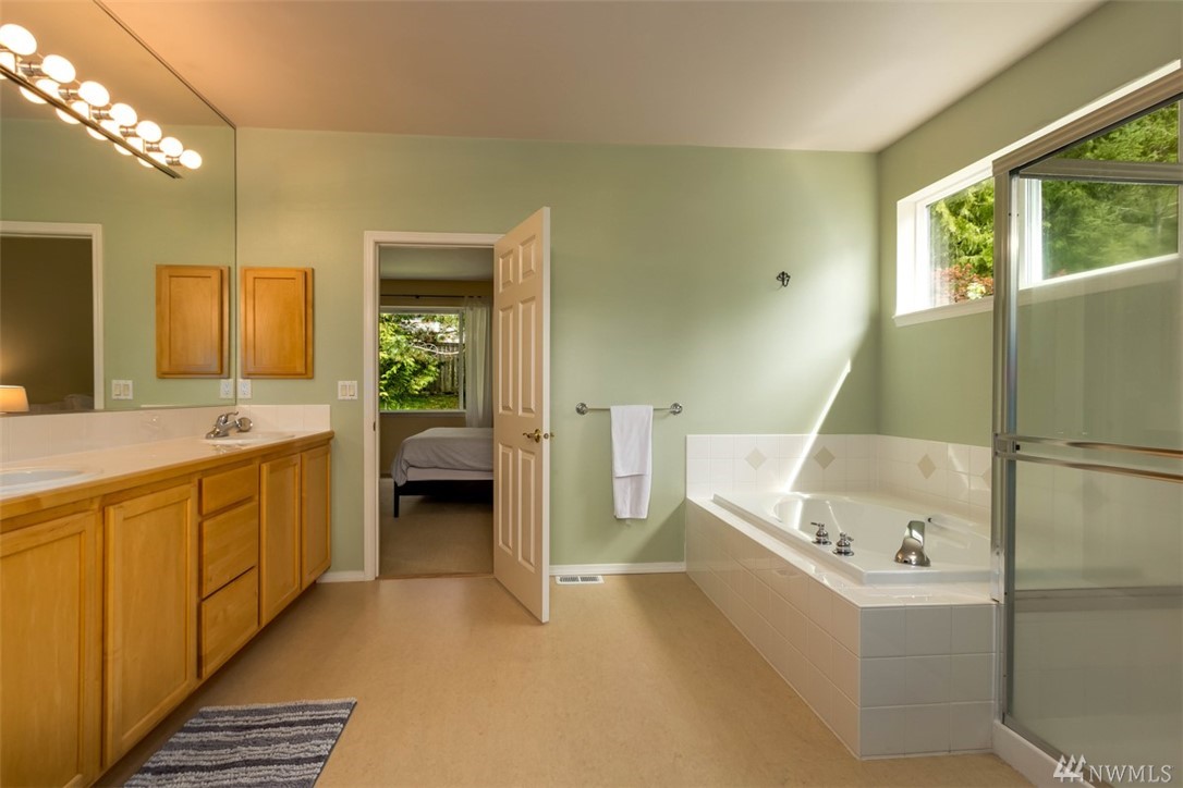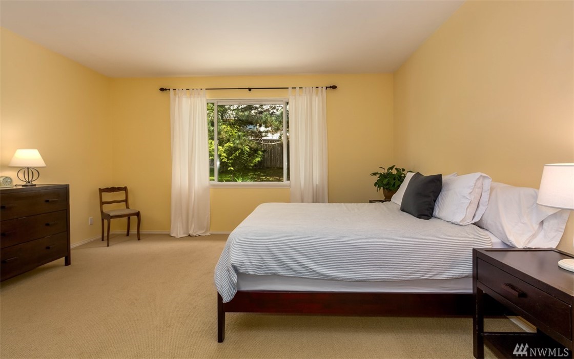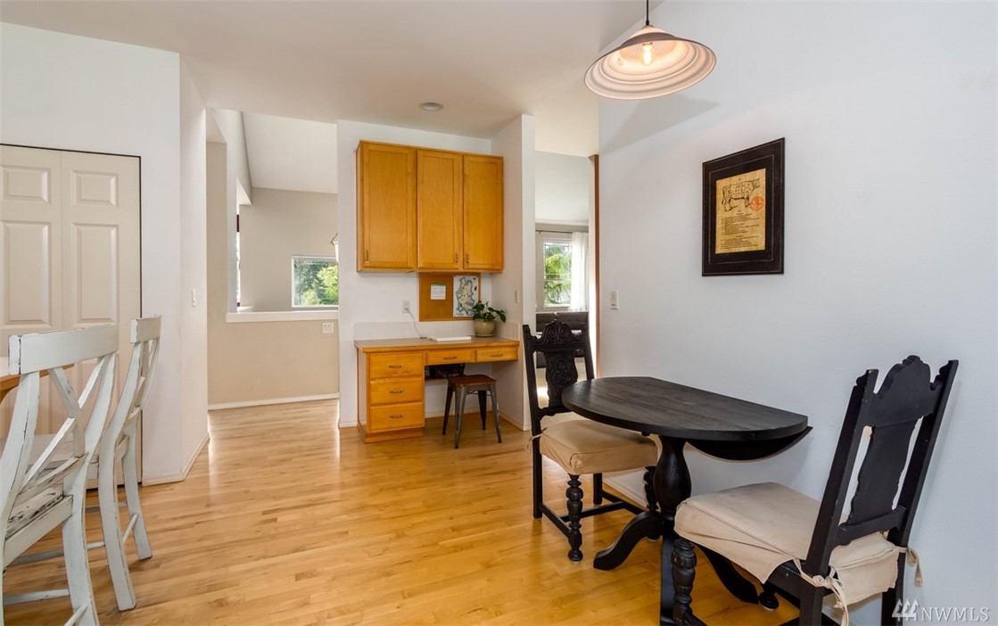 Fantastic home in wonderful Commodore West neighborhood is everything you're looking for. Remarkable amount of space & sunlight, easy flow 3 bed+ den floor plan, 3 car garage & treetop western orientation. Family room off kitchen with double-sided gas fireplace, 16-foot vaulted ceiling and master suite on main. Downstairs has office, two bedrooms, laundry center & full bathroom. Close proximity to ferry, schools and parks. Fully fenced yard completes it all with patio, raspberries & fruit trees.