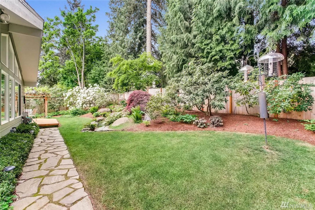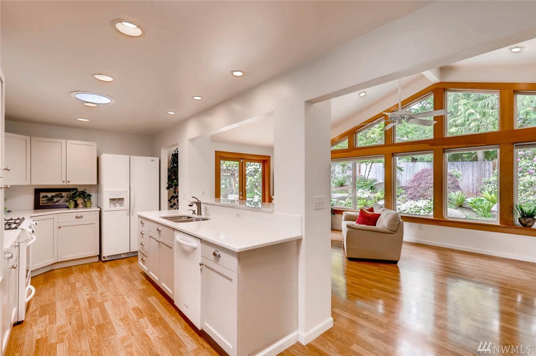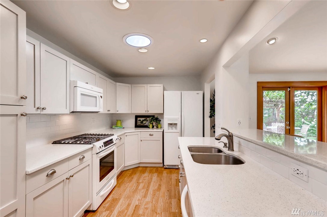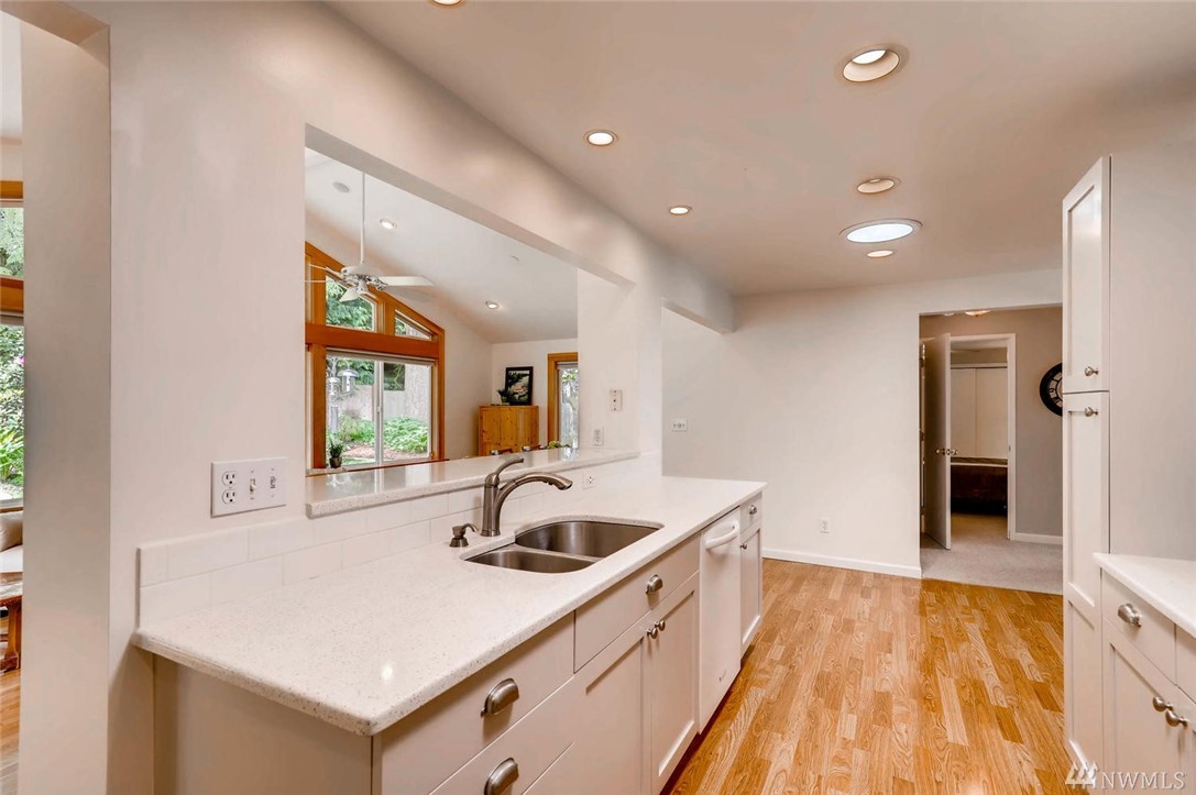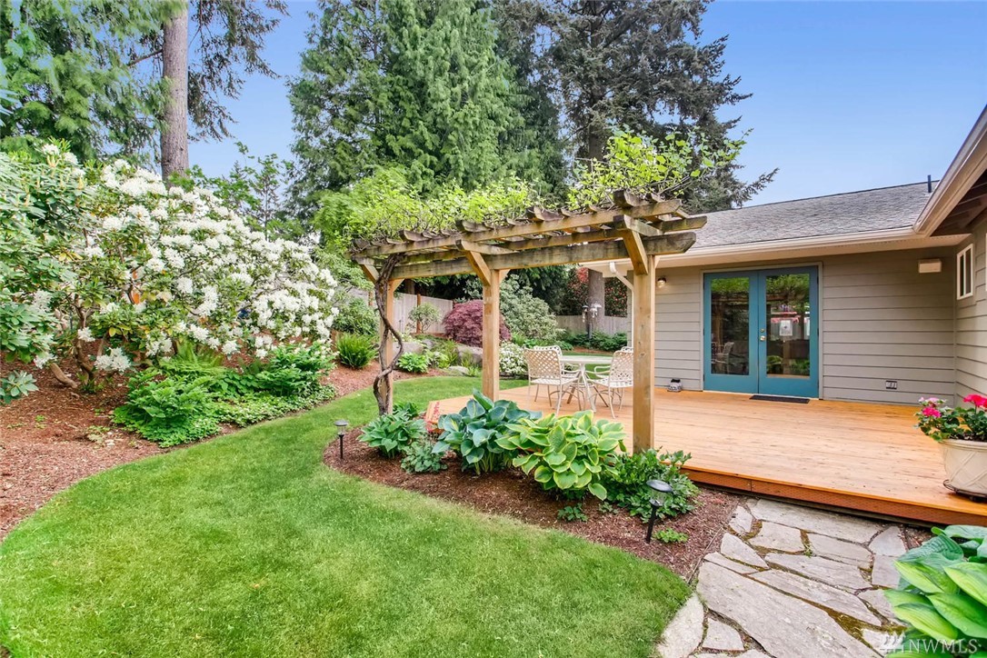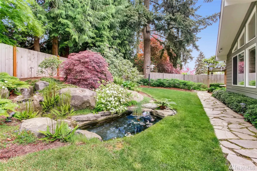 Wow - remodeled one level with Great Room addition - soaring ceilings, wall of windows, bright kitchen with light cabinetry & quartz counters, French doors to private large low deck. This is a must see! Gorgeous grounds by Alan Kubota including a fish pond & waterfall - EZ to convert to a sandbox. 2 master suites - perfect for guests. One with it's own private patio and checkers or chess board. Newer central air conditioning too! Hardwoods under carpet in original portion of the home! 2 gas FP