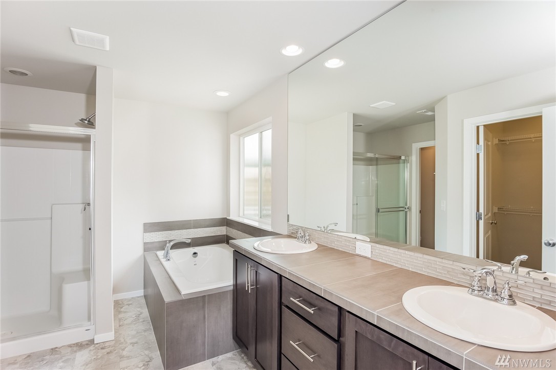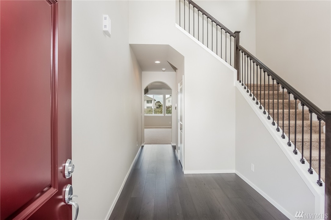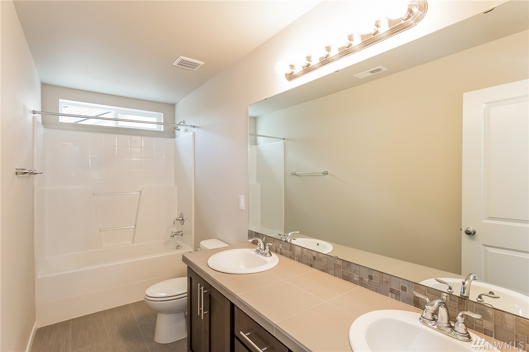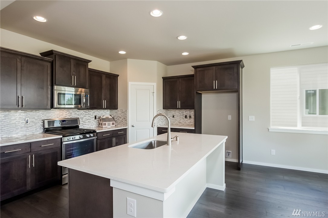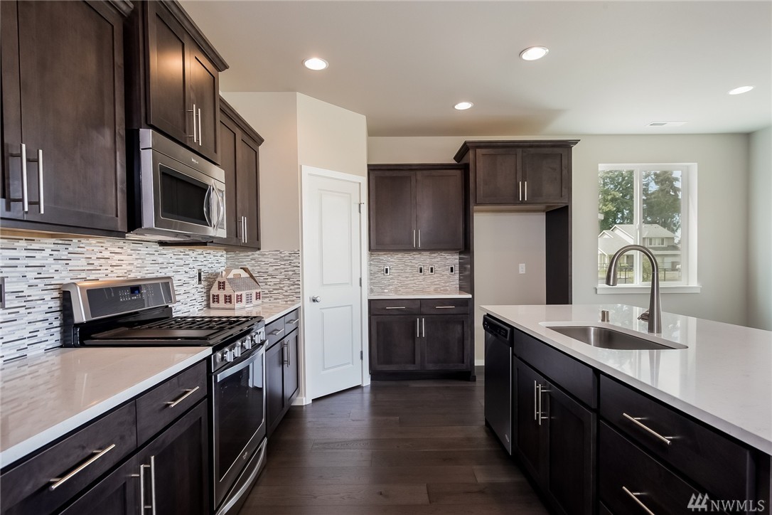 This floorplan has 4 bedrooms + main floor den and 2.5 baths. The spacious great room with hardwood floors and gas fireplace opens up to the gourmet kitchen which features quartz countertops, full height tile backsplash, stainless steel appliances, and separate eating area with bay window. Convenient upstairs utility room. Master bedroom with vaulted ceilings and private 5 piece bath. White painted millwork, front & rear landscaping, and more also included!