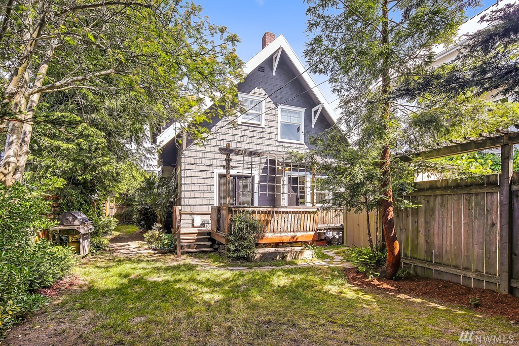 LIVE & LOVE the salt water DREAM~ Beautiful storybook 1914 Alki Craftsman awaits! Welcoming covered front porch, spacious & chic, light filled living & dining rooms. Soaring 9 ft+ ceilings, handsome fireplace, mostly new windows. FOUR bedrooms up! Excellent storage. Fully fenced yard-- incredible gardens! Nice deck off kitchen. 2 car off alley parking. Super SPECIAL home across from playfield & playgrounds, steps to sandy beach,bike path, coffee, restaurants, water taxi free shuttle, ice cream!