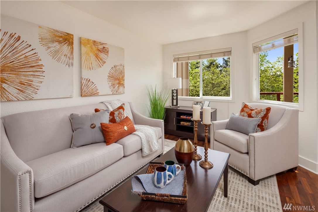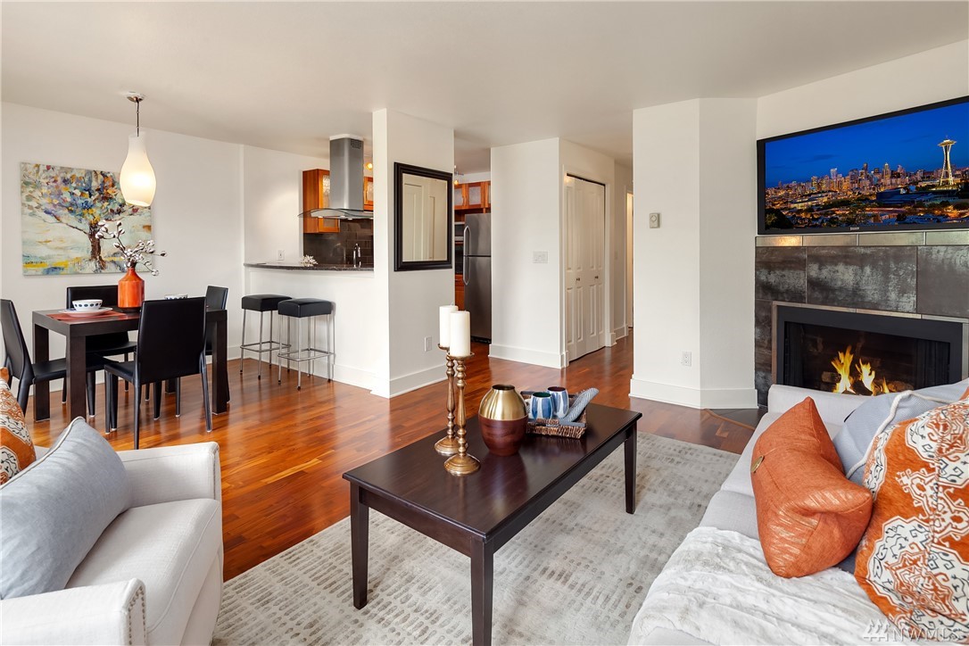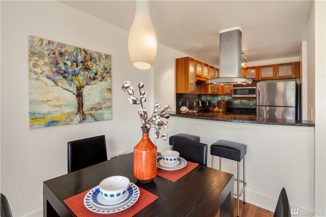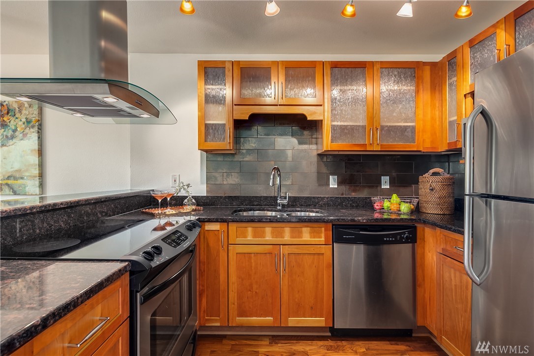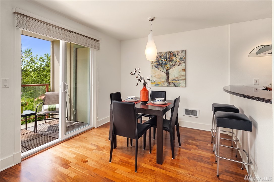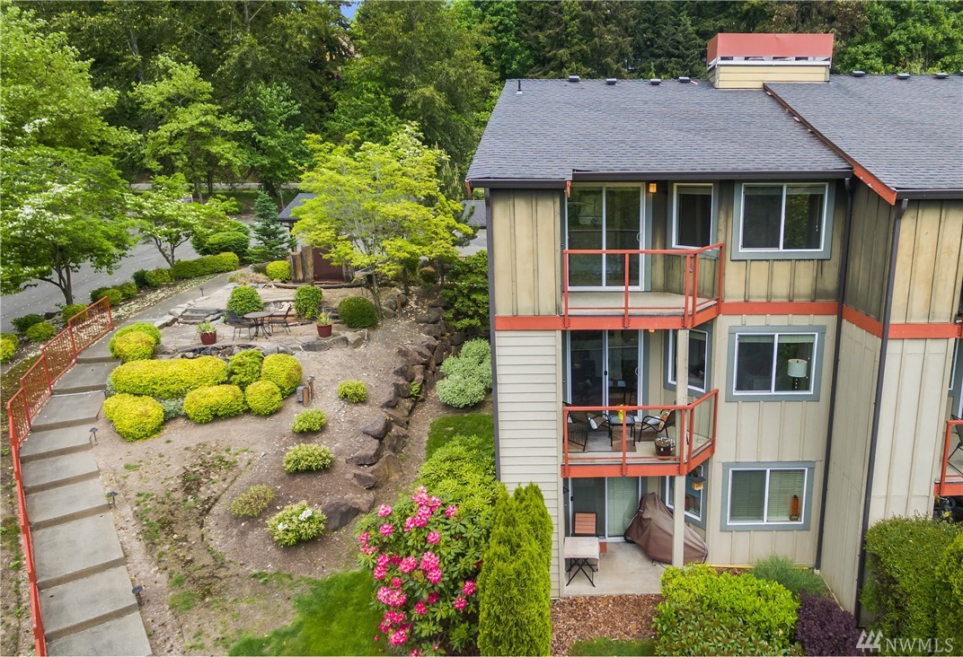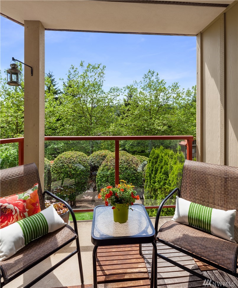 Fantastic one level, end unit condo in quiet complex. Desirable open layout offers great room with fireplace & casual dining that opens to covered deck to enjoy rain or shine! Beautiful kitchen w/stainless appliances, granite counters & eating bar. Perfectly positioned on the main level...no stairs & just steps to Cross Kirkland Corridor for biking/walking. Lovely hardwoods, new paint & washer/dryer included! Easy commute to downtown Bellevue, Kirkland & freeways. Covered parking. Pets welcome!
