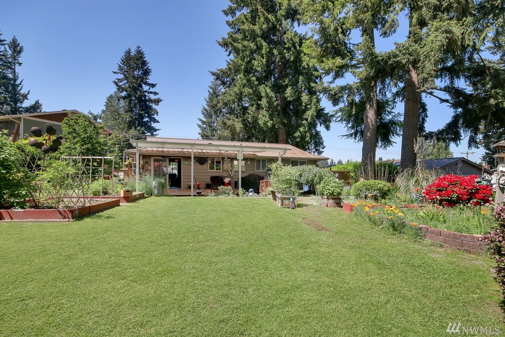 Welcome home to this adorable RAMBLER! This house is move in ready with 3 bedrooms and a fabulous recently updated bathroom w/large shower. Enjoy the zen backyard w/amazing covered patio, 2 sheds, green house, plenty of gardening space, above ground pool, and lots of grass to run and play! Plus RV/boat Parking! With this home comes access to beautiful Lake Tapps with your own private community park, just a short walk away! Hurry, this wont last long! Low maintenance metal siding & metal roofing!