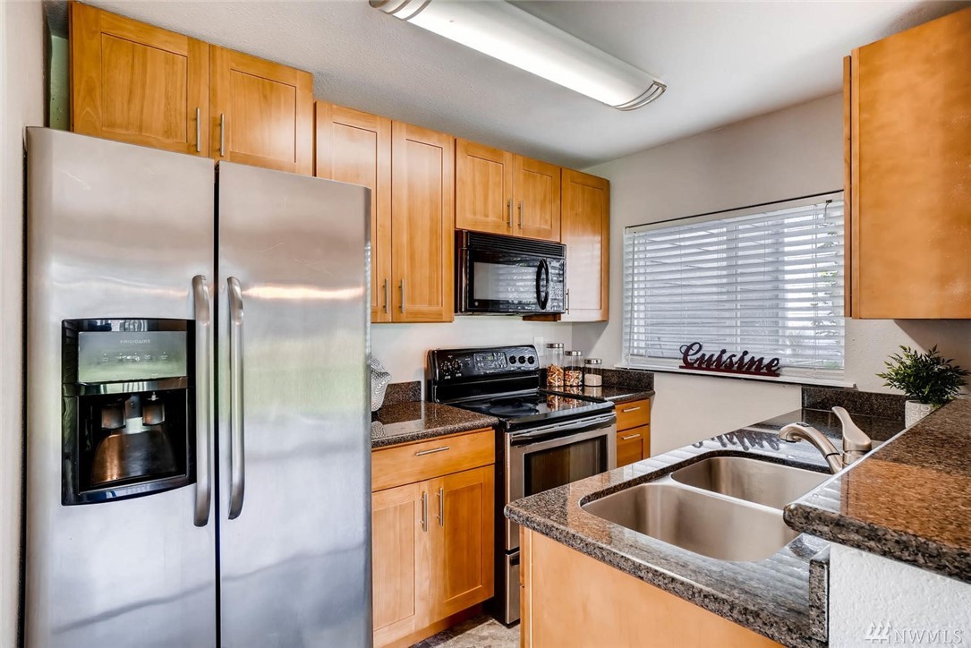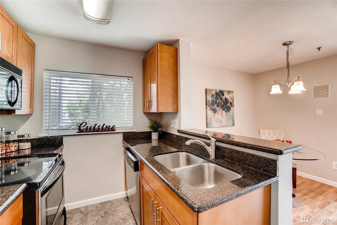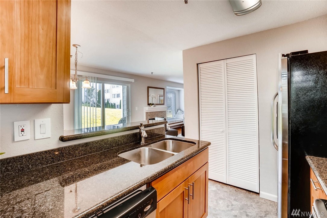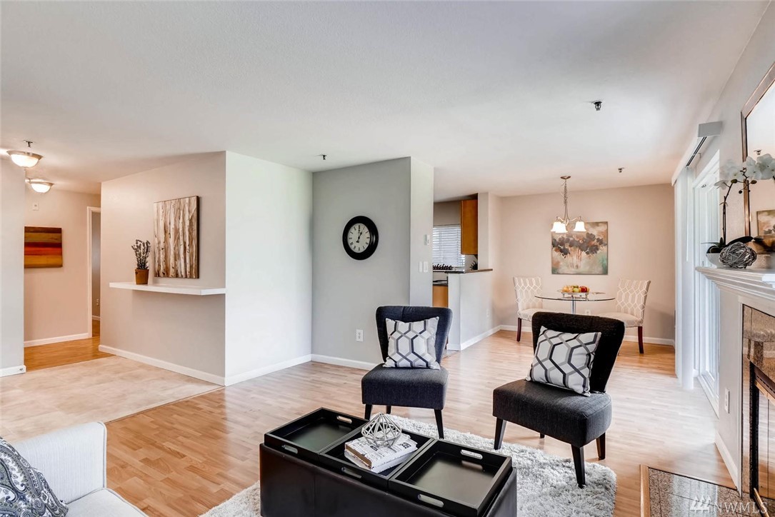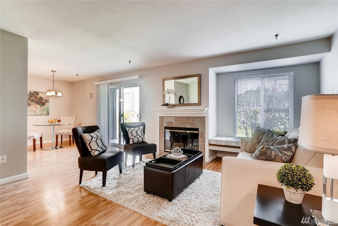 This rare 3 bed 2 bath Juanita Country Club ground floor unit with 2 covered parking spaces has a spacious living room with wood-burning fireplace, updated kitchen with granite counter tops, and an open lawn area off patio perfect for entertaining. Storage closet off patio. Condo complex has new siding, roofs, windows, sliders, metal deck railings and exterior paint. Pool, clubhouse, hot tub, sauna, racquetball, & fitness center. On bus line & minutes to I-405, downtown Kirkland and Totem Lake.
