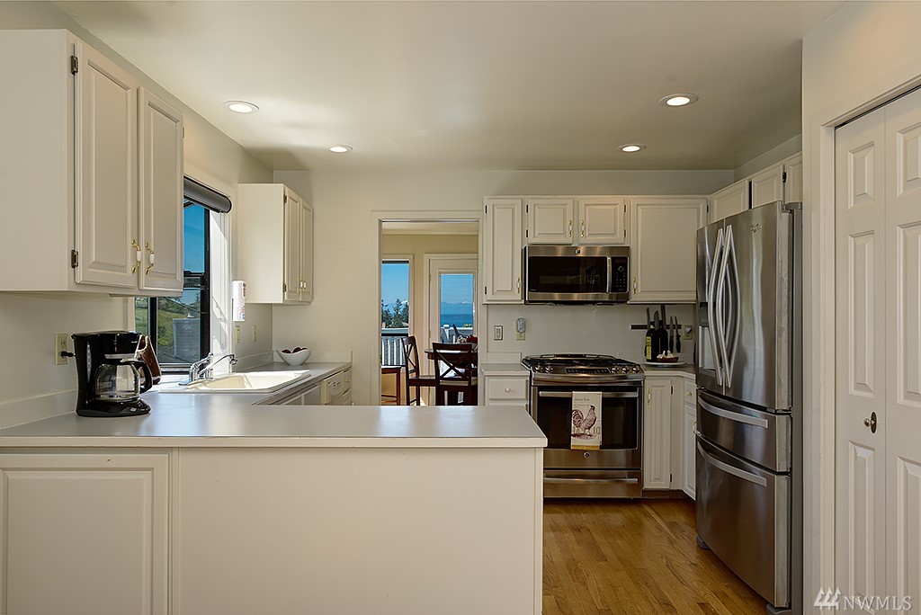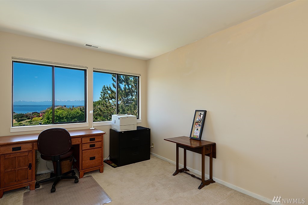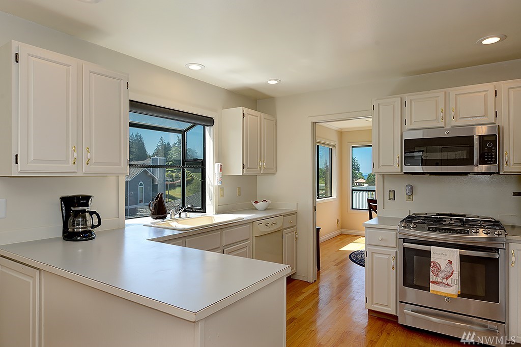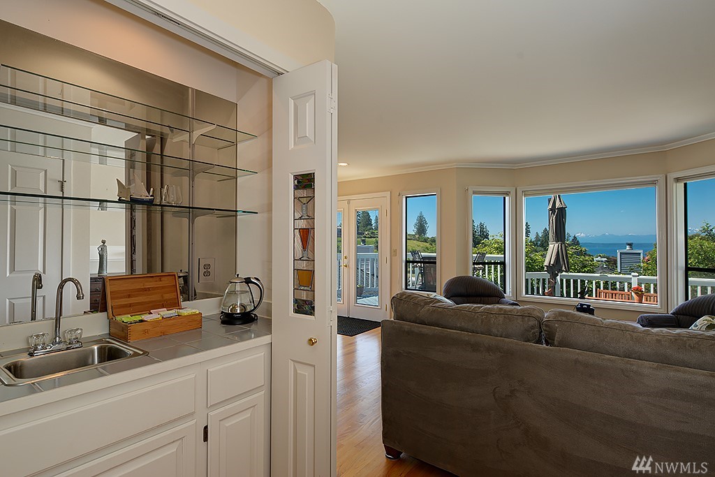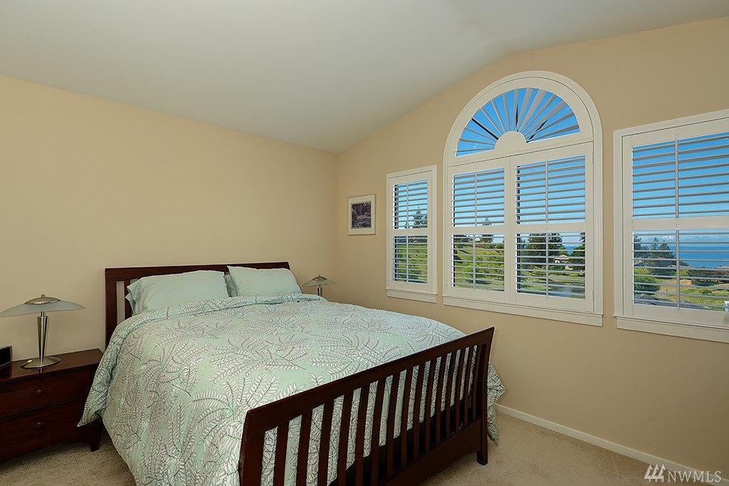 Nestled among million dollar homes, this lovely 2-story condo home offers big views of Puget Sound & Olympic Mtns. It's a stand-alone home w/ a private fenced backyard w/patio, large front view deck, 2-car garage & enjoys a wide side yard. New exterior paint & fence; newer 50-yr roof, gas furnace & H2O tank; new SS gas range & fridge. Main level has circular floor plan w/hardwoods, great views & cozy family room off kitchen. Master suite w/new 5-piece bath, dbl closets, Sound views & bonus nook.