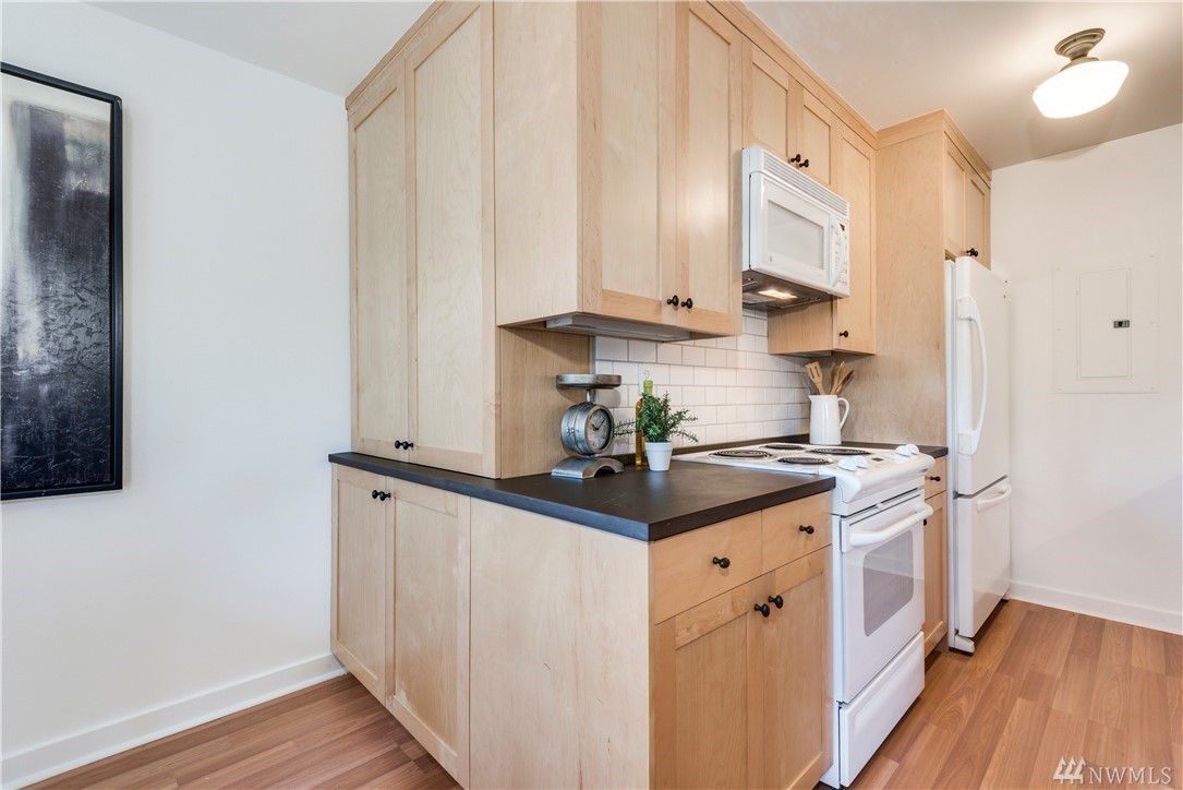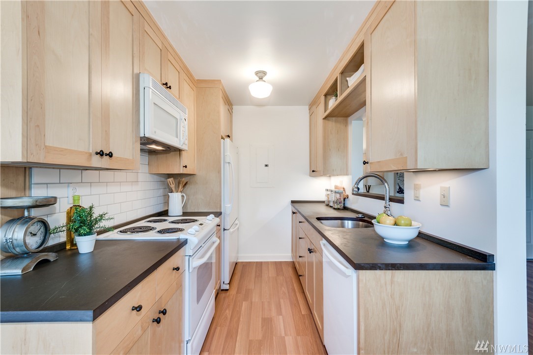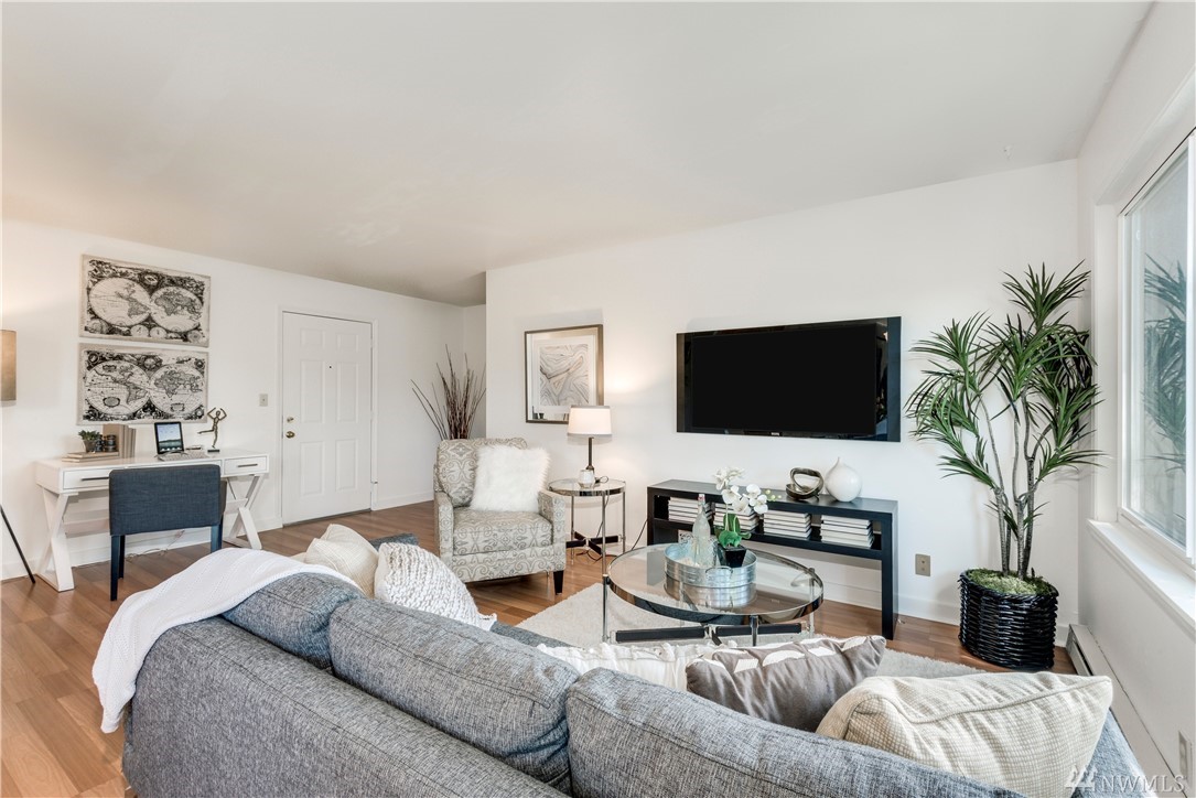 Completely updated TOP FLOOR condo at the Pendleton Miller condos. SOUTH facing and flooded with LIGHT! Live in the middle of it all! Vibrant Capitol Hill on a tree-lined street yet steps away from great restaurants, amazing nightlife, downtown and Amazon. Newer double pane windows, fresh paint, hardwood floors, washer/dryer in unit and low dues. Designated parking, community yard/BBQ, secure storage and bike room. A rare find at this location!