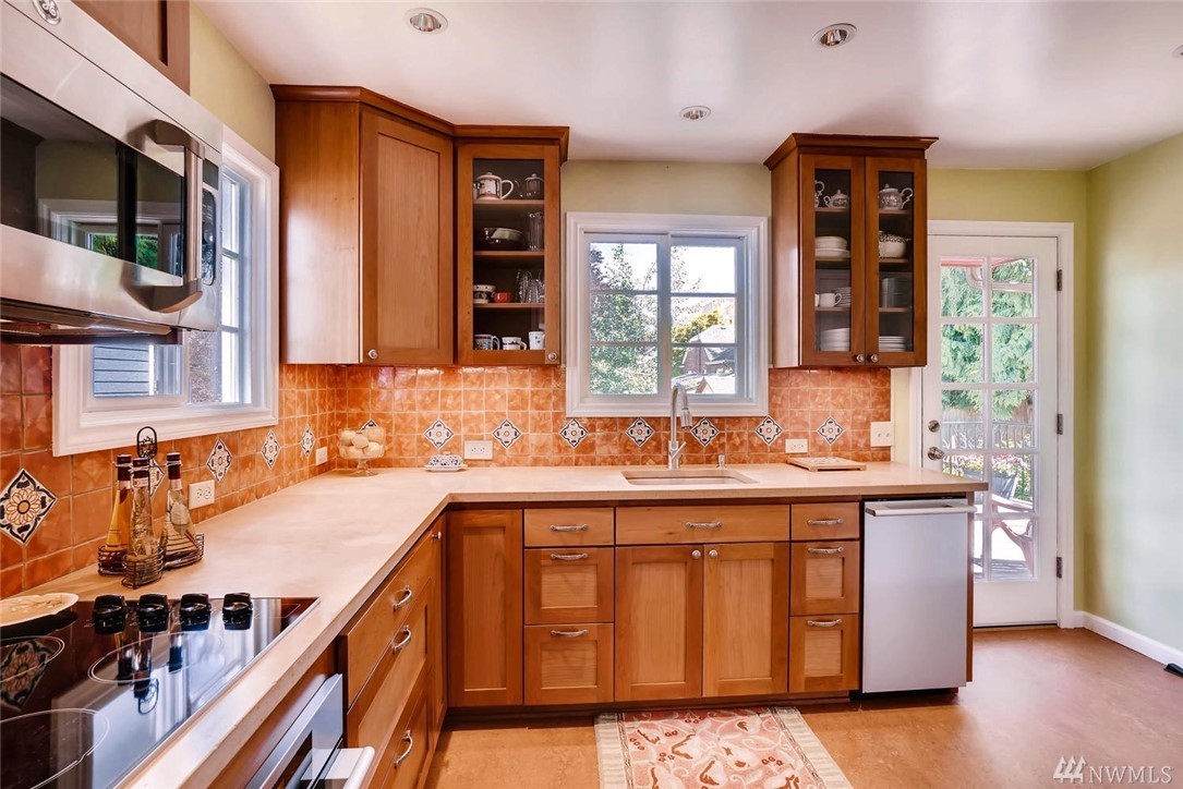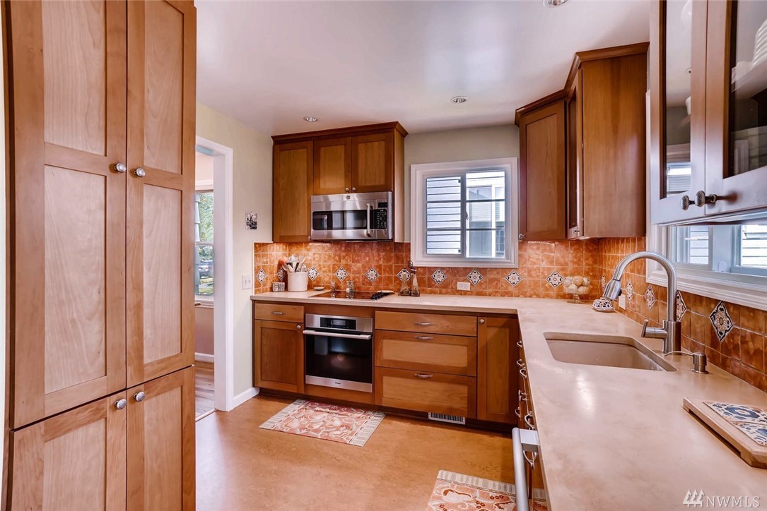 Impeccable traditional charm in the heart of Crown Hill. Original oak floors. Living room features oversize bay window & custom bookcases surrounding cozy gas fireplace. Stylish kitchen remodel features concrete counters, Marmoleum floor & stainless app. 3rd bdrm. & 1/2 bath downstairs. Spacious Azek deck overlooks fantastic backyard w/raised beds, fountain & sweet multi-purpose shed. New windows, on demand hot water, updated plumbing, electric & insulation. Bsmt. garage w/car charging station.