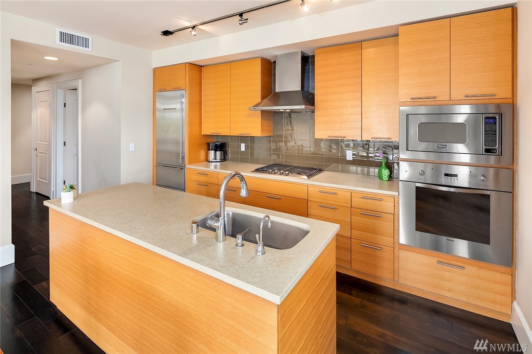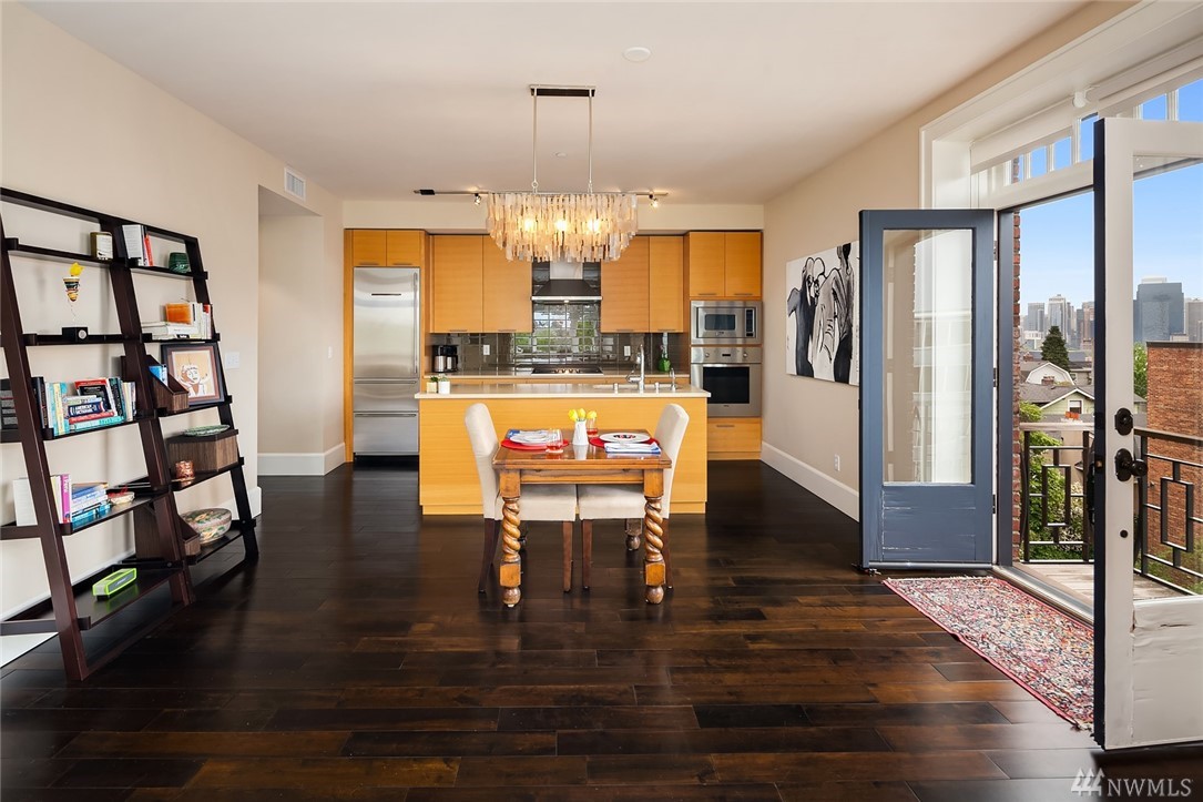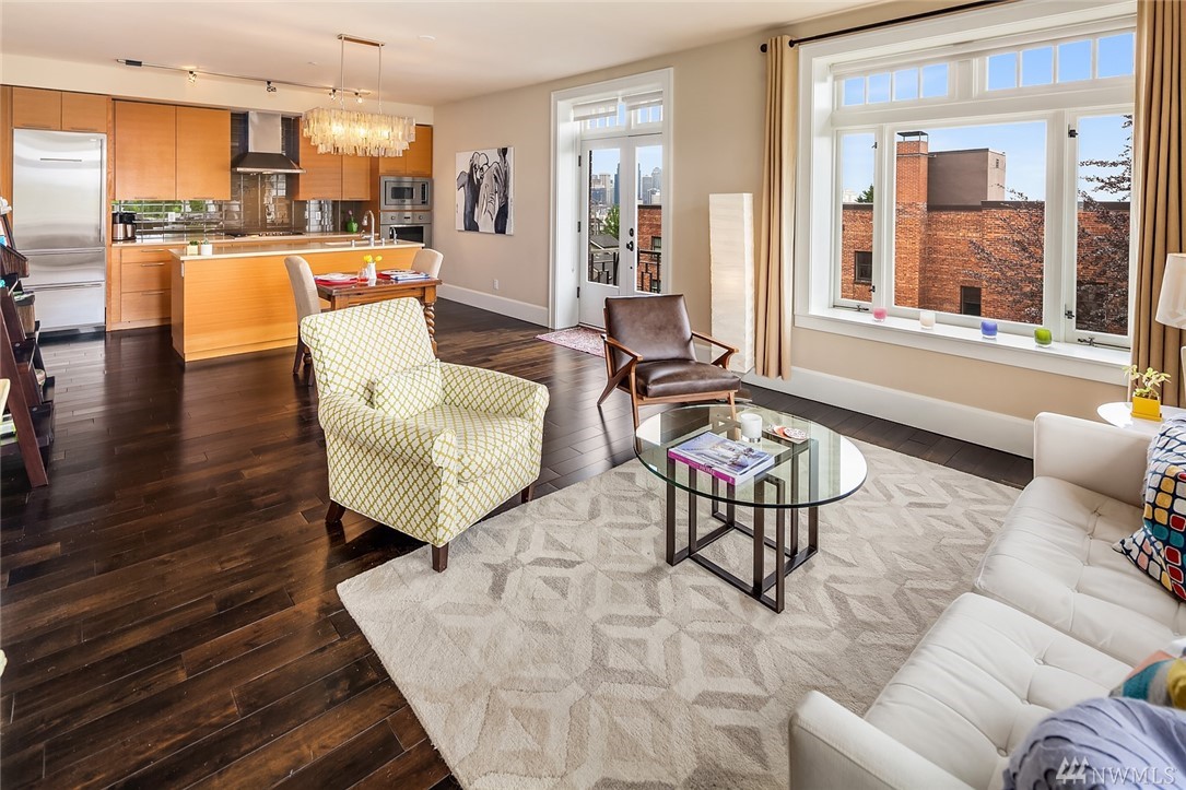Welcome to your in-city oasis! Enjoy sweeping & iconic views of the Seattle skyline/Space Needle. Fully renovated, upper-floor corner unit in the heart of Seattle w/state of the art appliances(Subzero, Bosch, Viking). Stone counters, hardwd floors. French doors to a view balcony. This incredibly spacious 1 bd plus den(use for visiting guests too?) condo has easy access to downtown, Queen Anne, restaurants, shopping, waterfront & Seattle Center. Walk Score of 93! Rental cap not met(easy to rent).