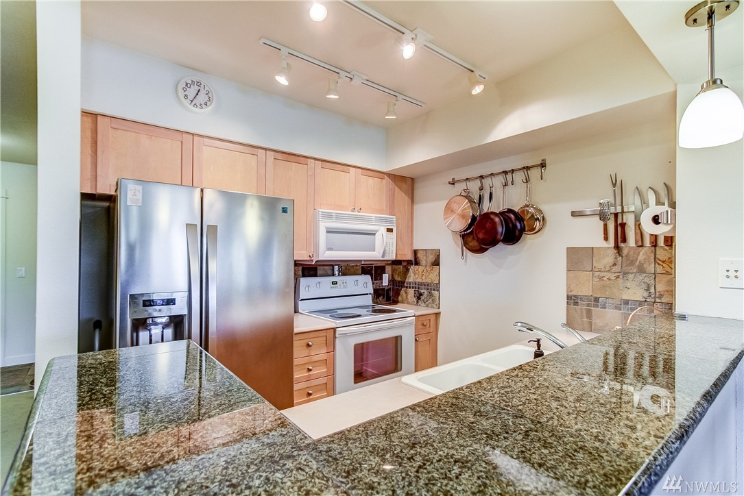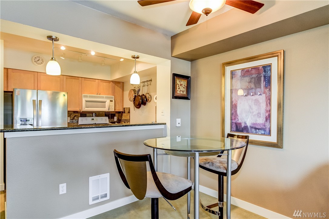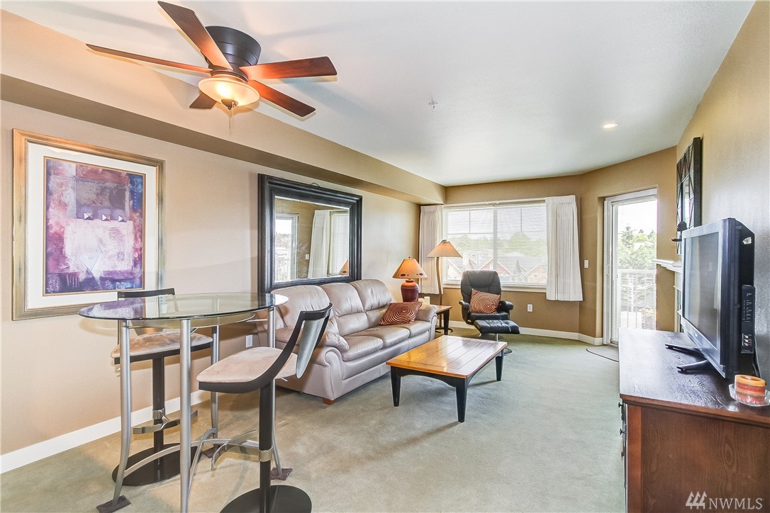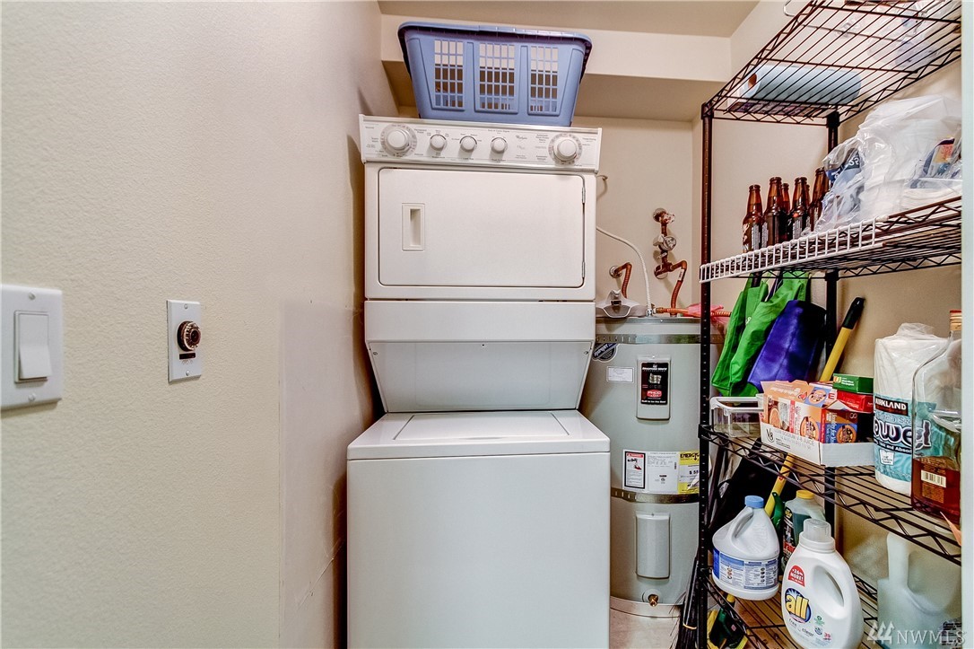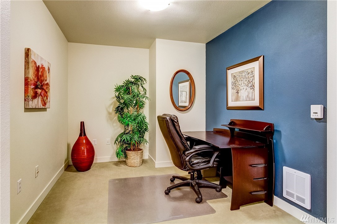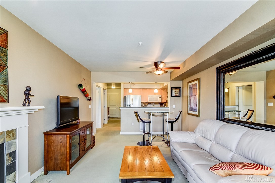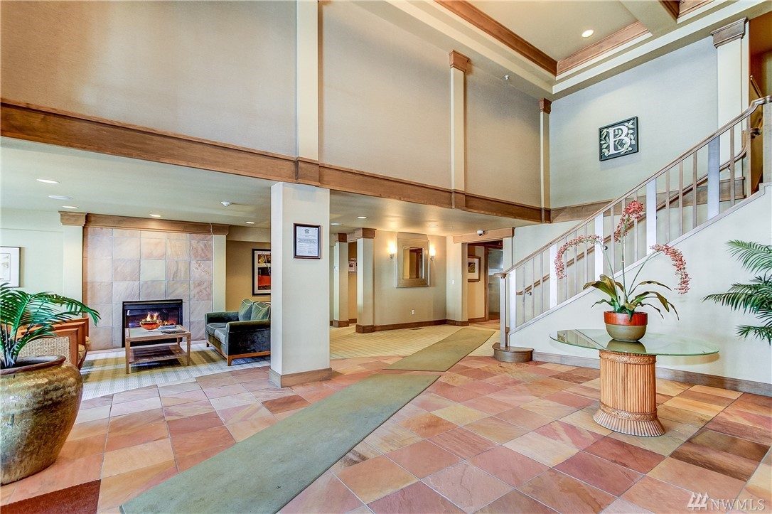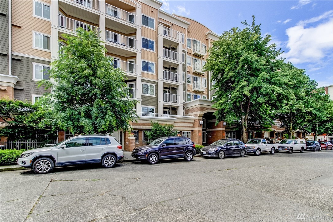 Quintessential Ballard living! This home features a large Den for many uses, an open kitchen / living / dining area w/ fireplace, balcony with great city views, a large bedroom w/ space for a king bed +, a walk-in closet, a utility room with W/D & storage, a bathroom which boasts plenty of storage & a large soaking tub, 1 secured parking, 1 storage unit. Amenities galore! ~ Concierge, 2 Spas, Lounge w/ Kitchen, Business Center, Conf. Room, Gym, Sauna and Roof Top Deck! Super Walkability!!