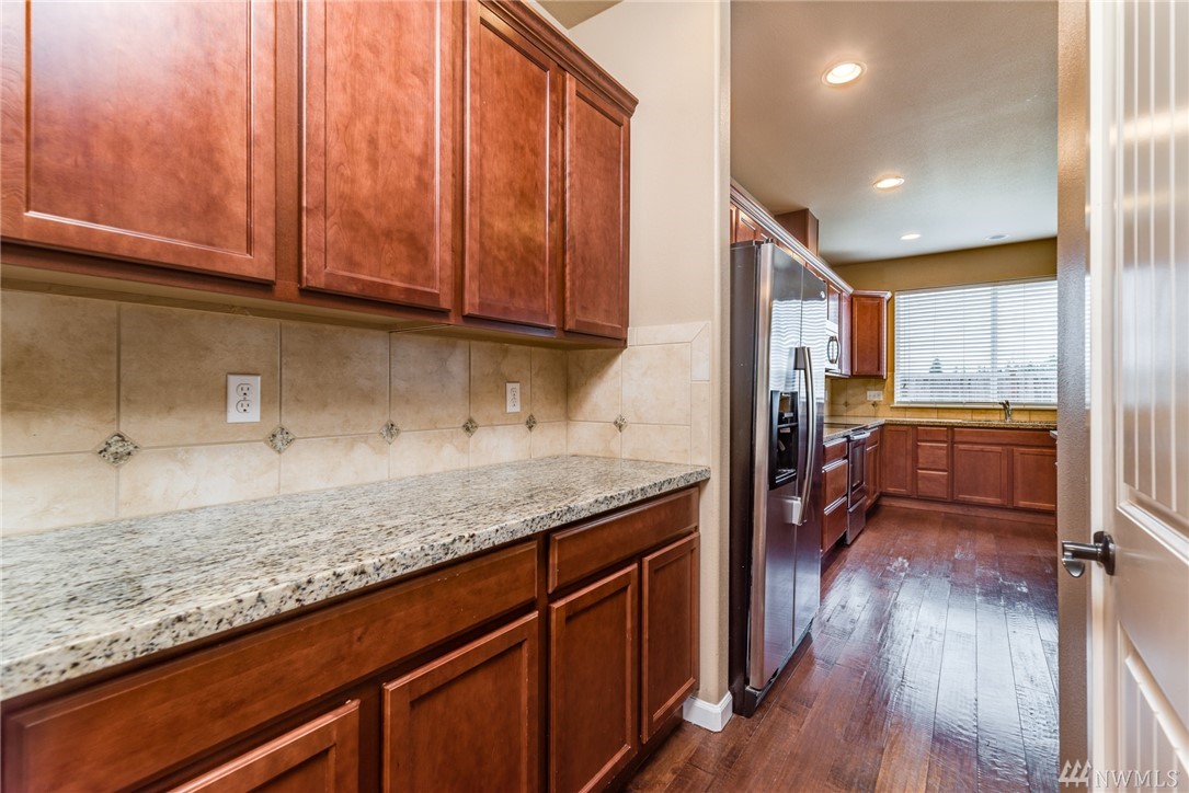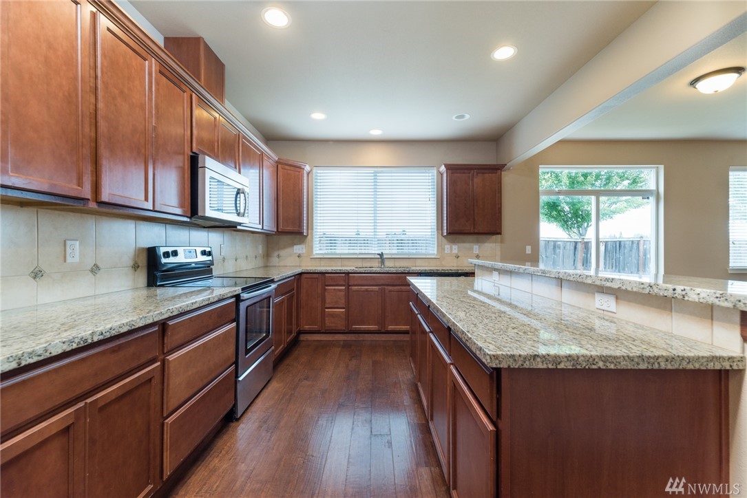 Spacious home in desirable Cherry Meadows neighborhood! Features 3115 sqft with 4 BR, 2.5 baths, expansive hard wood floors, open floor plan, formal dining, bonus loft/media room & great room w/gas fireplace + built-in shelving. Kitchen features Granite slab countertops w/full height tile, butler's bar & walk-in pantry. Master suite w/attached 5 piece bath, fireplace & walk-in closet. Extended front porch, fenced backyard. Great location! Close to schools, shopping, dining, trails, parks & JBLM.