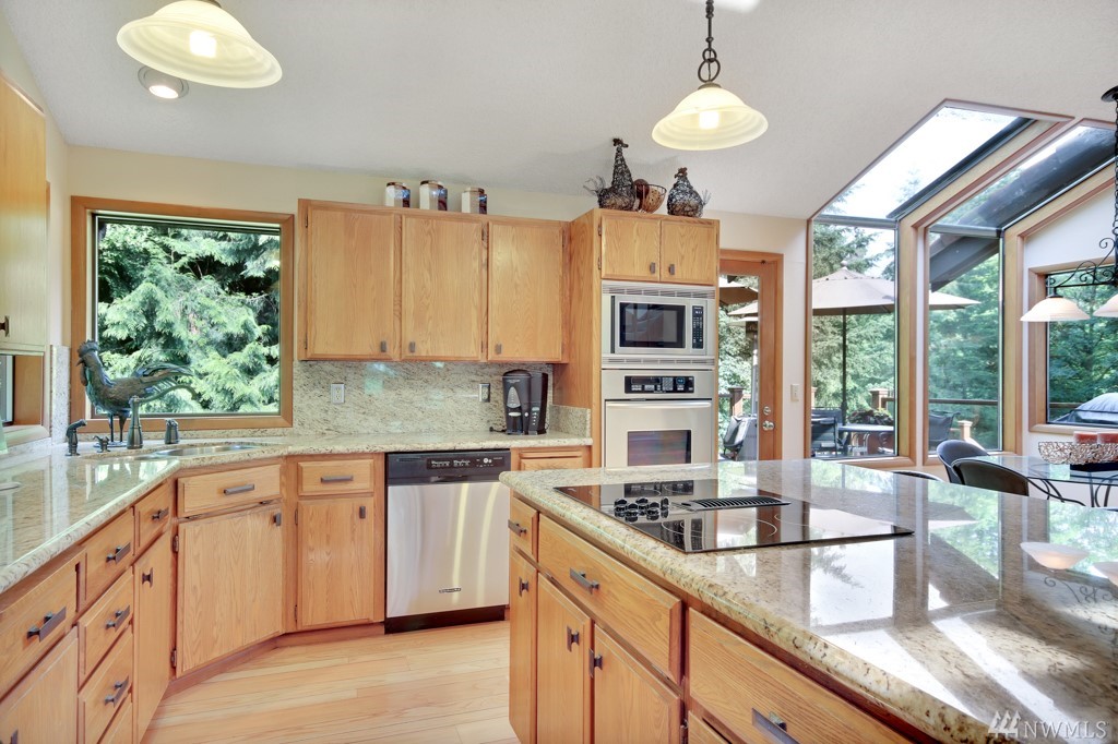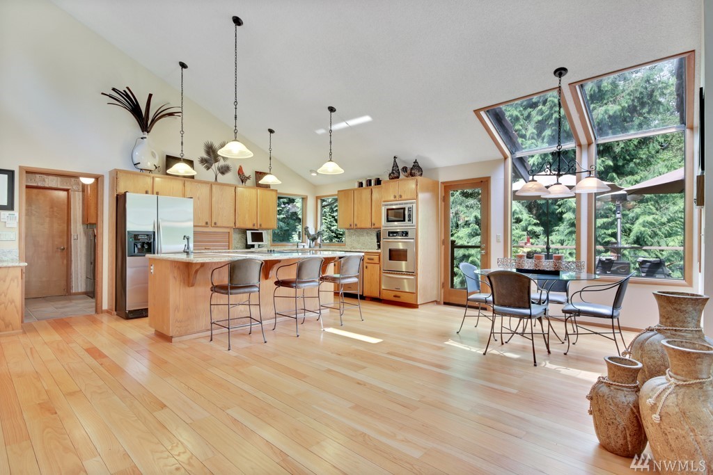 Secluded, sprawling estate! One of a kind, NW custom-built 3-bd home, beautifully landscaped, designed for efficiency & maintenance. Amazing open concept design w/ vaulted ceilings & open access to gourmet kitchen, dining, breakfast nook, lounge, great room, wet bar, staircase & loft. Master w/dbl shower & guest baths recently updated. Magnificent sunroom & built-in sauna off master suite w/ terrestrial views. Daylight basement for rec use. Come see this property to fully appreciate the value.