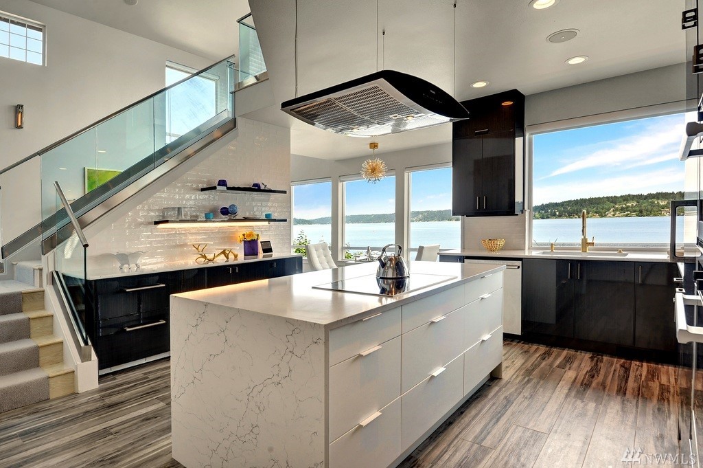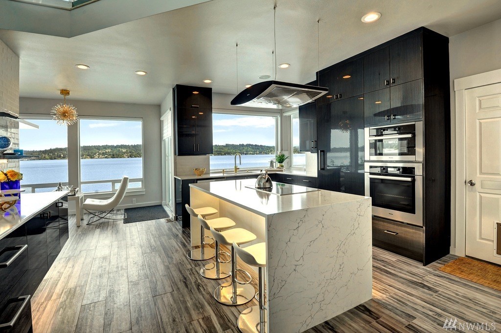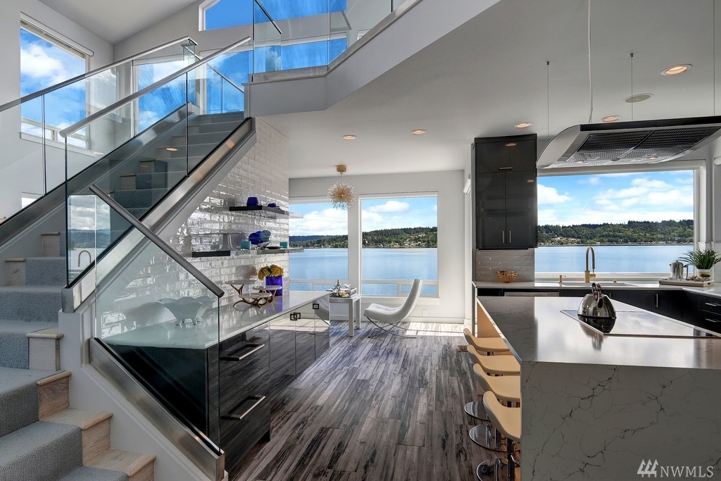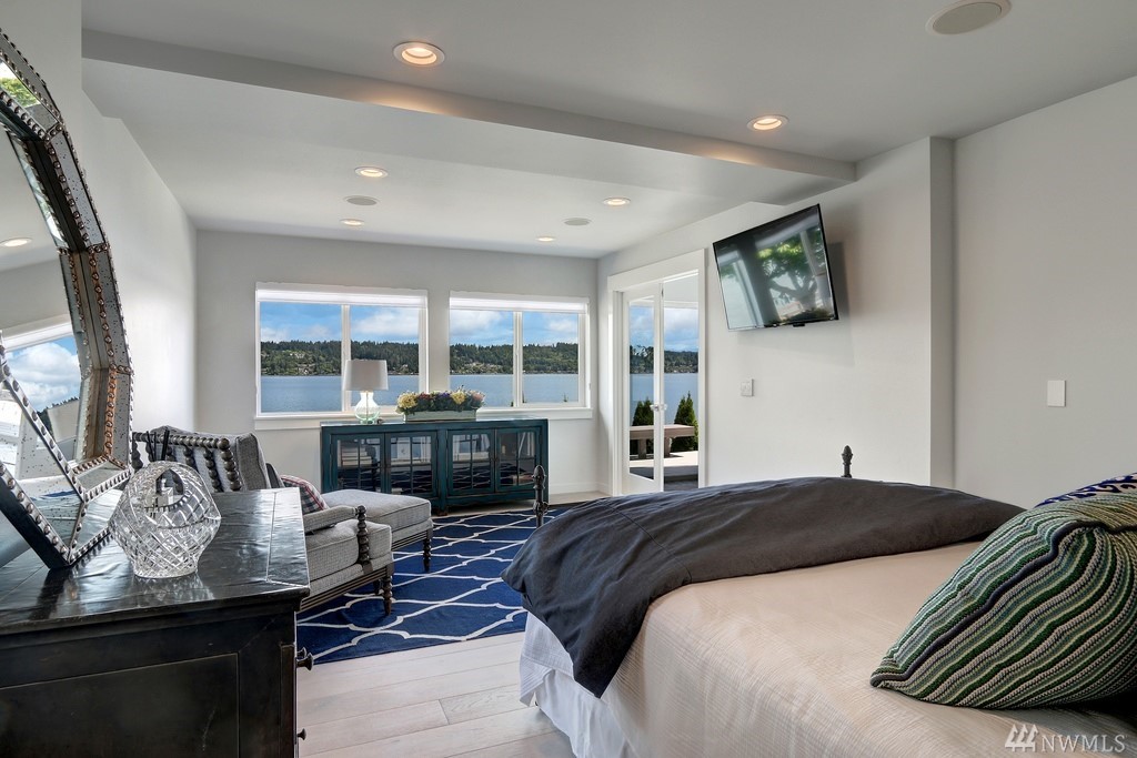 On the water's edge - 80' of waterfront! This stunning luxury renovation boasts walls of windows with an innovated new design. Expansive open spaces with extraordinary water views all around. The all new kitchen is an architectural centerpiece of the home that will wow the most discerning chef. Penthouse like master with private view balcony and a sophisticated spa quality bath. Huge dressing room with it's own w/d. Bedrooms enjoy walk-out level waterfront & party deck, Dock included in price!