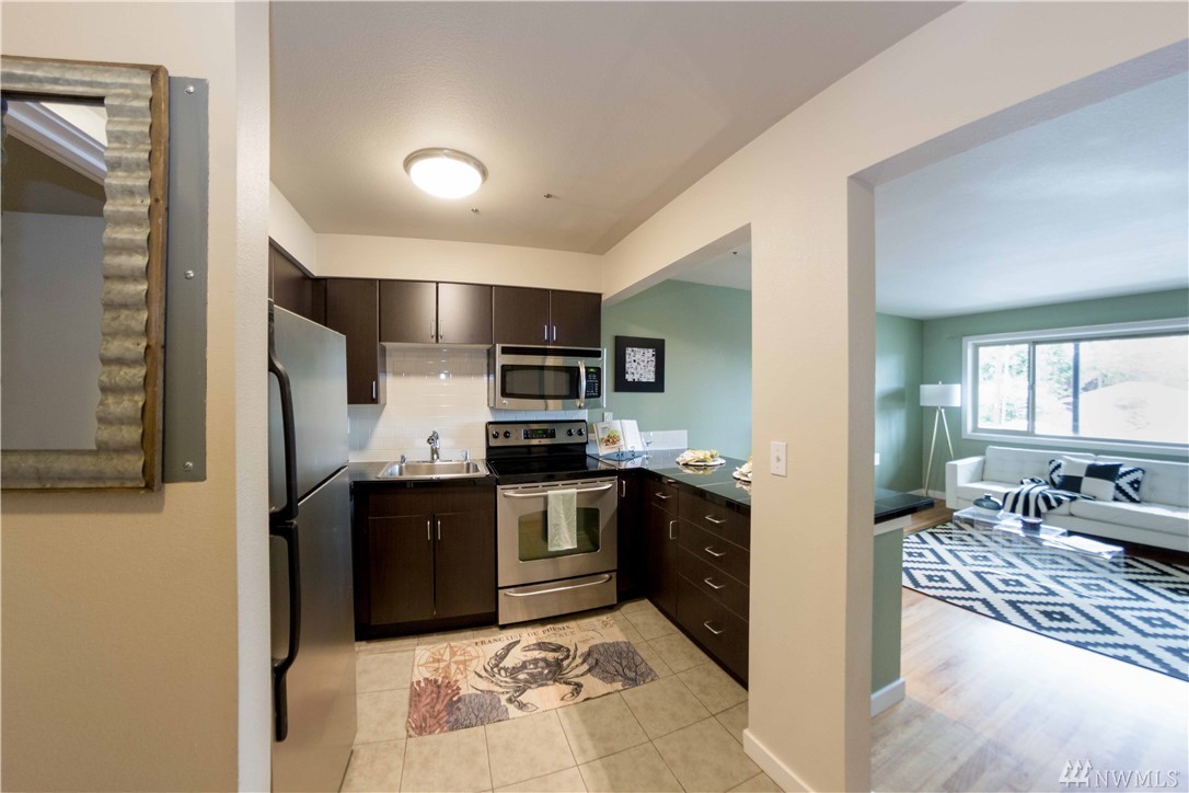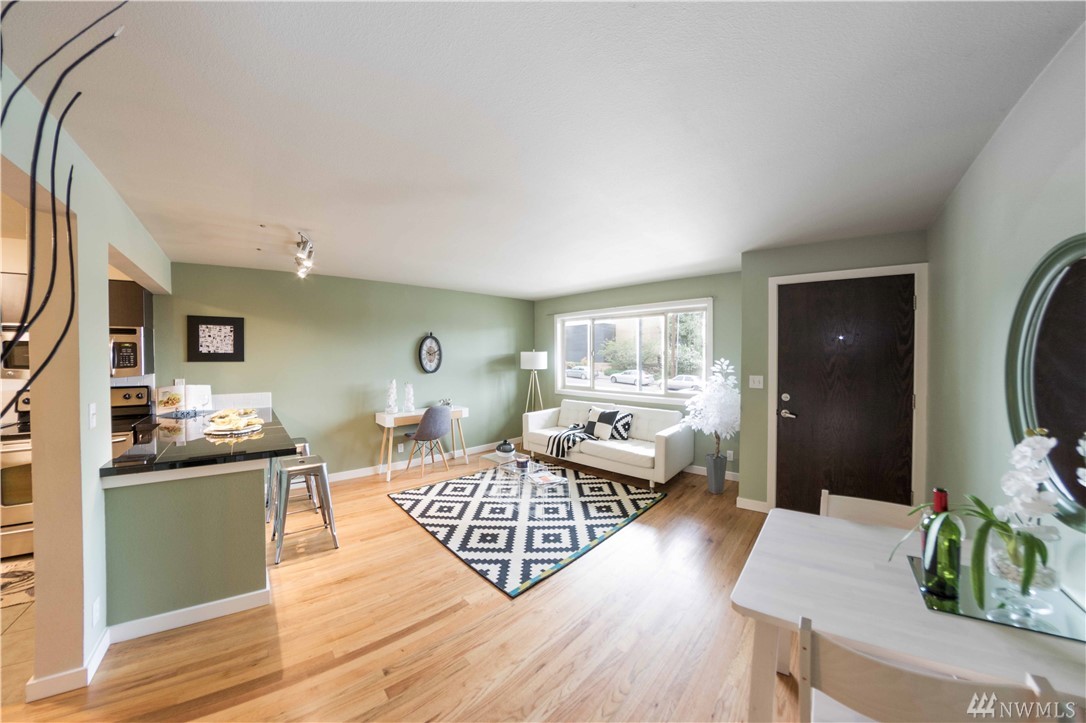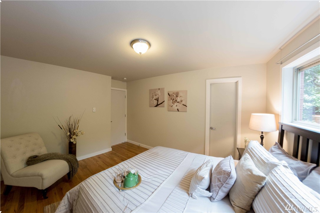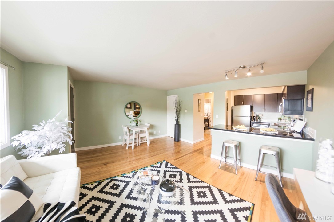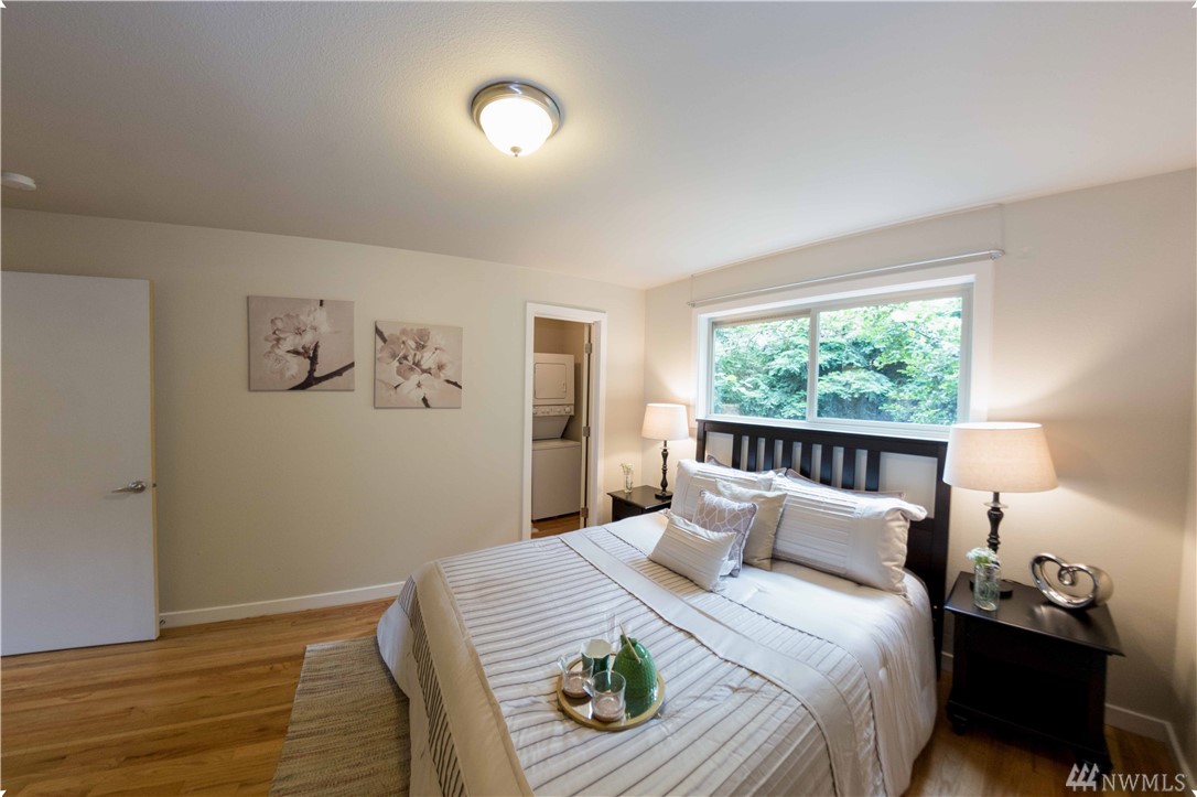 Mid-Century boutique building located next to grocery, restaurants, coffee, pubs, and an express bus to downtown. Updated unit w/ large bedroom, lots of storage (multiple closets), in-suite W/D and walk-in closet. Open living room & eating bar kitchen is perfect for entertaining. Completely renovated w/ new kitchen and bath, granite, SS appliances & real wood floors. Great natural light through oversized picture windows w/ western exposure. Large basement storage & parking space included. Hurry!