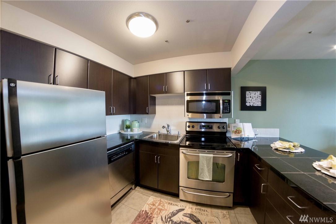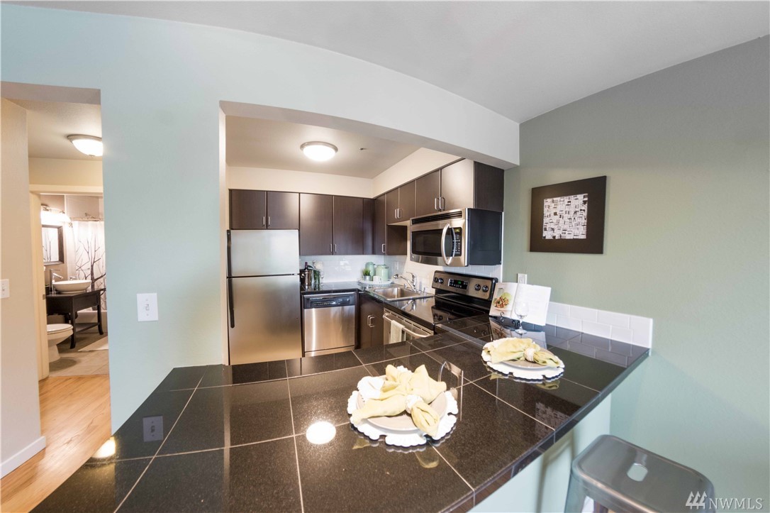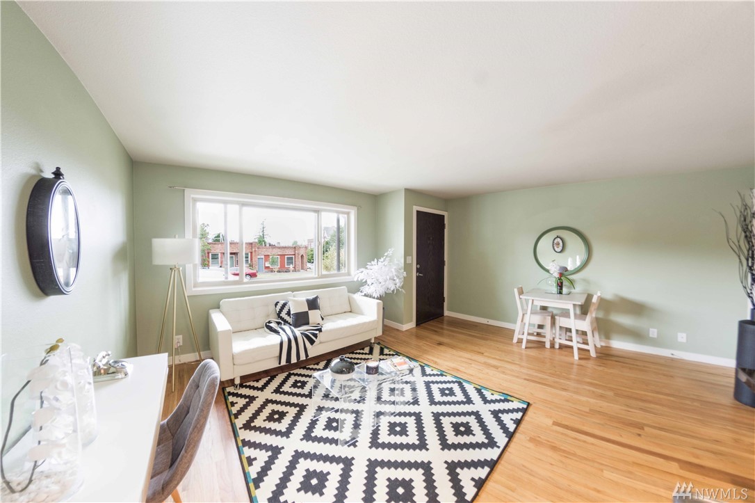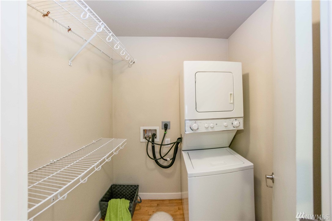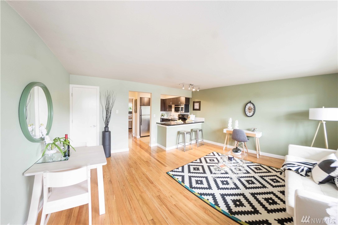 Mid-Century boutique building located next to grocery, restaurants, coffee, pubs, and an express bus to downtown. Updated unit w/ large bedroom, lots of storage (multiple closets), in-suite W/D and walk-in closet. Open living room & eating bar kitchen is perfect for entertaining. Completely renovated w/ new kitchen and bath, granite, SS appliances & real wood floors. Great natural light through oversized picture windows w/ western exposure. Large basement storage & parking space included. Hurry!