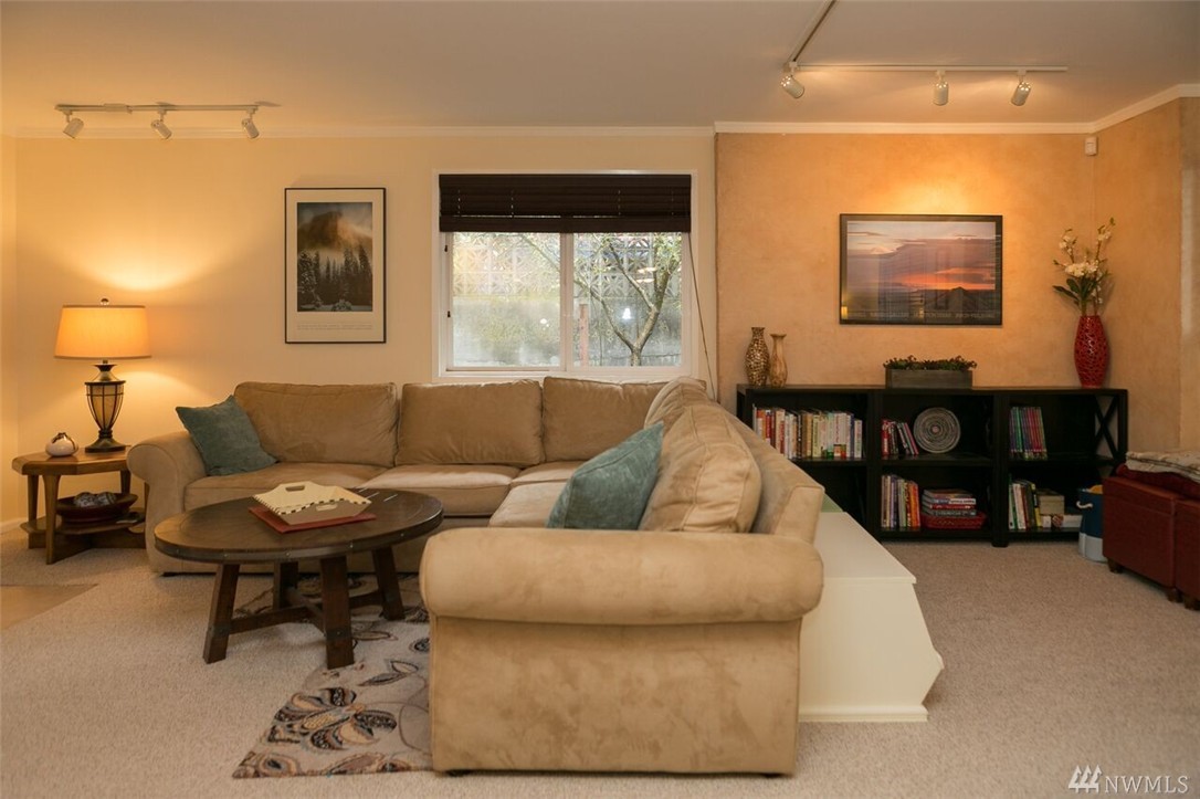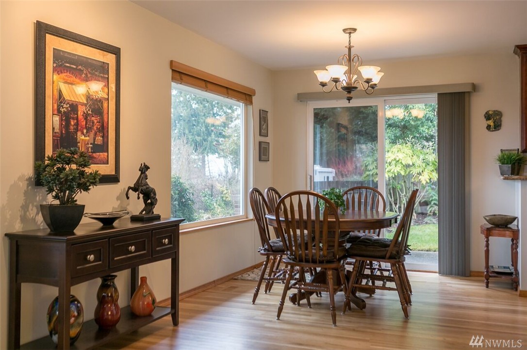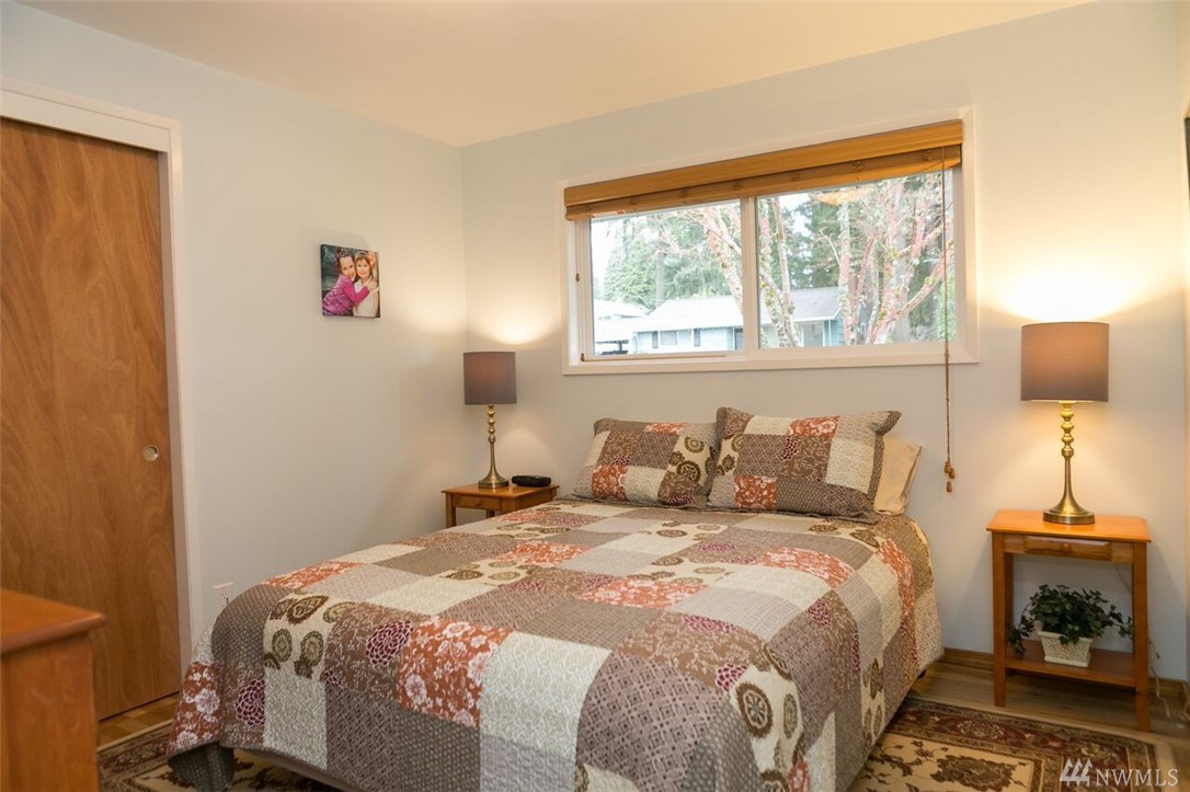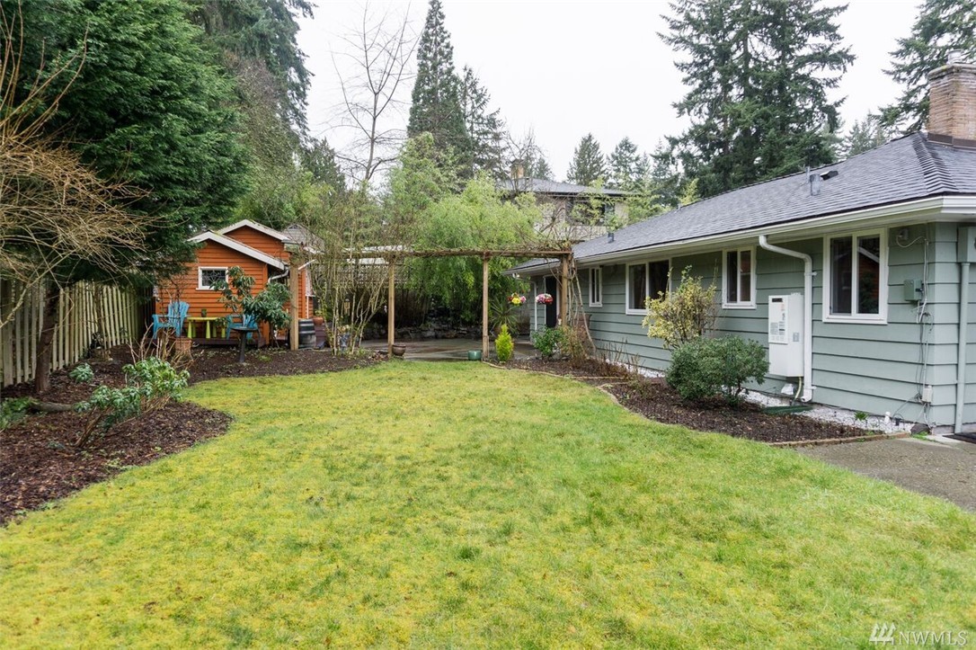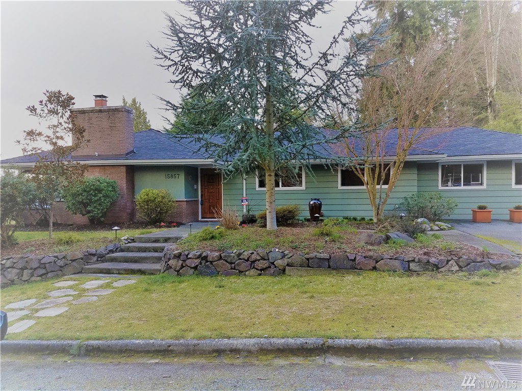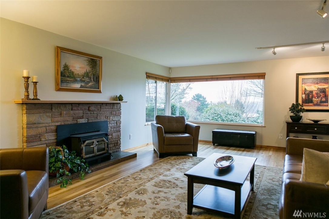 Beautifully remodeled rambler with views of the Lake and Mountains. The living/dining room area features hardwood floors and a wood burning fireplace. The kitchen has cherry cabinets, granite countertops and updated appliances. There's a master suite and 2 spacious bedrooms as well as a big family room with sliders to the nicely landscaped/level yard that includes a playhouse/garden shed and 2 off street parking spots. The home is within the Sheridan neighborhood and popular Shoreline Schools.